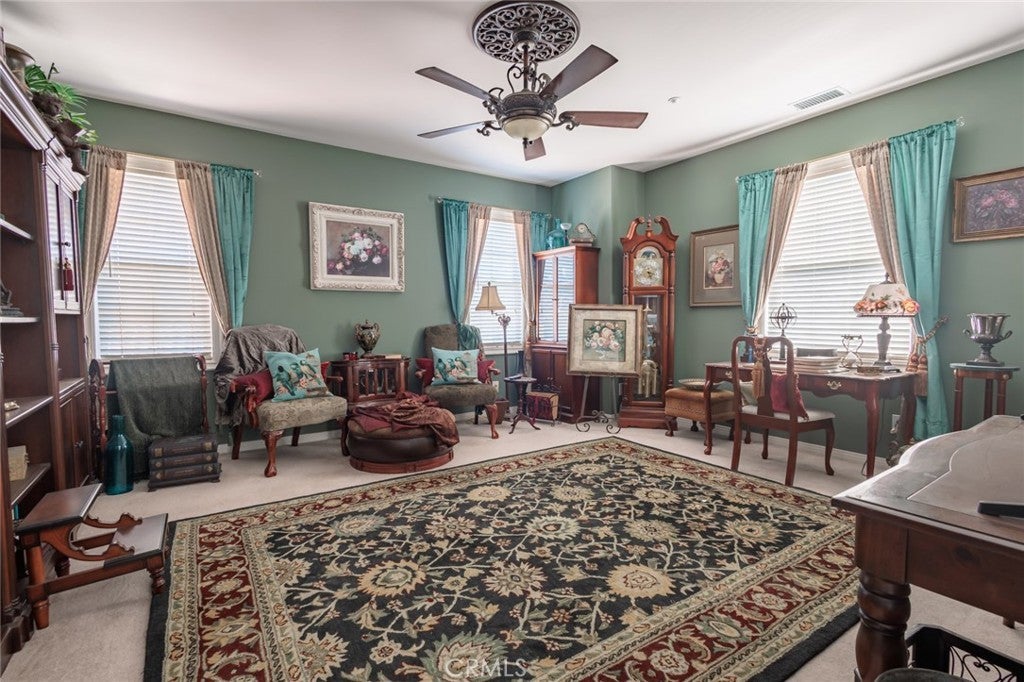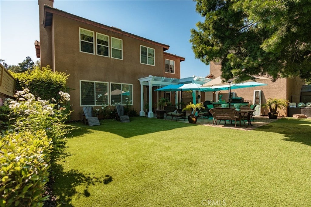 Beautiful 5 Bedroom, 4 Bath 2 level home in this enchanting Gated Community! This home sits on a spacious large lot offering plenty of privacy. The lot line extends behind the backyard fence offering maximum privacy. There is also a back house (ADU) above the garage with bathroom and shower perfect for guests or parents who want to enjoy their privacy. Enjoy walking to pepper tree park where you can enjoy playing bocce, walking trails and basketball courts. The bright, open floor plan features a large granite island kitchen that is adjacent to the family room complete with fireplace. There is also a formal living area and a spacious dining room. Notice the beautiful chandeliers as you tour the home. In the spacious backyard you will find low maintenance turf and lush green trees behind the home. There is also a nice patio area with BBQ island to enjoy relaxing evenings and family gatherings. Come see this beautiful property and enjoy country living in this exclusive gated community.