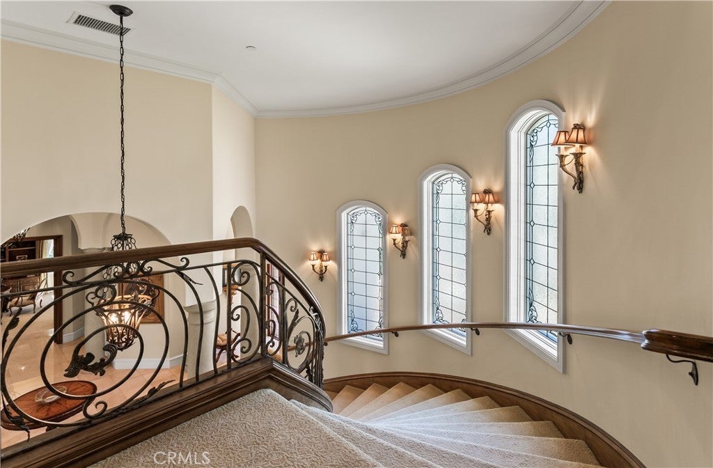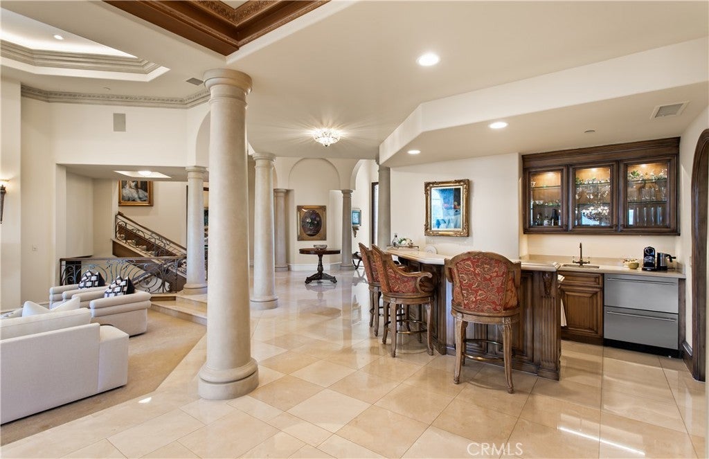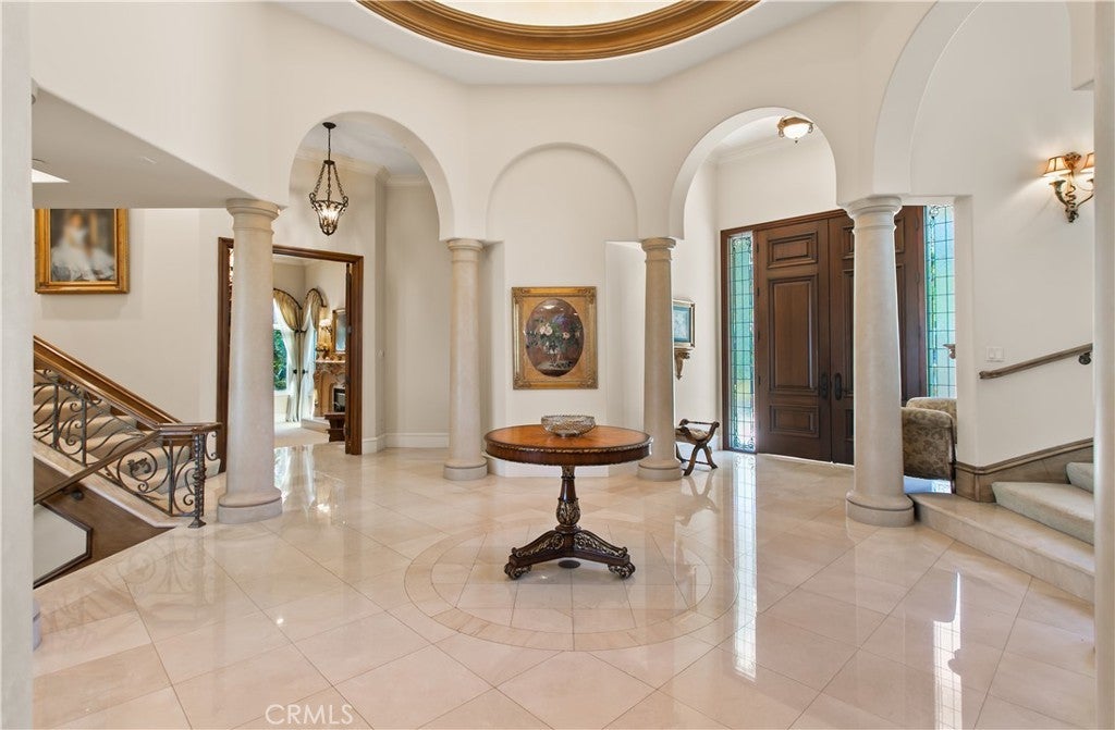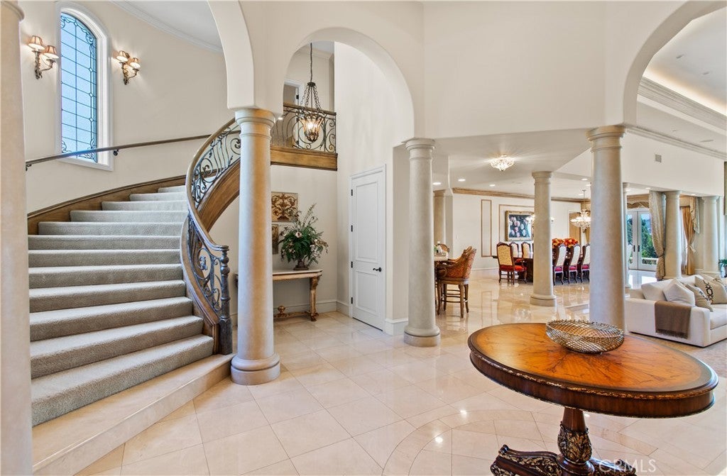 - Interior FeaturesBreakfast Bar, Balcony, Crown Molding, Eat-in Kitchen, Pantry, Quartz Counters, Stone Counters, Recessed Lighting, Bedroom on Main Level, Bar, Built-in Features, Dressing Area, Entrance Foyer, Granite Counters, High Ceilings, In-Law Floorplan, Multiple Staircases, Open Floorplan, Pull Down Attic Stairs, Smart Home, Sunken Living Room