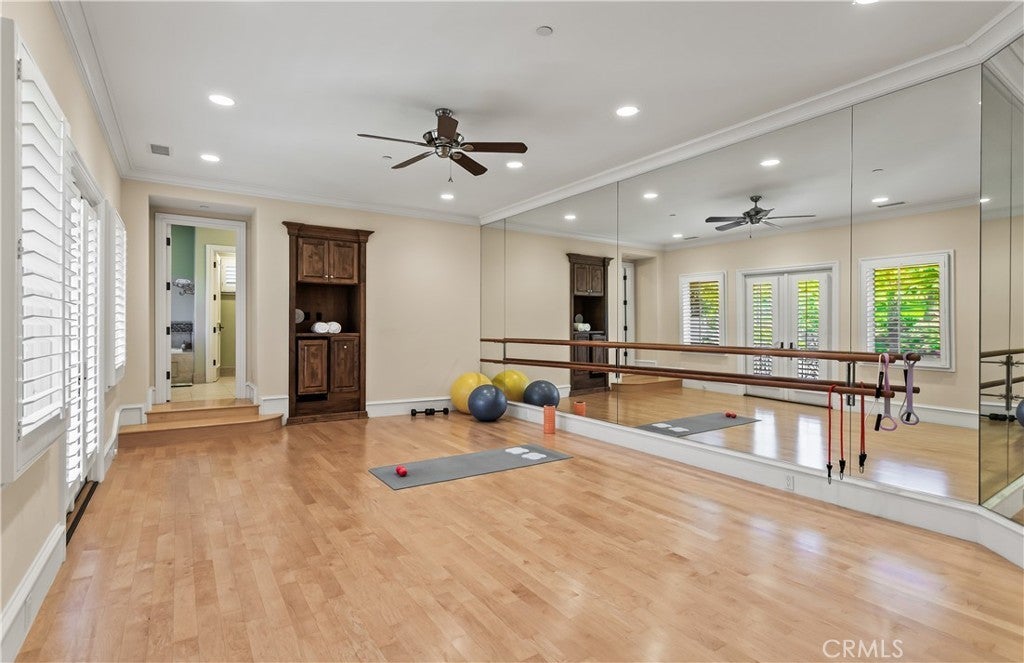 - Exterior FeaturesRain Gutters, Barbecue, Sport Court