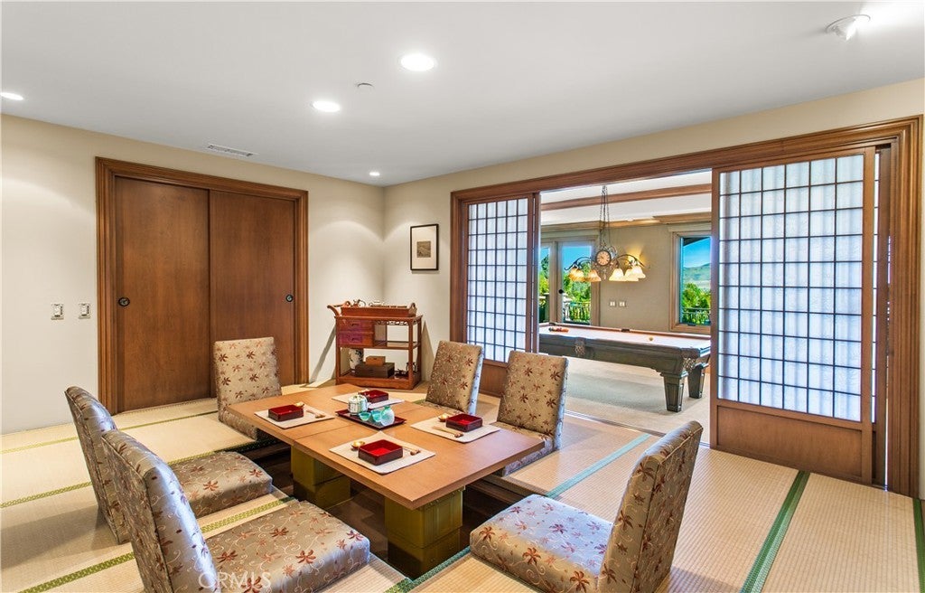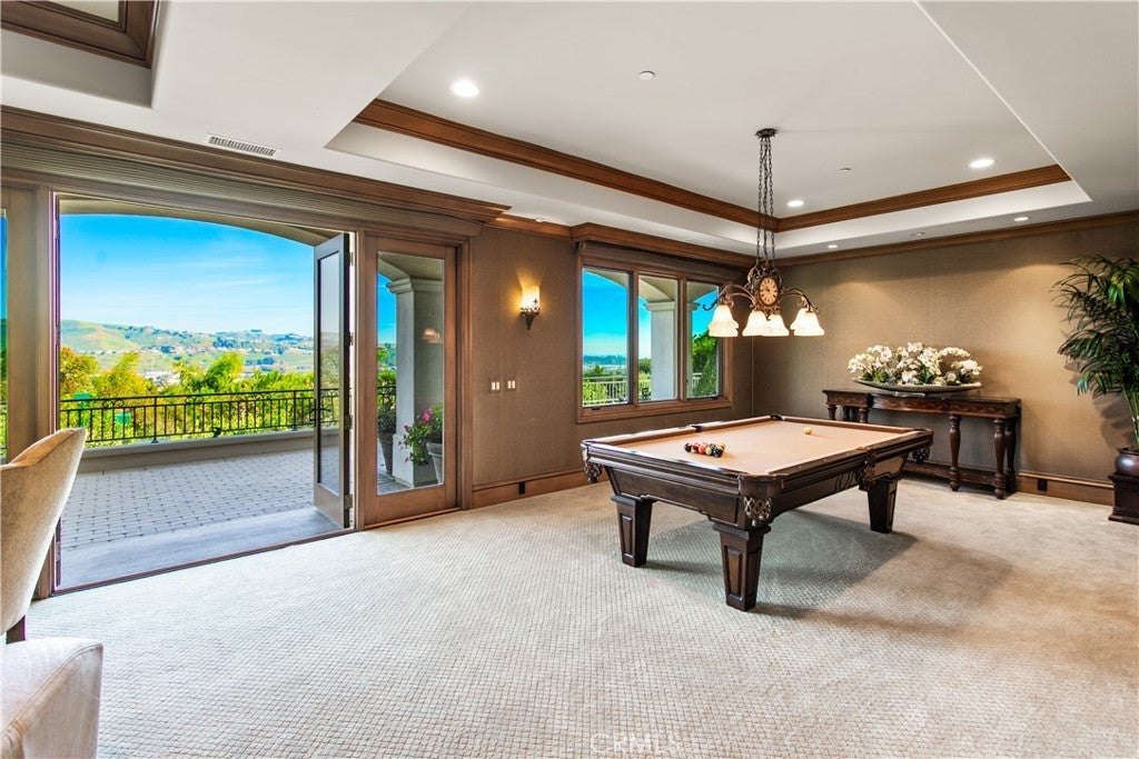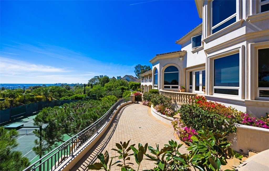 Located within the prestigious guard gated enclave of Bear Brand Ranch, 12 Morning Dove is a magnificent ocean view estate that epitomizes Southern California coastal, luxury living. Set on approximately 1.41 acres, this extraordinary custom residence offers over 13,500 square feet of refined living space with 10 bedrooms and 11.5 bathrooms, designed to provide both grand-scale entertaining and ultimate privacy. A dramatic entry welcomes guests into a soaring foyer highlighted by exquisite custom woodwork and architectural detailing throughout. Expansive living spaces are filled with natural light and flow effortlessly from formal living and dining areas to relaxed family gathering spaces anchored by elegant fireplaces. The newly remodeled chef’s kitchen is thoughtfully designed with premium appliances (Gaggenau range) and custom cabinetry, and an oversized island, creating a perfect setting for both intimate meals and large-scale entertaining. Nearby formal and informal dining spaces provide seamless functionality for hosting. A custom built formal dining table seats up to 20 for the ultimate family dinners. The primary suite serves as a large expansive private sanctuary, featuring a luxurious spa-inspired marble bathroom with large walk in closet, one of two in the suite. Also a second office and a private balcony overlooking the estate’s beautifully landscaped grounds and ocean view. Many unique features within this elegant home include 2 large ensuite bedrooms that sit off a large study area complete with three built in desks and a large custom square conference table. Downstairs is the grand game room complete with a 9 seat movie theater and an authentic Japanese Tea room with custom tatami floors and Shoji sliding doors. Designed for resort-style living, the grounds feature: A private regulation tennis court/Pickle ball court, lit for evening play and newly resurfaced. Resort-style pool and spa. Multiple outdoor entertaining areas. One bedroom/One bath casita ideal for guests. Additional amenities include 2 garages including a 4 car garage for the car enthusiast, 290 bottle wine cellar, home gym/mirrored dance studio with full bath & ladies nail bar. Extensive patios overlooking the tennis court/grounds include a large outdoor barbecue area with outdoor fireplace. Located just minutes from famous resorts and beaches, as well as premier dining and shopping, elevate the estate to a truly "world class" residence.