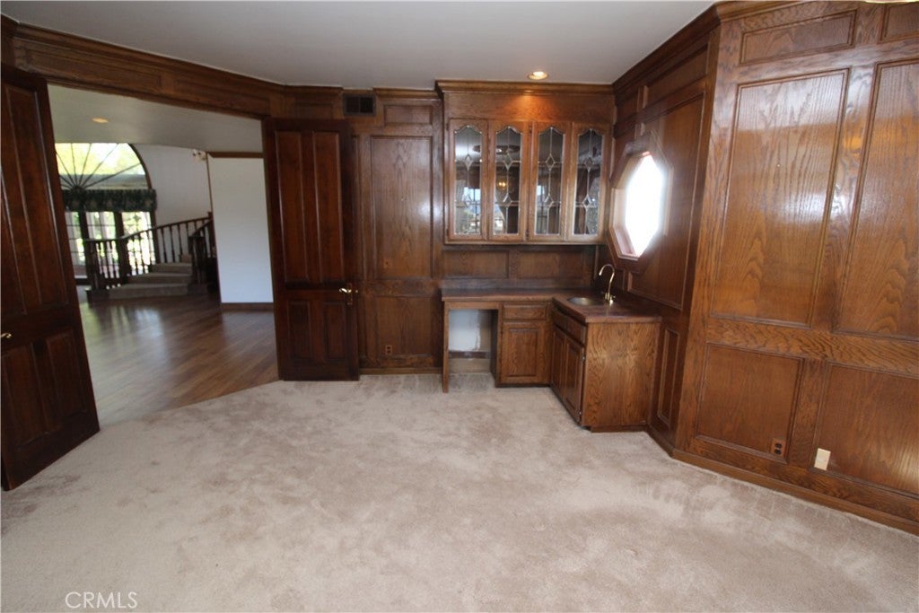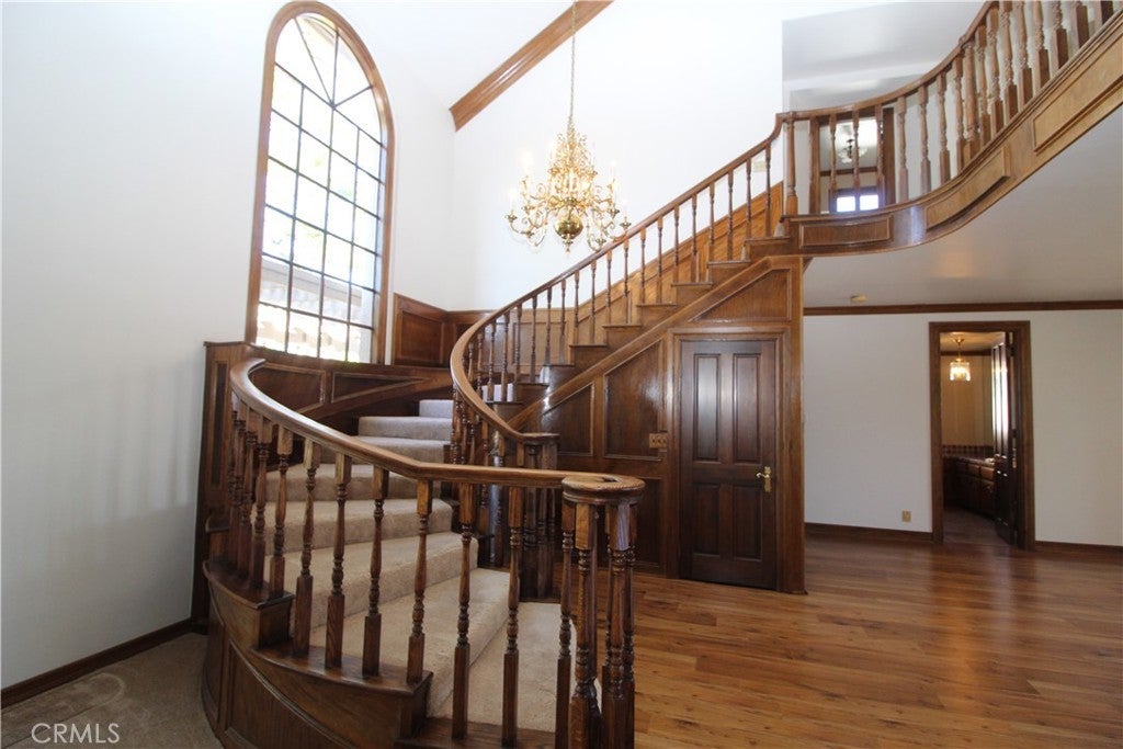 Welcome to one of the elite equestrian communities in South Orange County, Nellie Gail Ranch! This 6,211 SF Tudor-inspired home features 5 bedrooms all with a view, 5 bathrooms, 3-car garage, office, game room, breakfast nook, formal dining room, resort-style grounds with private pool, view and more! Sunrises, and sunsets can be your guide throughout the miles of riding trails. This home has a striking and grand appearance as you approach this castle-like estate with stately leaded-glass double door entry, dramatic sweeping stairway, and crown moulding throughout, plus an executive office. Every detail in this home is finished in high quality golden oak! Come tour this one-of-a-kind English Tudor, designed with family in mind!