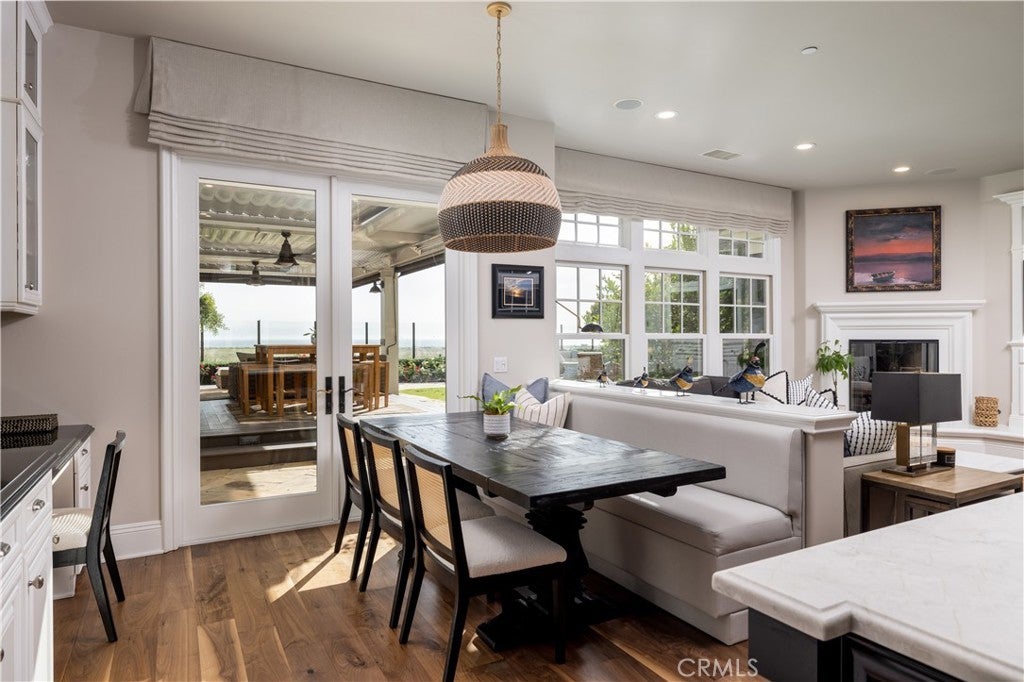 Wake up to expansive coastal views and ocean breezes in a rare architectural gem, an original Hearthside Home Breakers Plan 2, uniquely positioned at the north end on the coveted view side of Brightwater Drive, the “Gold Coast” of the beautiful Brightwater neighborhood. This stunning home features a timeless East Coast design evoking Nantucket and Martha’s Vineyard. Designed for indoor-outdoor living, the home’s gathering spaces are seamlessly connected for a natural flow. Arrive at the welcoming covered front porch - complete with swing and come through the “Dutch” front door and office French doors into the main living spaces. Adjoining living room and dining roomwith a cozy fireplace provide flexible entertaining space, while more French doors from the kitchen and family rooms lead you to wander: settle into the cozy, private courtyard, or venture beyond to the backyard where you will be entranced by sit-down ocean views and a rare orientation that offers a sunset scene 365 days per year! On one of the larger lots in the area, it features 5 bedrooms and 4.5 baths, plus a dedicated office, a large upstairs bonus room, casita with separate entry, and 3 upstairs balconies including two larger decks with ocean views. This former model features too many enhancements to name: extensive built-ins, wainscoting throughout, striking beamed ceilings, luxury appliances - TWO full-size Sub-Zero refrigerators, wine storage, Sonos audio and more. The crisp palette of black & white with warm neutrals, is as fresh as the ocean air, and showcases the recent extensive renovation of bathrooms and interior spaces including refinished natural walnut flooring, designer paint, refreshed kitchen island and lighting, smart motorized shades, window coverings and carpet. The spacious backyard is anchored by a covered BBQ area on a raised deck featuring motorized louver systems, fans, and heaters, to optimize outdoor enjoyment in any weather. The premium BBQ, kegerator, ice maker, fridge, warming & storage drawers,sink with prep space & trash pullout, and expansive counter space create a true outdoor kitchen. Make memories around the inviting fire pit. Water features, grass lawn & mature fruit trees complete the private, resort-style setting. An (ocean view!) garage and a porte-cochère with an oversized driveway provide ample parking.This is a rare opportunity to own a premier view property in one of Huntington Beach most sought-after coastal communities.