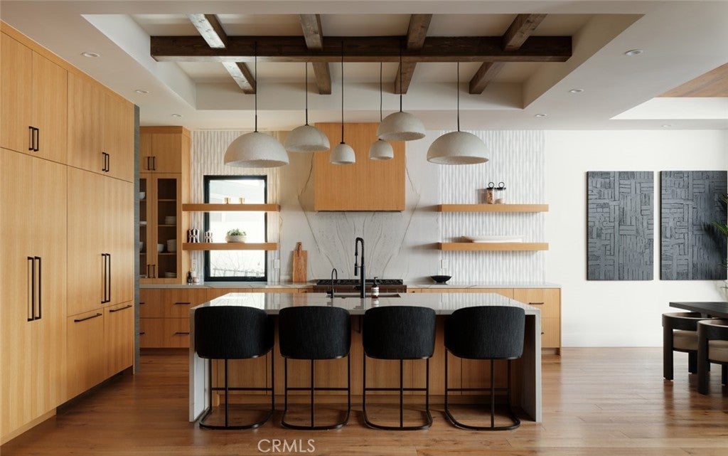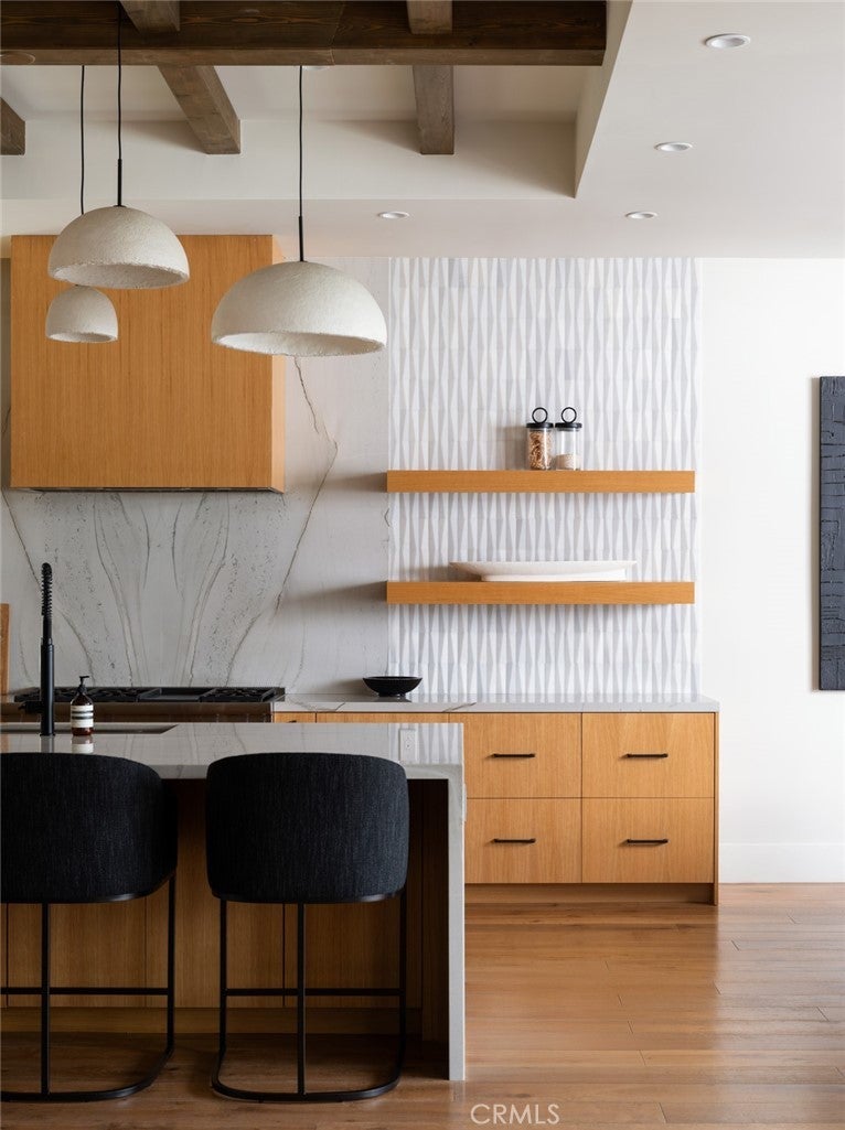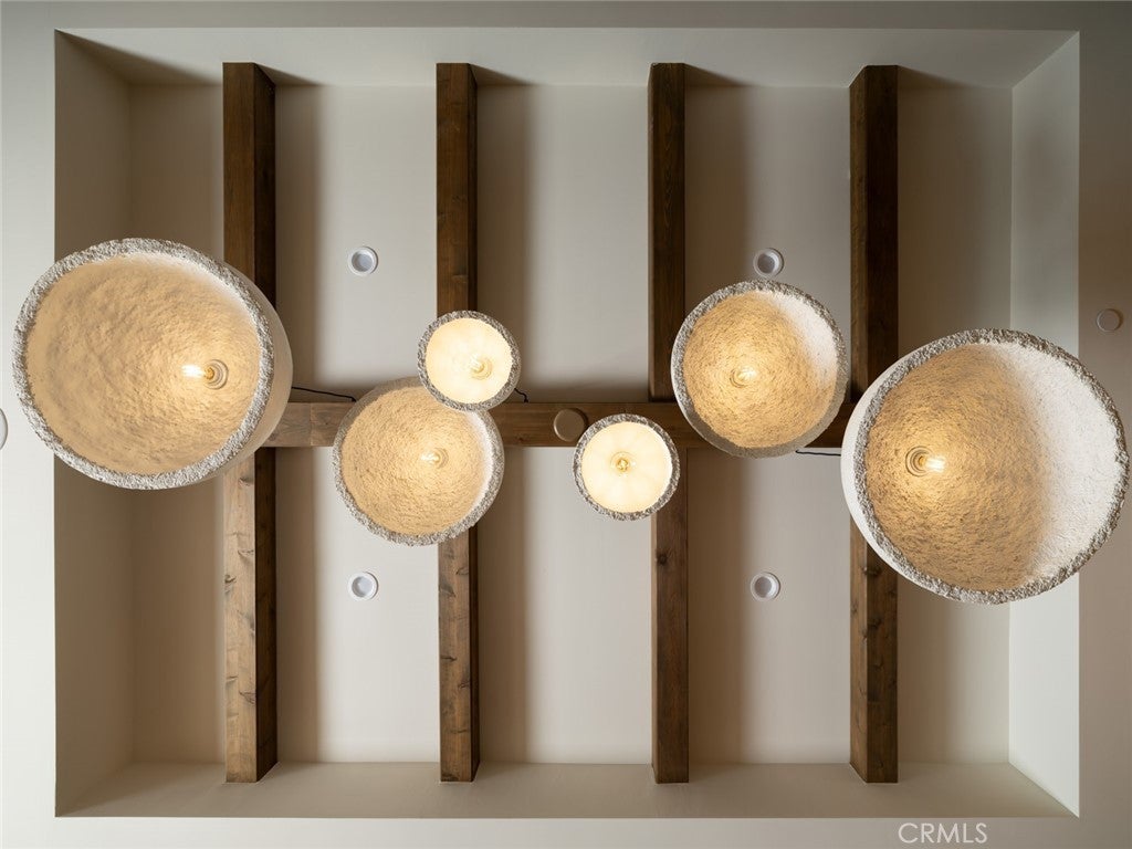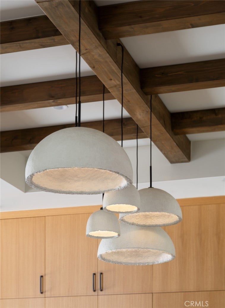 • Interior FeaturesBeamed Ceilings, Breakfast Bar, Built-in Features, Block Walls, Ceiling Fan(s), Separate/Formal Dining Room, Eat-in Kitchen, High Ceilings, Living Room Deck Attached, Open Floorplan, Pantry, Stone Counters, Recessed Lighting, Storage, Smart Home, All Bedrooms Down, Entrance Foyer, Primary Suite, Bar, Instant Hot Water, Wood Product Walls