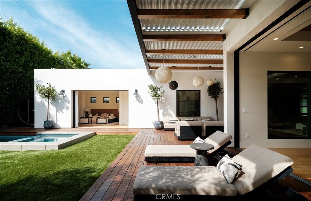 A disciplined expression of modern California architecture, this single-level residence—built in 2021 by Casa Arte Group—blends scale, materiality, and fully integrated technology into a turnkey living experience. Offered fully furnished, the home presents as a complete composition where design, function, and performance align. A quiet yet commanding entry opens into a voluminous great room defined by 11-foot ceilings and Warren Christopher wood flooring. Natural light moves intentionally through the space, reinforcing clean lines and an open layout that connects living, dining, and kitchen seamlessly. The kitchen is both sculptural and functional, anchored by Thermador smart appliances and designed as a central gathering point. It flows effortlessly into the surrounding living spaces, supporting both daily living and elevated entertaining. A fully owned 10.8kW SunPower solar system paired with four Tesla Powerwalls delivers energy independence, efficiency, and long-term value.The rear yard extends the architecture outdoors with a custom pool and spa, covered dining area, built-in barbecue, Restoration Hardware fire table, and StruXure motorized pergola with rain-sensing automation—creating a private, resort-caliber setting.The primary suite overlooks the yard and pool, offering a quiet retreat with a spa-inspired bath designed for comfort and simplicity. Three additional en-suite bedrooms provide privacy and flexibility for family or guests.Technology is seamlessly integrated, including a Unifi Enterprise network, Lutron RadioRA 3 lighting, whole-home Sonos audio, Ecobee climate control, Pentair smart pool system, and in-wall iPad control. Security features include 4K HDR cameras, smart doorbell, and Apple HomeKey entry. Additional features include Toto Neorest fixtures, dual Tesla chargers, 5.1 surround sound, whole-home water filtration, reverse osmosis system, infrared sauna, and organized garage. A rare, fully realized offering in Newport Beach.
