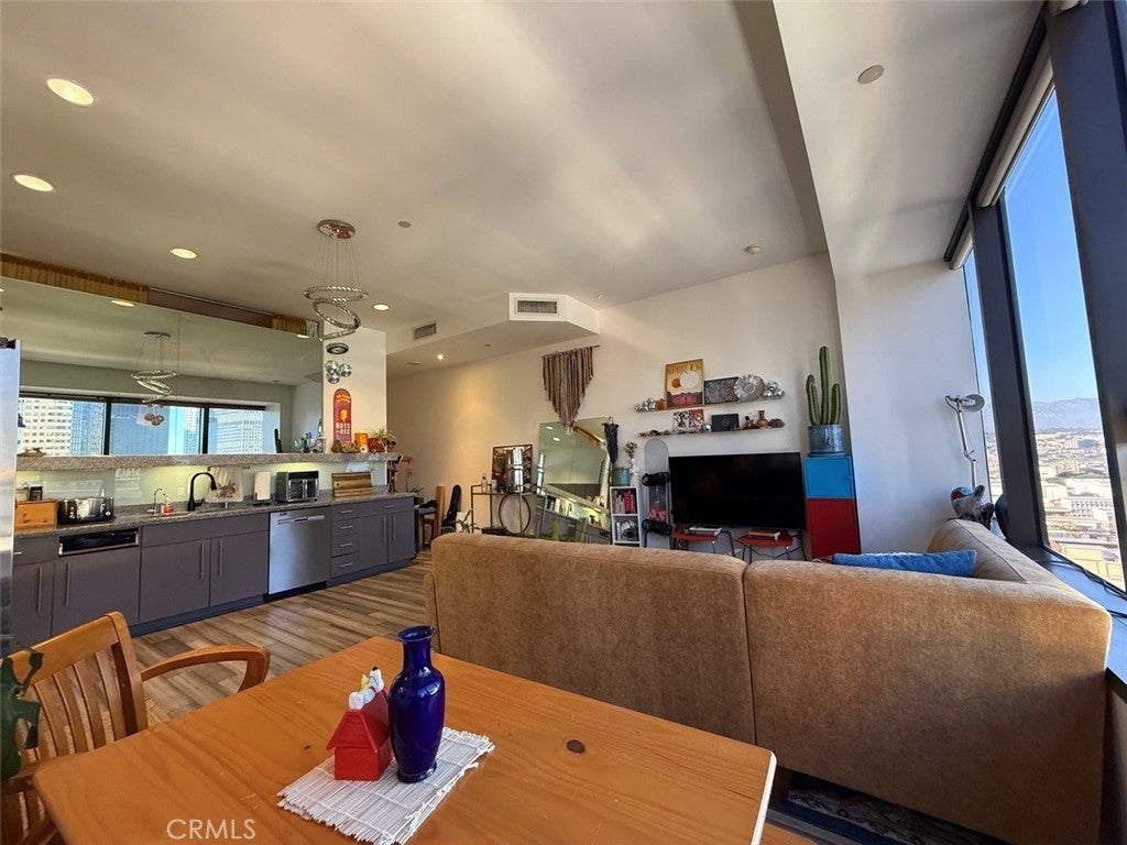 This apartment offers some of the most stunning views in Downtown Los Angeles. Tucked away on a quieter street, yet steps from top restaurants, shopping, and cafés, it perfectly balances tranquility with city living. Enjoy uninterrupted views from the city scapes to Hollywood, Echo Park Lake and across the skyline and beyond. Wake up feeling inspired every day an ideal space for first time buyers or those working from home. Short term rentals so sublets also allowed. This specific unit has nest controlled HVAC, privacy glass in the loft, extra plugs around the home, stackable, washer, dryer included, appliances included, and turnkey ready. Seller is also open to discussing the furniture and decor. The HOA includes premium amenities such as a gym, pool, recreation room, business center, media room, utilities, trash service, two parking spaces, and 24 hour security with a staffed front desk. This building is also pet friendly. Rooftop provides sweeping views of Los Angeles, including the Hollywood sign, and on a clear day you can see the coastline. Play a round of pool or use the bbq, sit by the fire. You can entertain your friends and family, or even hit the gym. Don't hesitate to reach out to the agent today, this is an amazing value and opportunity. Bring your first time home buyers or reach out if you are one as we are happy to help. This property also might be great for investors interested in having a rental just in time for the arrival of the olympics. Might not last long, ready to sell :)