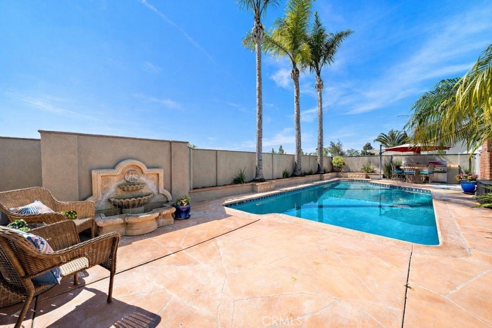 Absolutely stunning, exquisitely remodeled, and beautifully upgraded with luxury modern finishes, this Parkside Estates pool home is truly better than new and showcases the largest and most versatile floorplan in this highly sought-after neighborhood just minutes from Mile Square Park & award-winning schools; offering 5 bedrooms, 3 bathrooms, & 2,752 sqft, including 3 bedrooms downstairs—one being a luxurious primary suite w/mirrored closets & a spa-inspired ensuite featuring dual sinks, jetted soaking tub, designer tiled shower, & built-in shelving, plus 2 massive upstairs bedrooms and a door that opens to an expansive walk-in attic with incredible potential to convert into a 6th bedroom or bonus room, adding even more livable space. This spectacular home has been extensively upgraded throughout with Low-E dual pane windows & sliders, custom blinds, Bamboo hardwood flooring, wood-grain porcelain tile, solid wood raised panel doors, and recessed lighting, all centered around a brand new, show-stopping gourmet kitchen boasting quartz countertops, coved ceiling w/recessed lighting, custom solid wood white shaker soft-closing cabinetry w/pull-outs, deep drawers, & under-cabinet lighting, stainless farmhouse sink, quiet Bosch dishwasher, full pantry, new stainless electric range w/double ovens & built-in air fryer & a high-capacity motion-sensor Vikio vent-hood. An expansive quartz peninsula w/wrap-around seating seamlessly connects to the enormous family room with vaulted ceiling, wood accent wall, wainscoting, 2nd fireplace, custom built-in entertainment center, and sliding glass doors that open to a true entertainer’s paradise backyard with sparkling pool, built-in BBQ center w/wrap-around bar seating, fridge, Lynx BBQ, raised planters, tropical landscaping, fountain, stained & scored decking, and high stucco walls for exceptional privacy. The home also features an elegant oversized formal living room with soaring ceiling & stone fireplace, a formal dining room with designer chandelier, and beautifully remodeled bathrooms with new vanities, quartz countertops, LED touch-light mirrors, designer tile surrounds with glass mosaic tile inlay, and clear glass barndoor-style enclosures. Additional amenities including newer central A/C, an inside laundry room, French doors to the 3rd downstairs bedroom ideal for a private office, beveled glass entry door, solar, and outstanding curb appeal with pristine, manicured landscaping.