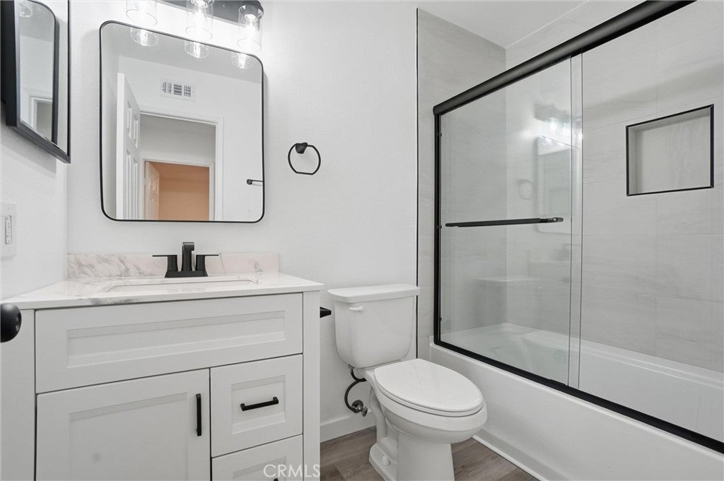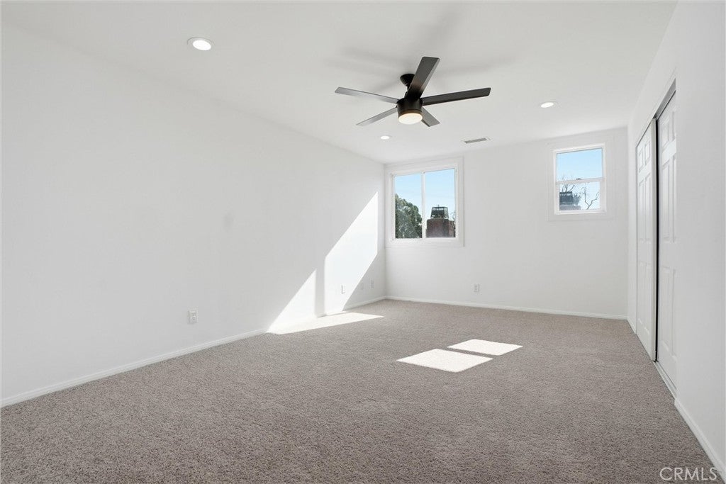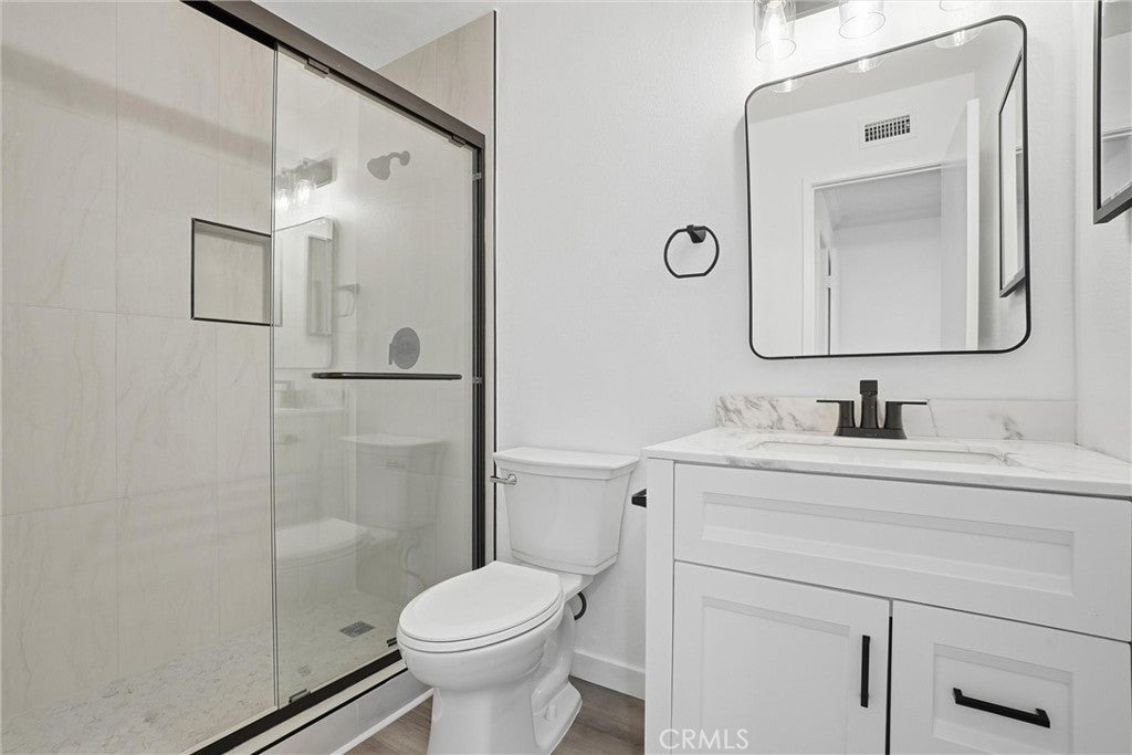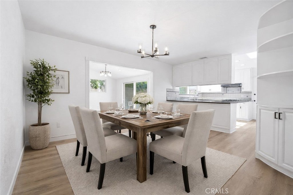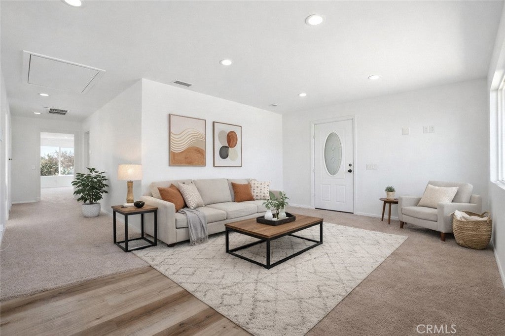 A rare opportunity in Cerritos, this expansive and recently renovated home is designed for multigenerational living or rental potential, offering 7 bedrooms, 4 full bathrooms, and approximately 3,556 square feet of living space on a private 8,139 sq ft lot. Thoughtfully designed with two distinct living wings and ADU potential, the layout offers flexibility for extended family, guests, or future income. The main level offers a spacious layout with soaring beamed ceilings, a gourmet kitchen with newly painted cabinetry, and both formal living and family rooms, each with its own fireplace. This wing includes four generously sized bedrooms, highlighted by a luxurious primary suite with vaulted ceilings, crown molding, an arched sitting area, walk-in closet, private fireplace, and a remodeled bathroom featuring a walk-in shower and new shaker-style vanity. An additional remodeled hall bathroom serves the remaining bedrooms. The upper-level living wing functions like a private apartment, featuring an open-concept kitchen that opens to a living room, three bedrooms including a primary suite with a resort-style bathroom complete with a soaking tub, dual sinks, and walk-in closet, a full hall bathroom, and a stackable washer and dryer. With both interior and exterior access, this space offers privacy and flexibility while remaining part of the main residence. Recent upgrades throughout both levels include new luxury vinyl plank flooring, new carpet, fresh interior paint and baseboards, updated panel doors and hardware, new closet doors, light fixtures, and ceiling fans. Additional improvements include newer windows, dual HVAC systems with newer thermostats, solar panels, a water softener, a new water pressure valve, upgraded copper supply lines, and built-in garage cabinetry. The backyard is designed for entertaining, featuring a covered outdoor pavilion with wood construction, brick columns, a shingle roof, and electrical, ideal for gatherings and outdoor dining. The property also offers block walls, brick and block planters, mature trees and shrubs, and a combination of brick and concrete hardscaping. The front yard features landscaped planters, brick and concrete walkways, an extra-wide driveway, wrought iron double-gate fencing, and RV parking. Ideally located within the highly regarded ABC Unified School District, the home is just minutes from parks, the Cerritos Millennium Library, Los Cerritos Center, shopping, dining, and convenient freeway access.