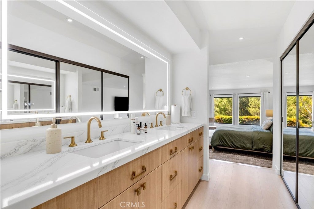 Welcome to Cypress Point, a gated community in the heart of Mission Viejo where privacy, greenery, and everyday comfort come together. This end-unit condominium offers a rare sense of quiet and openness, with natural light pouring through expansive windows and views of surrounding greenery that create a calm, retreat-like atmosphere. The spacious living area, anchored by a fireplace, flows effortlessly into the dining space and out to a large private patio, perfect for slow mornings, evening sunsets, or relaxed entertaining. The kitchen has been fully updated with new cabinetry, quartz countertops, and newer appliances, designed to feel both clean and functional for daily living. Every detail throughout the home has been carefully improved, making this a truly move-in ready space.The layout includes two generously sized bedrooms and two full bathrooms, including a private primary suite with dual vanities and a walk-in shower, a comfortable and peaceful retreat at the end of the day. Beyond aesthetics, the home offers real long-term value with upgrades such as PEX repiping, newer HVAC, new water heater, updated flooring, recessed lighting, and smart home features. Located directly across from Lake Mission Viejo, residents enjoy exclusive access to beaches, boating, and year-round events, adding a lifestyle element that extends well beyond the home itself. With its quiet setting, natural surroundings, and thoughtful upgrades, this home offers a rare combination of comfort, privacy, and location in one of Mission Viejo’s most desirable communities.