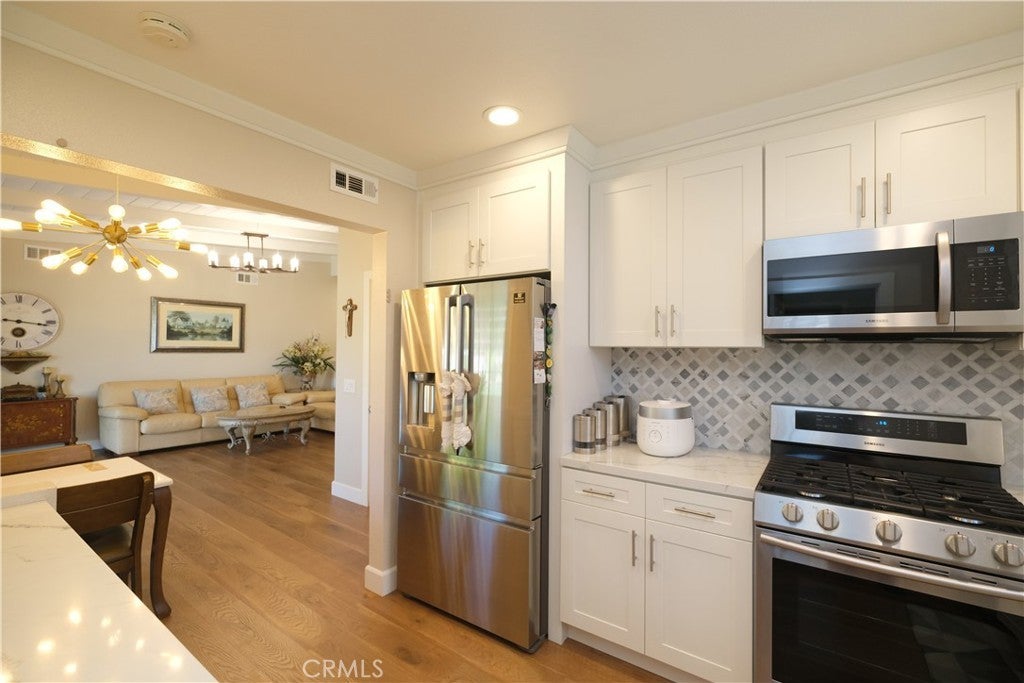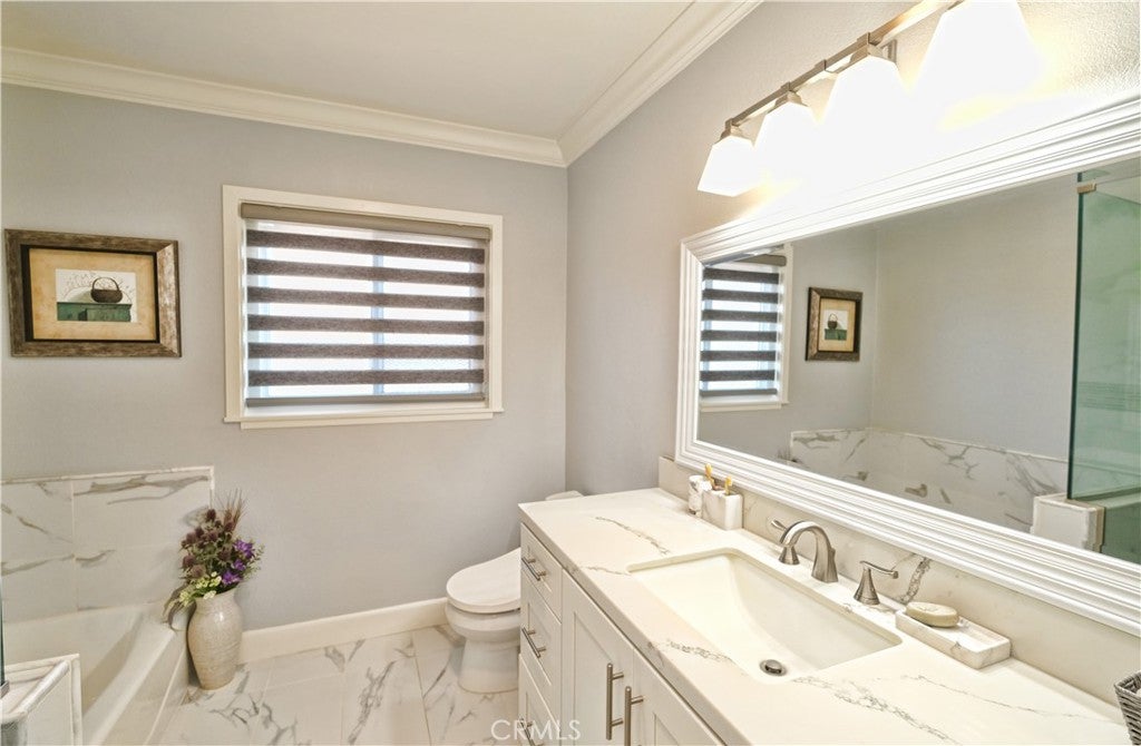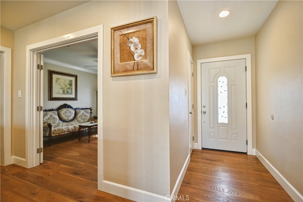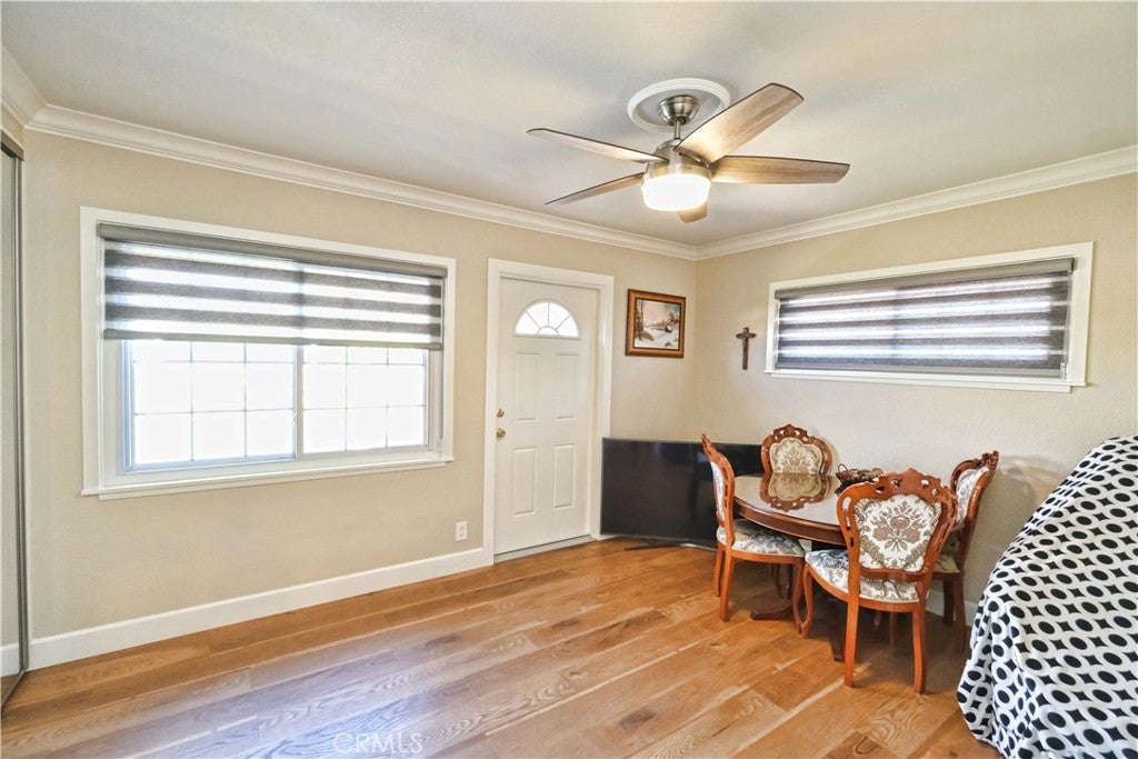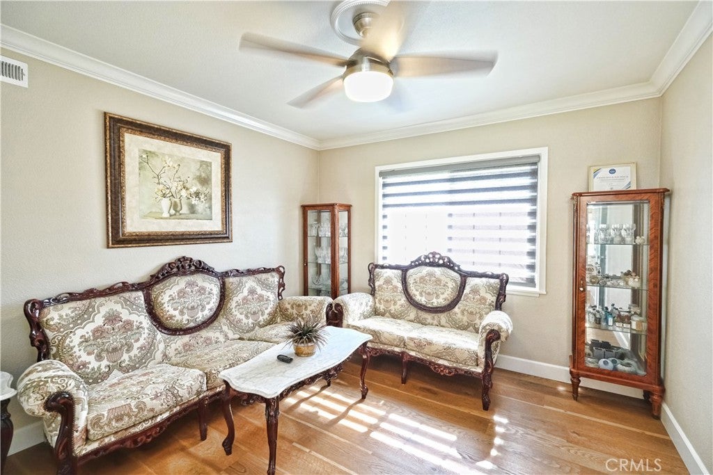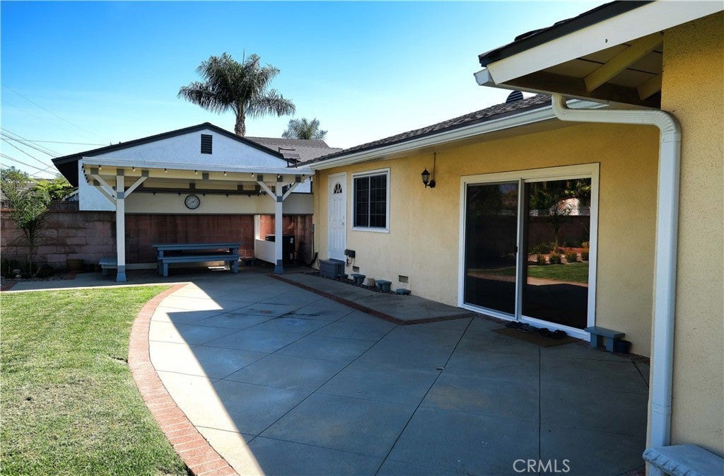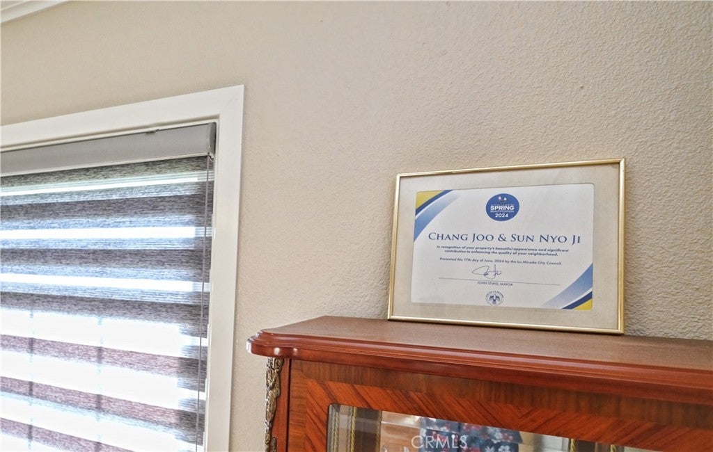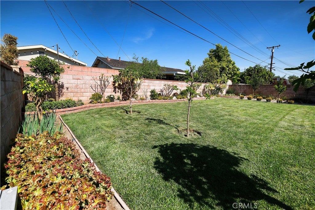 Welcome to the award-winning “Beautification Award” home—fully remodeled and move-in ready! This stunning property features 3 spacious bedrooms and 2 beautifully upgraded bathrooms, along with a separate laundry room conveniently located off the kitchen. The modern kitchen is equipped with stainless steel appliances, upgraded countertops, and stylish cabinetry that continues into the bathrooms. Additional upgrades include a newer roof, double-pane windows throughout, fabric window blind throughout and a newer central air conditioning system with updated ductwork for year-round comfort. Third bedroom, making it perfect as a den or office. All bedrooms include ceiling fans, crown molding, and custom mirrored closet doors with built-in organizers. The large bathroom featuring a bathtub and a custom glass-enclosed shower. Durable SPC waterproof flooring runs throughout the home, a newer water heater. The inviting living room showcases a unique wood-paneled ceiling with a clean white finish. It opens through sliding glass doors to a beautifully landscaped backyard—perfect for entertaining—with a custom patio ideal for BBQs and relaxation. Front and backyard feature attractive brickwork, automatic sprinklers, and fruit trees. The extra-wide driveway accommodates up to 4 cars or an RV with ease. Ideally located near markets, shopping centers, parks, restaurants, and a golf course, this home also offers convenient access to the 91 and 5 freeways.