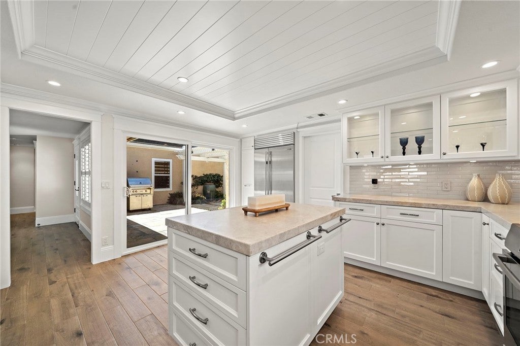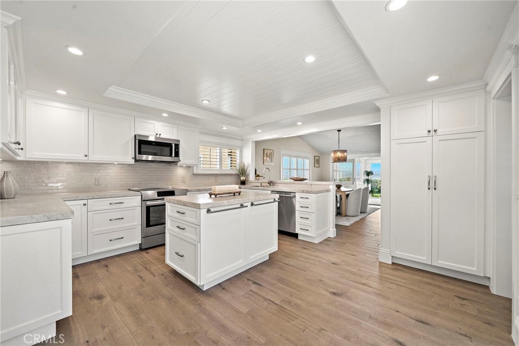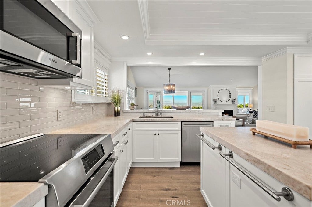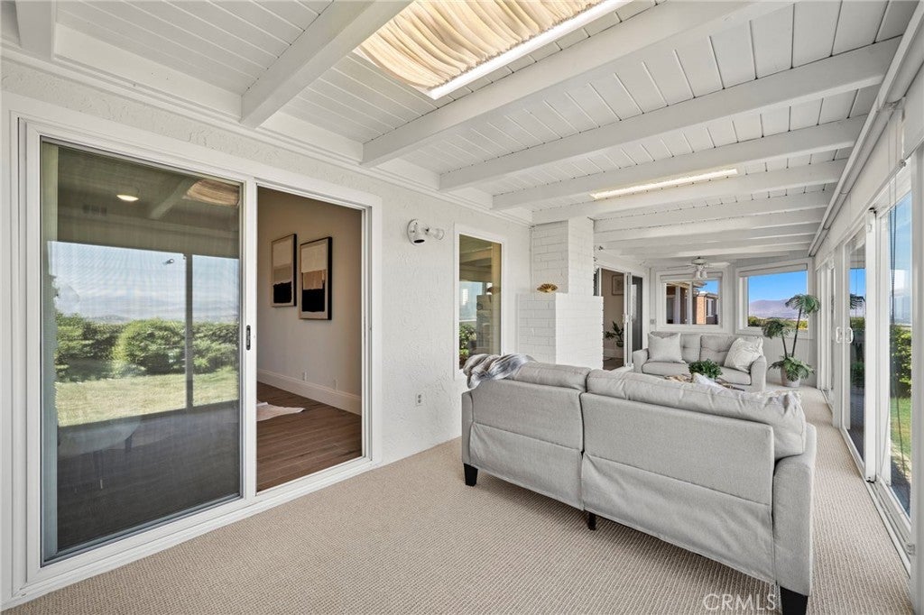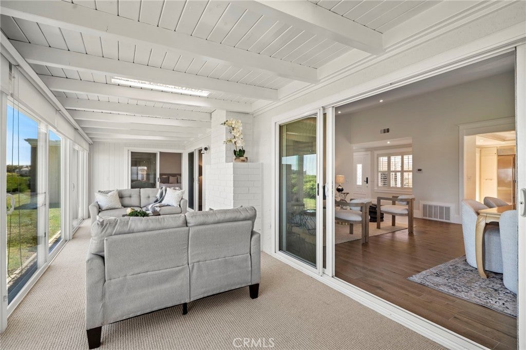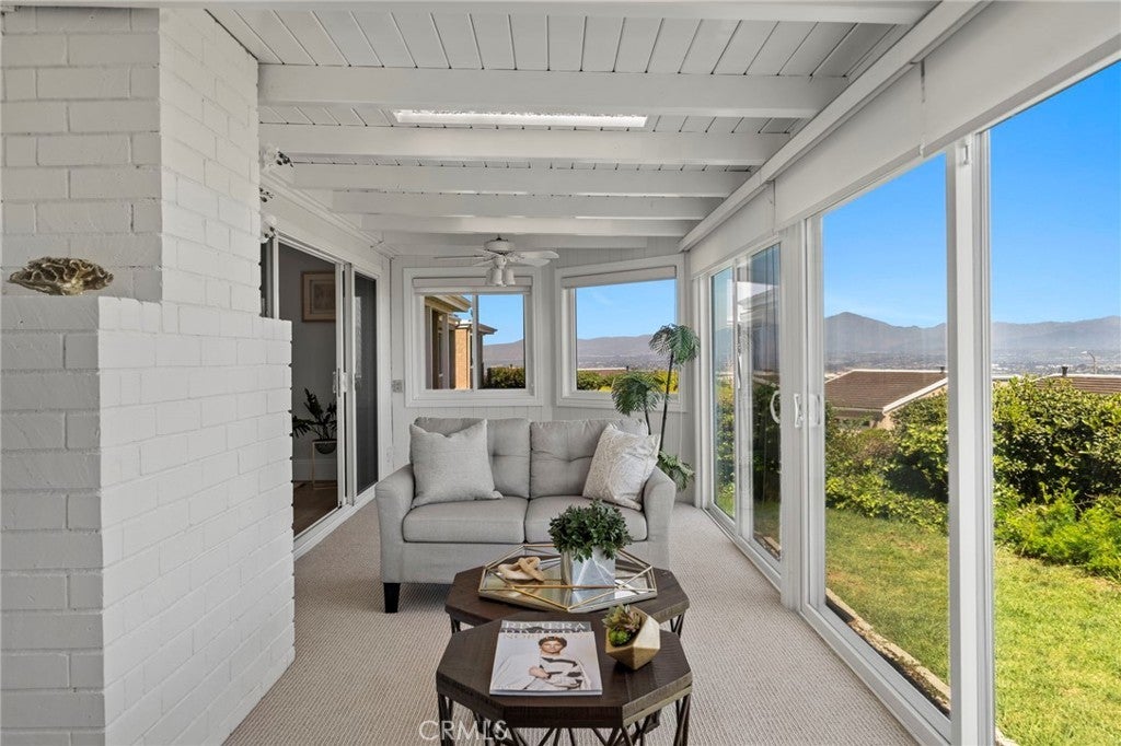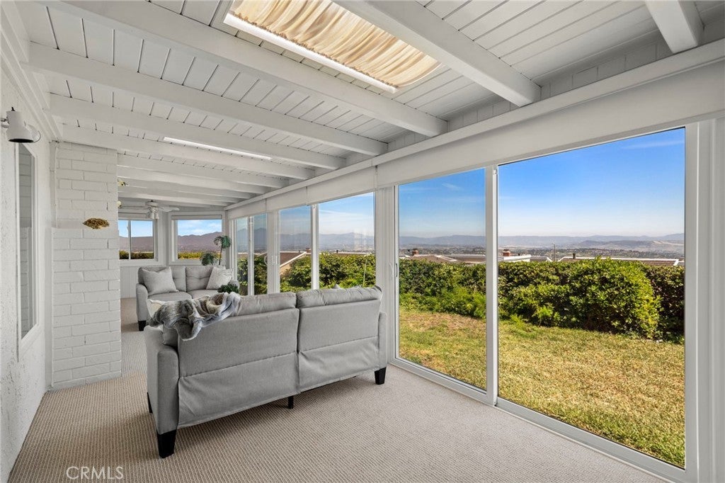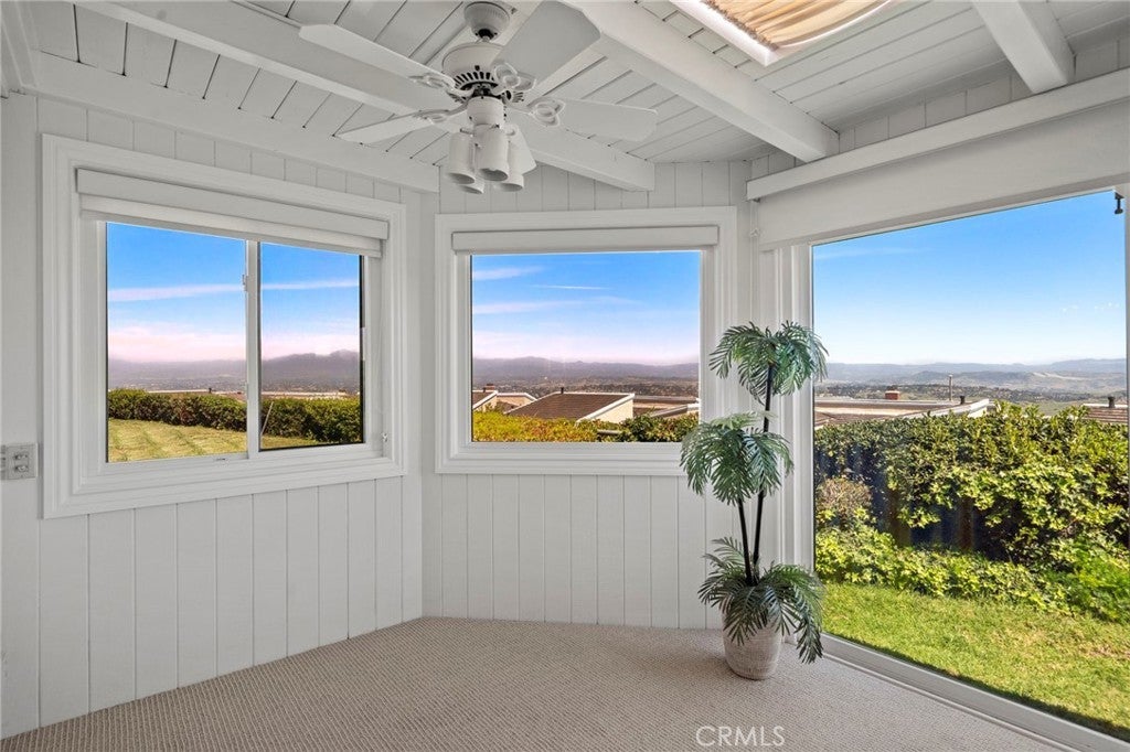 Welcome to 30972 Lucia Lane, Laguna Niguel, a rare opportunity to own a beautifully upgraded single-level home with breathtaking ocean, city lights, and mountain views in the highly desirable Monarch Summit I community. Perched to capture an unforgettable panorama, this 3 bedroom, 2 bath residence offers approximately 1,875 square feet of living space, along with the kind of setting,views, privacy, exclusivity, and lifestyle only few buyers can have. With a desirable floor plan and a valuable sunroom addition that adds extra living space beyond nearby comparable homes, this property blends comfort, natural light and everyday functionality with spectacular views. One of the bedrooms is currently being used as an office, offering flexibility for remote work, or hobbies. A standout feature of the home is the sunroom addition — an inviting retreat ideal for afternoon Mahjong, card games with friends, morning coffee, or quiet reading while enjoying the natural light and surrounding views. At the heart of the home is the remodeled chef’s kitchen, anchored by a large center island and exquisite Weathered Taj Mahal quartzite countertops, a premium natural stone, sub zero fridge and Bosch appliances. Thoughtfully designed for both everyday living and entertaining, the kitchen opens to the dining area through an elevated breakfast bar and flows seamlessly into the living room, where a beautiful fireplace and soaring cathedral ceilings create a warm, inviting sense of space and elegance. Both bathrooms have been upgraded, wood like porcelain stone flooring adds style and long-lasting performance, and new interior designer paint gives the home a fresh and luxurious feel. Recessed lighting and plantation shutters further enhance the home’s refined yet comfortable character. Ideally situated at the end of a quiet cul-de-sac and just steps from the clubhouse and pool, the home offers a rare combination of privacy, convenience, and community living. Adding to its charm is a beautiful gated front porch framed by soft landscaping, lush plantings, and a tranquil water fountain that creates a welcoming entrance. The location also offers close proximity to shopping, restaurants, coffee shops, scenic walking trails and nearby freeway access. Whether you are entertaining guests, enjoying a peaceful morning, or taking in the sunset, this home was designed to make the most of its incredible setting. Homes with this view, this layout and this opportunity do not last.