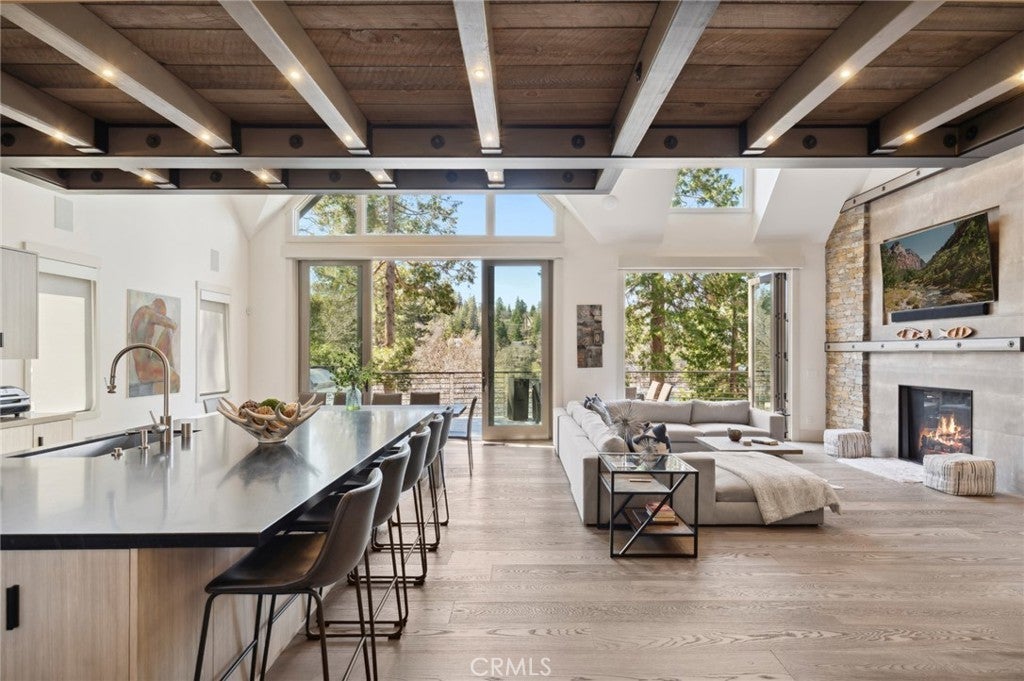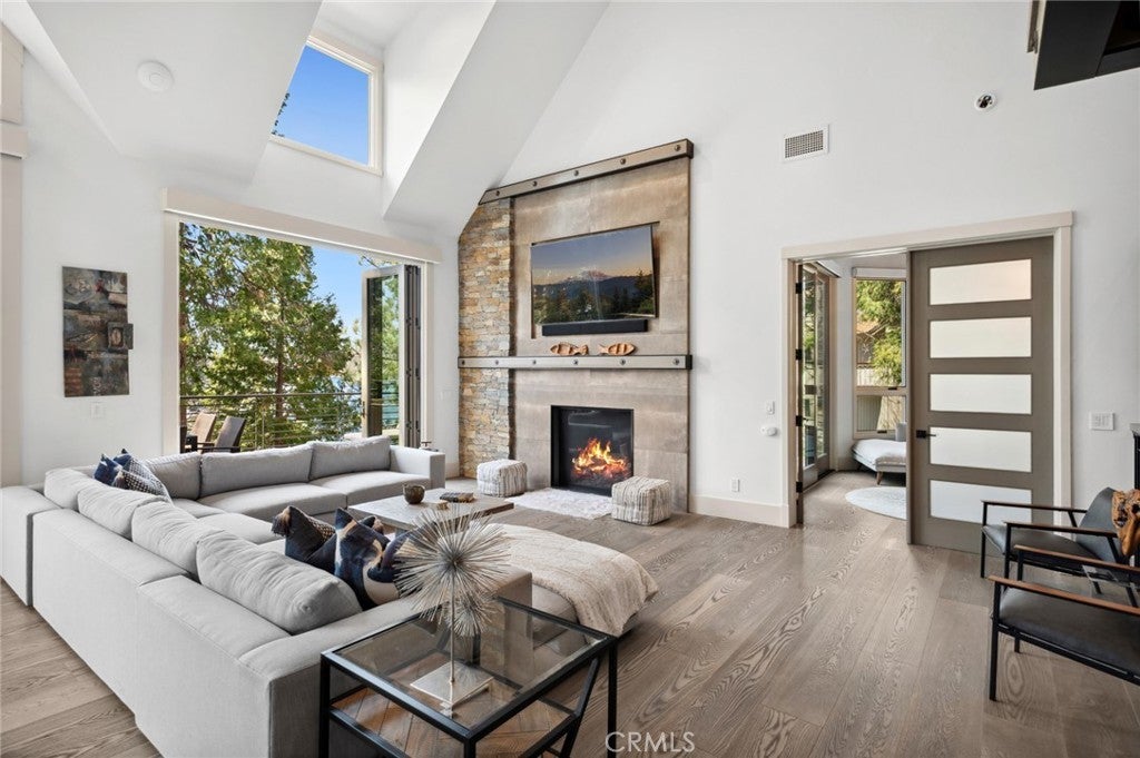 Welcome to one of the most exceptional turnkey lakefront estates in Lake Arrowhead, perfectly positioned on deep, swimmable water in the exclusive enclave of Emerald Bay. This is where modern luxury, effortless mountain living, and true lakefront lifestyle come together in one unforgettable property. Located within Arrowhead Woods, Lake Arrowhead’s highly sought after private lake rights community, this home offers rare access to one of Southern California’s most prestigious and private lakes. From the moment you arrive, you are greeted by a heated driveway and walkways, setting the tone for comfort and ease year round. The oversized three car garage, along with a dedicated boat garage, provides ample space for all your mountain and lake essentials. The property comes with a private dock and a custom waterfront cabana, creating the ultimate lakeside experience just steps from your door. Inside, the home is both striking and inviting, with floating staircases, dramatic LED lighting, and expansive floor to ceiling glass doors that blur the line between indoor and outdoor living. The chef’s kitchen is a true centerpiece, featuring a 60 inch Wolf range, quartzite countertops, Waterworks fixtures, and beautiful reclaimed North Carolina wood accents. Designed for both entertaining and everyday enjoyment, the home offers multiple levels of heated decks, a sleek linear fire pit, and a serene lakeside patio, all perfectly oriented to capture the beauty of the water. A fully integrated smart home system allows you to control lighting, sound, and climate with ease. Down at the water’s edge, your covered pier and custom cabana bar invite you to relax, entertain, and fully embrace lake life on some of the best, deepest water Lake Arrowhead has to offer. Beyond the lifestyle, this property is also an active, high performing short term rental with a proven track record, making it a rare opportunity to own not only a stunning personal retreat, but a strong income producing asset. Whether you are looking for a private escape, a place to gather for generations, or a luxury investment, this one of a kind lakefront estate delivers on every level. Opportunities like this in Arrowhead Woods are incredibly rare, this is lakefront living at its finest.