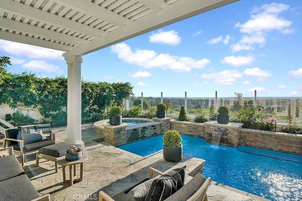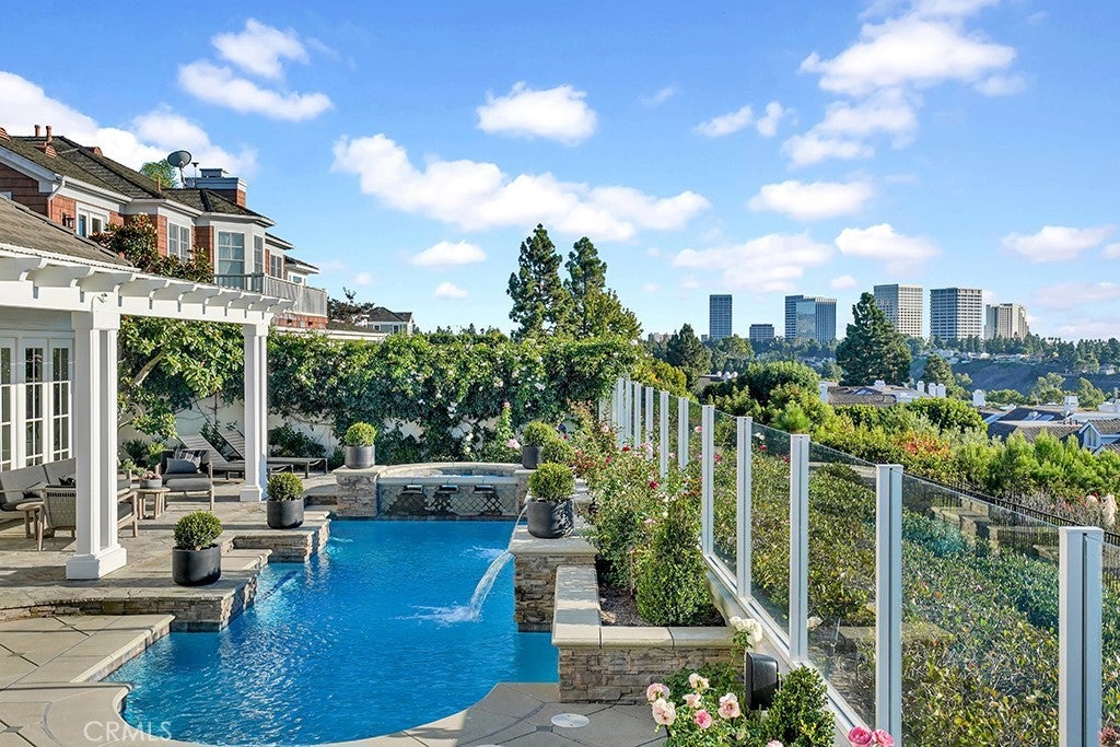 CATALINA VIEWS | PROVIDENCE RESIDENCE | ONE FORD ROAD | Privately positioned within one of the most desirable view corridors in One Ford Road, this reimagined Providence Residence captures sweeping coastal panoramas and Catalina Island sunsets, a rare setting reserved for a limited number of homes within Newport Beach’s most sought-after guard-gated enclave. Originally part of the Providence collection and the largest floor plan offered, the residence has been refined with curated interior updates, including European wood flooring by Warren Christopher and window treatments by The Shade Store, preserving its timeless American coastal design. Spanning approx. 5,200 sq ft, the residence includes five ensuite bedrooms, including a main level suite ideal for guests or office use, formal living and dining rooms, a study, and open gathering spaces designed to transition naturally toward the outdoor terraces and coastal horizon. The grand formal entry introduces the home with proportion and symmetry as the interiors reveal the Pacific beyond, framed by French doors overlooking the yard, pool, and distant coastline. The gourmet kitchen is appointed with Wolf and Sub-Zero appliances, double ovens, walk-in pantry, and porcelain surfaces, opening to informal living areas designed for both everyday luxury living and entertaining. Upstairs, the primary suite occupies the view side of the home with an intimate fireplace, dual dressing closets, spa-inspired bath with soaking tub, and the signature observatory retreat unique to the Providence plan four, offering elevated coastal sightlines. Three additional ensuite bedrooms are arranged along the opposite wing, providing separation and privacy, while the upper-level study offers flexibility for office use, work, or retreat. Outdoor spaces are oriented toward the view, where the saltwater pool & spa, Alfresco barbeque, fire feature, and landscaped grounds inspired by Roger’s Gardens complement the home’s coastal exposure. Residents of One Ford Road enjoy one of Newport Beach’s most established guard-gated communities, with resort-style amenities, pools, fitness center, and private community family events. Moments from Fashion Island, Newport Harbor, and the beaches of Newport and Corona del Mar. Within this setting, the residence represents one of the limited Providence view homes, combining architectural scale, coastal orientation, and the enduring prestige associated with one of Newport Beach’s most recognized addresses.