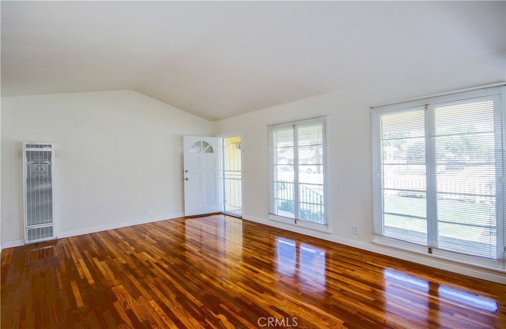 Charming white picket fence home in desirable Orange neighborhood! Soak in the sun from the lovely garden in the enclosed front yard. Upon entrance into the home, you are welcomed to the light-filled living room with vaulted ceilings and gleaming solid wood floors. Dinner time is enjoyable from the dining room leading to the galley kitchen featuring all-new stainless steel appliances. Behind the kitchen is a sunlit work from home space or eat-in kitchen. The primary bedroom with attached remodeled bathroom features a lux step-in shower and large closet. The spacious second bedroom overlooks the front of the home, and hallway bathroom is updated with shower-over-tub. Relax in comfort year-round with window AC/wall furnace throughout. Step outside from the dining room to the private backyard with covered awning. From there you will access the 2-car garage with laundry hookups. Owner to cover water, trash, and landscaping. No pets, please. This home is a commuter's dream with quick access to the 5, 22 and 57. Excellent food and retail in the immediate area.