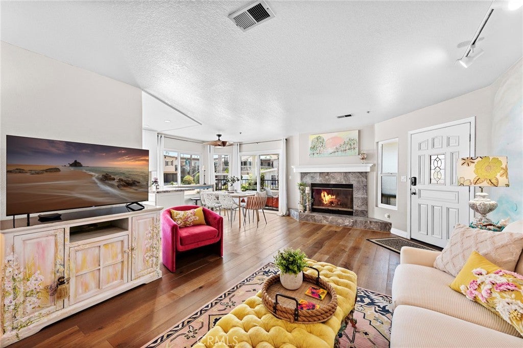 Just a short walk to the beach! Discover coastal living in this spacious 3-bedroom, 2-bath condo on the Montalvo Loop in South San Clemente. The extremely open and airy layout features laminate flooring throughout, a family room with a fireplace, and an updated kitchen with granite countertops and upgraded appliances. Large windows and a canyon view enhance the bright, inviting interior. Enjoy canyon and an ocean-views from the semi private deck. Additional conveniences include inside laundry, mirrored closet doors, and underground parking with additional storage.