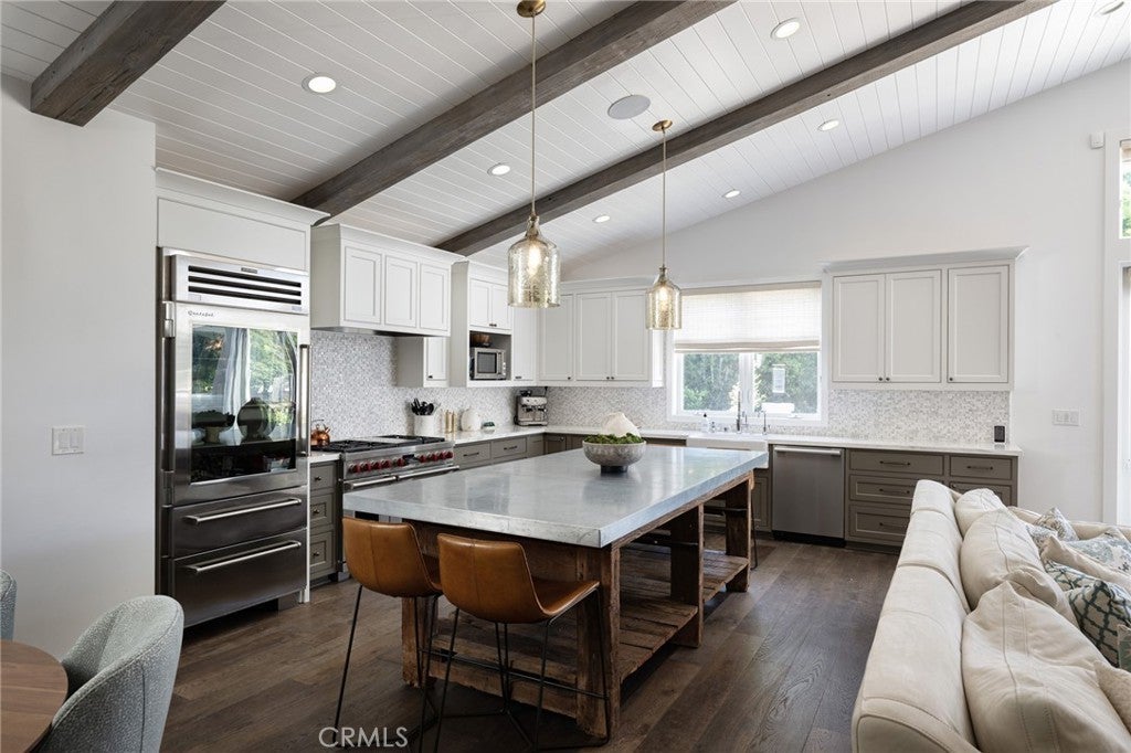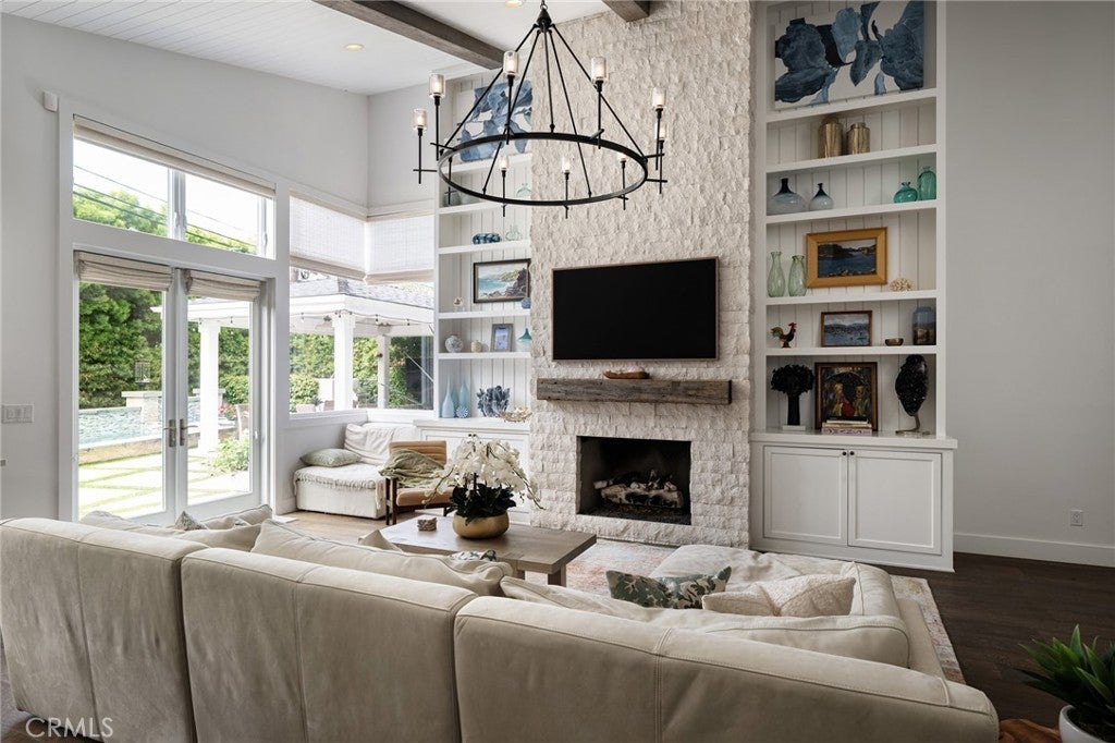 Welcome to 519 Signal Road—an exceptional coastal residence nestled in the coveted enclave of Cliff Haven in Newport Beach. Reimagined with a refined modern Cape Cod aesthetic, this nearly 4,000-square-foot home blends timeless architecture with contemporary livability, offering 5 bedrooms, 5 bathrooms, and a richly appointed executive office that can function as a sixth bedroom. Designed with both scale and intention, the interiors are anchored by a bespoke chef’s kitchen featuring a statement island and premium finishes, seamlessly connecting to light-filled living spaces. A striking floor-to-ceiling stone fireplace defines the main living area, creating a warm yet sophisticated focal point. The upper level is dedicated to an expansive primary suite retreat—spanning the entire floor—offering privacy, comfort, and a serene coastal ambiance. Modern living is effortlessly integrated throughout, including owned solar, Nest climate control, Lutron lighting, integrated security and whole-home audio. Outdoors, the resort-style backyard invites both relaxation and recreation, complete with a pool, cold plunge, and infrared sauna—surrounded by lush landscaping and coastal breezes. Ideally located moments from Newport’s premier dining, shopping, marinas, and beaches, this home represents a rare opportunity to experience elevated coastal living in one of the area’s most desirable neighborhoods.