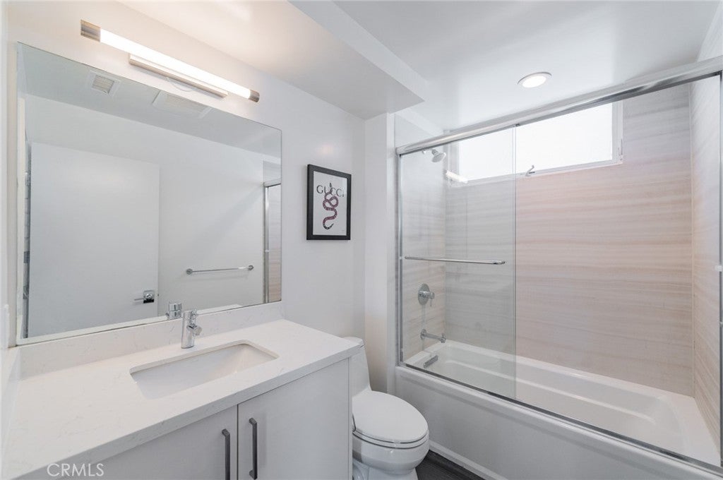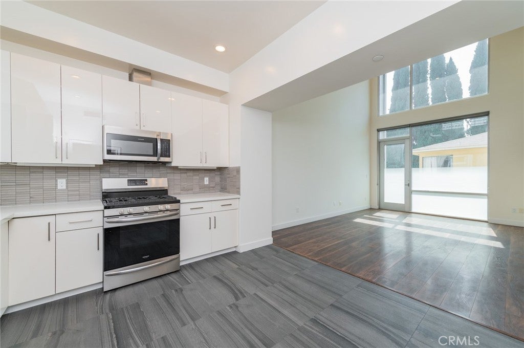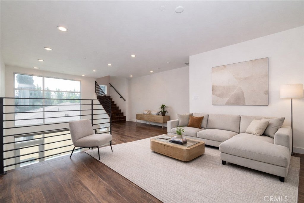 Elevated in the heart of Hollywood, this contemporary single-family residence offers refined urban living within an exclusive gated community. Built in 2017, the tri-level home features approximately 1,942 sq ft, 3 bedrooms, and 4.5 bathrooms. Designed with a modern open layout, the home showcases soaring ceilings, floor-to-ceiling windows, and abundant natural light. The main level flows seamlessly from the living and dining areas into a sleek kitchen with quartz countertops, stainless steel appliances, and custom cabinetry. A versatile mezzanine provides ideal space for a home office or lounge. The top-floor primary suite offers a private retreat with a walk-in closet, dual vanities, and a spa-inspired shower, while a ground-level ensuite bedroom adds flexibility for guests. Enjoy multiple outdoor spaces including a private balcony and a rooftop deck with panoramic city views and a direct view of the iconic Hollywood Sign—perfect for elevated entertaining. Complete with a direct-access two-car garage, in-unit laundry, and a prime location near top dining, nightlife, and entertainment, this home delivers a rare blend of privacy, style, and convenience in one of Los Angeles’ most vibrant neighborhoods.