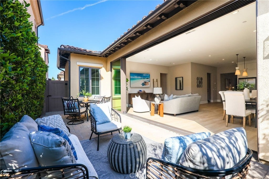 Nestled within the prestigious Reserve at Orchard Hills in Irvine, this stunning Tuscan style Detached Verdi home showcases refined elegance and sophisticated living throughout. Thoughtfully designed for both comfort and functionality, the home features a desirable main-level primary suite and dedicated office, while two spacious guest bedrooms upstairs provide comfortable and private accommodations for family and guests. Step inside to discover a beautifully upgraded interior, highlighted by new luxury vinyl plank flooring that spans the main level, creating a warm yet modern ambiance. The designer kitchen serves as the heart of the home, featuring sleek quartz countertops, a spacious center island with pendant lighting, an upgraded designer backsplash, and premium stainless steel appliances, perfect for both everyday living and entertaining. The open concept great room is enhanced by a large panoramic sliding glass door that seamlessly connects indoor and outdoor living, flooding the space with natural light and offering direct access to the backyard. The primary suite offers a serene retreat, complemented by a spa-inspired bathroom complete with a soaking tub, dual vanities, an upgraded walk-in shower, and a custom-organized walk-in closet. Outdoors, enjoy a low-maintenance backyard finished with elegant paver stone flooring, ideal for relaxing or hosting gatherings in style. Community amenities include 2 resort style pools, club house, playground, and sports courts. Feeds into the award winning Irvine Unified School District schools such as Canyon View Elementary and Northwood High School. This exquisite residence presents a rare opportunity to experience the epitome of luxury living. A Must See!