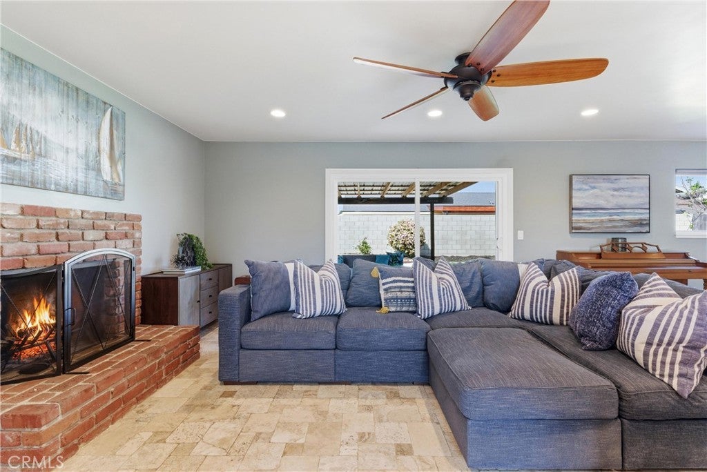 Huntington Beach 92647 single story move in ready 3 bedroom 2 bath home with no interior steps and a bright open kitchen dining and living layout. The updated kitchen blends function and style with granite countertops, decorative tile backsplash, under cabinet lighting, and soft close drawers and cabinets. Stainless steel appliances with matching hood vent create a clean modern look, while the new five burner stove adds everyday performance. A corner cabinet with built in turntable maximizes storage and keeps items easy to reach. Travertine tile flooring adds durability through the main living areas. The living room is anchored by a gas fireplace that creates a natural gathering point for movie nights or hosting friends. Dual pane windows support comfort and efficiency, and central air keeps the home cool. Recessed lighting adds a bright modern feel, complemented by a custom light fixture that defines the dining space. Quality interior details include raised panel doors and smooth bullnose corner walls for a finished architectural touch. Bedrooms are well proportioned and flexible for guests, work from home, or growing households. One bedroom features 8 foot mirrored closet doors that reflect light and expand the feel of the room. Both bathrooms showcase clean updated tile finishes, including a tile surround tub and shower enclosure and a custom tile shower with a built in seat. Outside, the covered patio extends your living space for outdoor dining, lounging, or casual entertaining. The yard is enclosed with block wall fencing for privacy and low maintenance enjoyment. Enjoy the Huntington Beach lifestyle with a central location that makes daily routines easy and weekends feel like a getaway. You are minutes from great shopping and dining, including Bella Terra, local cafes, and popular restaurant options throughout the city. Outdoor activities are always close by, from neighborhood parks and coastal trails to beach days, surfing, and sunset walks along the sand. For commuters or anyone who wants quick access around Orange County, the location offers straightforward freeway connectivity, keeping major employment centers, John Wayne Airport, and nearby coastal cities within reach. Close proximity to shopping, dining, entertainment, and quick freeway access, plus the benefit of being near Lake View Elementary School. A strong move up option for condo or townhome owners who want a single family home and a yard while avoiding HOA dues.