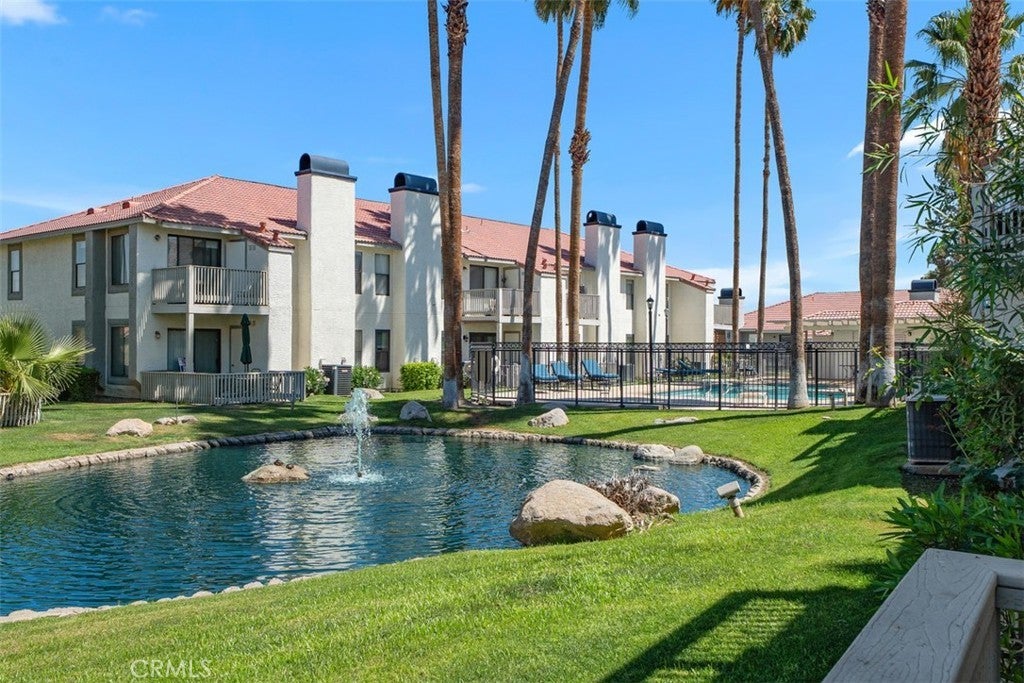 Welcome to resort-style living in the highly desirable guard-gated Palm Lakes community in Palm Desert. This charming 2-bedroom, 1-bathroom downstairs unit offers comfort, convenience, and an ideal desert lifestyle. Perfectly situated within the community, the home is just a short distance to the clubhouse and both pools, making it easy to enjoy all the amenities Palm Lakes has to offer. Step outside to your private back patio, where you can relax and take in tranquil views of the community’s beautiful central water feature—creating a peaceful and inviting outdoor space. Residents enjoy a well maintained setting highlighted by the serene water feature that enhances the overall ambiance of the neighborhood. Located in the heart of Palm Desert, widely known as a golf and tennis mecca, you’ll be surrounded by world-class golf courses and tennis facilities, making this an exceptional opportunity for golf and tennis enthusiasts, second-home buyers alike, or a full time resident. Ideally located near the renowned El Paseo Shopping District, you'll have convenient access to world-class restaurants, boutique shopping, and vibrant entertainment options. Plus, with low HOA fees, this home offers exceptional value in one of Palm Desert’s most inviting communities. Whether you're searching for a full-time residence or the perfect second home getaway, this property is an excellent fit. Don’t miss this opportunity to own your slice of desert living!
