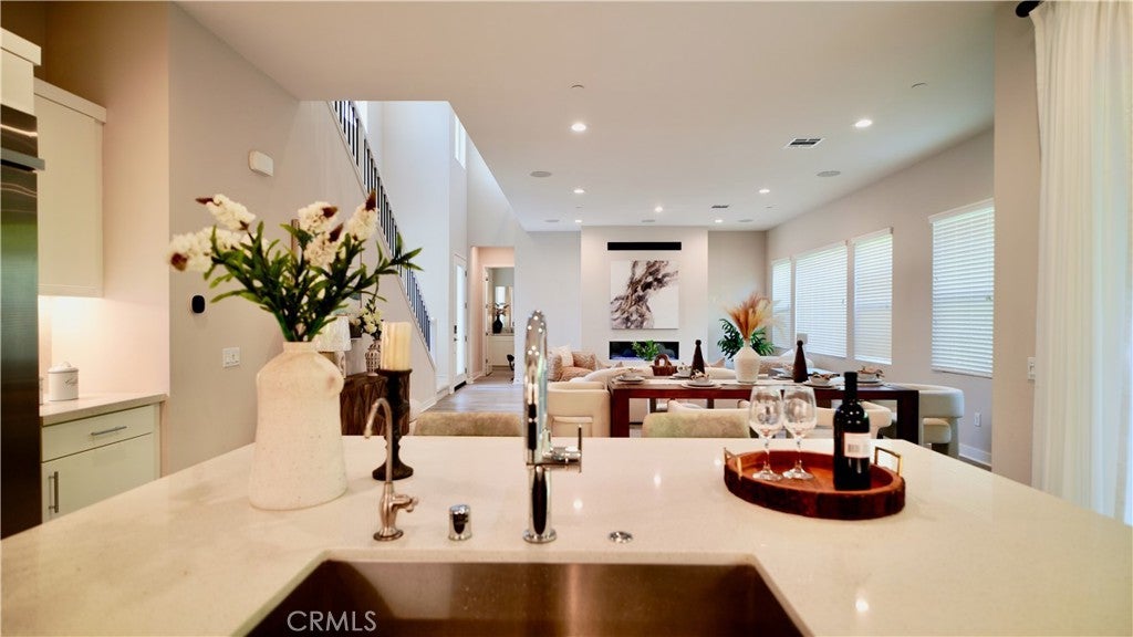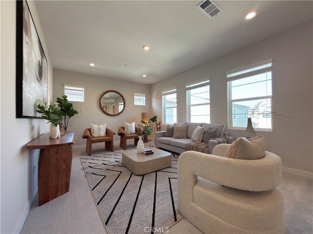 Welcome to this beautifully maintained home located in the desirable Meadows community of Lake Forest. This spacious residence offers approximately 2,753 square feet of thoughtfully designed living space, featuring 4 bedrooms and 4 bathrooms. The main level showcases a highly functional open-concept layout where the living room, dining area, and kitchen seamlessly connect, creating a versatile space for everyday living and entertaining. Large windows allow abundant natural light to fill the interior, enhancing the bright and airy atmosphere throughout. The kitchen is equipped with upgraded appliances, ample cabinetry, and a generous center island. A main-level bedroom with a full bathroom provides added flexibility for a variety of living arrangements or workspace needs. Upstairs, a spacious loft offers additional living space suitable for a variety of uses, along with three well-sized bedrooms including a primary suite. A dedicated laundry room is conveniently located on the second floor. Additional features include modern finishes, an attached garage, and access to community amenities. Conveniently located near shopping, dining, parks, and major transportation routes.