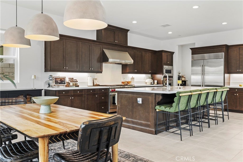 Turnkey perfection in the highly sought-after FivePoint Valencia community! This beautifully upgraded home offers a bright, open-concept layout with brand-new flooring throughout the first floor and designer touches throughout. The spacious great room flows effortlessly into a gourmet kitchen featuring Sub-Zero refrigeration and Wolf appliances, a large center island, and abundant cabinetry—ideal for both everyday living and entertaining. With 5 bedrooms, each offering its own en-suite bathroom, including a highly desirable first-floor suite, this home provides ultimate comfort and flexibility. Upstairs, four additional private suites ensure space and privacy for everyone. Stylish floating stairs, upgraded insulation, and a convenient main-level powder room add to the home’s thoughtful design. Custom window coverings and professionally finished front and backyard landscaping are already complete—just move in and enjoy. Located in a vibrant, amenity-rich community with resort-style pools, parks, and scenic trails, all just minutes from shopping, dining, and major freeways.