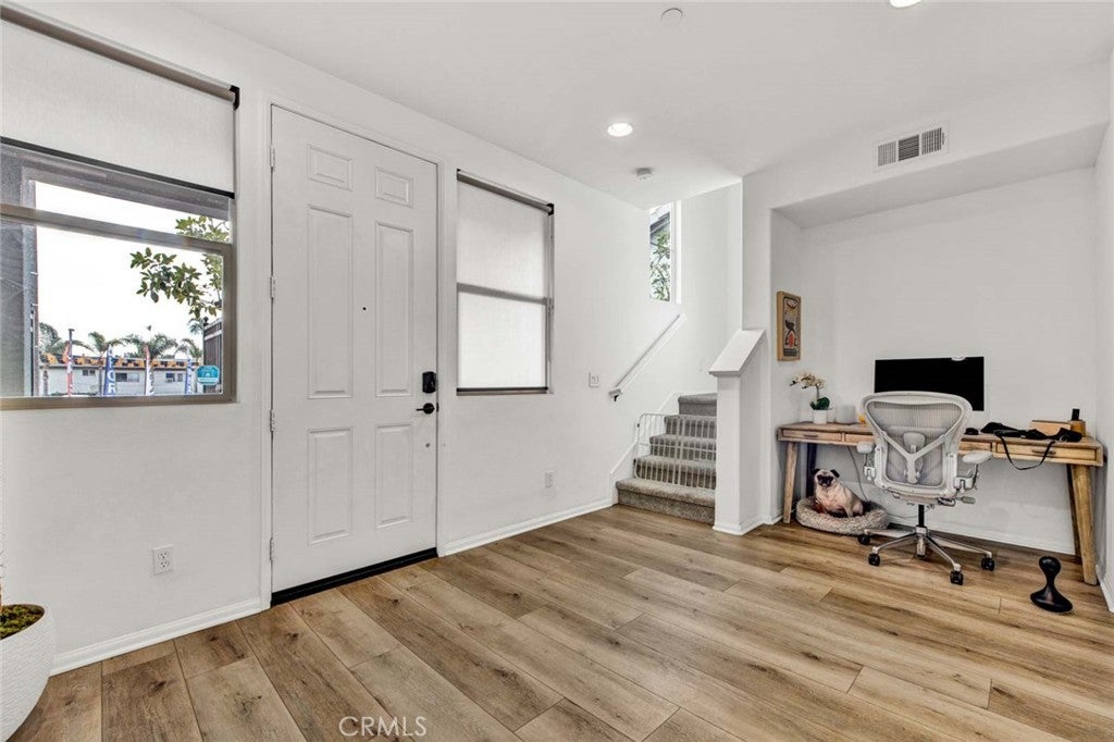 Welcome to this 2-bedroom, 2.5-bathroom home with approximately 1,630 square feet, perfectly situated on Pacific Coast Highway in the heart of Signal Hill! The first level offers a flexible space, ideal for a cozy den, playroom, or home office, inviting creativity and comfort. Upstairs, the spacious living room flows seamlessly into the dining area and kitchen, creating a warm, open space perfect for gathering with friends and family. The kitchen is the heart of the home, featuring quartz countertops, a waterfall-edge island, and premium stainless steel appliances. Step out to the private patio, the perfect spot to savor your morning coffee, read a book, or simply unwind. A convenient powder room completes this level. The third level offers two bedrooms, each with an en-suite bathroom, dual sinks, and walk-in closets. Laundry is easily handled on this level with a full washer and dryer. Additional highlights include a direct-access 2-car garage. Ideally located just minutes from the Traffic Circle, California State University Long Beach, and a variety of shops, restaurants, and entertainment, with quick freeway access, this home blends comfort, style, and convenience in a truly desirable setting.