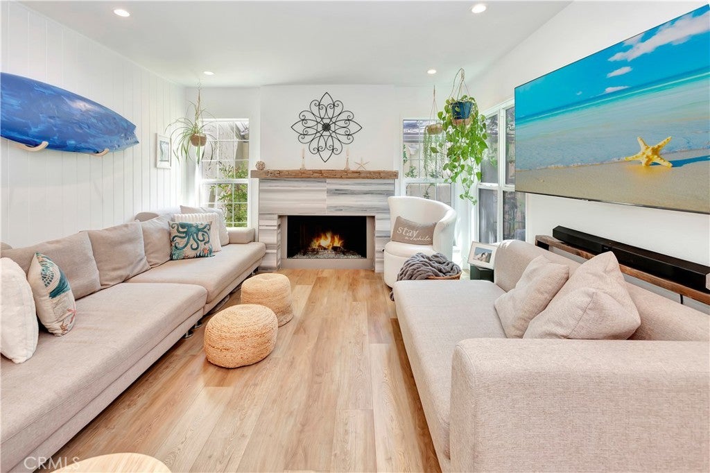 Fully Remodeled 4-Bedroom with Designer Backyard, Spa & Solar! This stunning, light-filled property lives like a single-family home and has been completely renovated from top to bottom! Featuring an open floor plan, wide-plank laminate flooring, double-pane windows, and a brand-new HVAC & A/C system. The chef’s kitchen shines with soft-close shaker cabinets, Calacatta quartz countertops, KitchenAid appliances, and a large island that opens to a cozy family room with fireplace. Enjoy formal living and dining spaces, a sleek wet bar with wine cooler, and stunning Bi-Folding & French doors that lead to your fully remodeled private backyard—complete with new landscaping, above-ground spa, outdoor shower, and brand-new fencing. The front yard has also been completely upgraded with new turf, a front gate, and a wonderful usable space with added features—perfect for additional outdoor living and entertaining. Upstairs offers 4 bedrooms, including a spacious primary suite with gas fireplace, walk-in closet, and spa-like bath with dual vanities and shower heads. Solar panels, EV charger, and a finished 2-car garage with epoxy flooring add convenience and value. HOA includes water/sewer. Largest model in the community, minutes from beaches, Dana Point Harbor, golf, top schools, and luxury resorts. Turnkey coastal living at its finest!