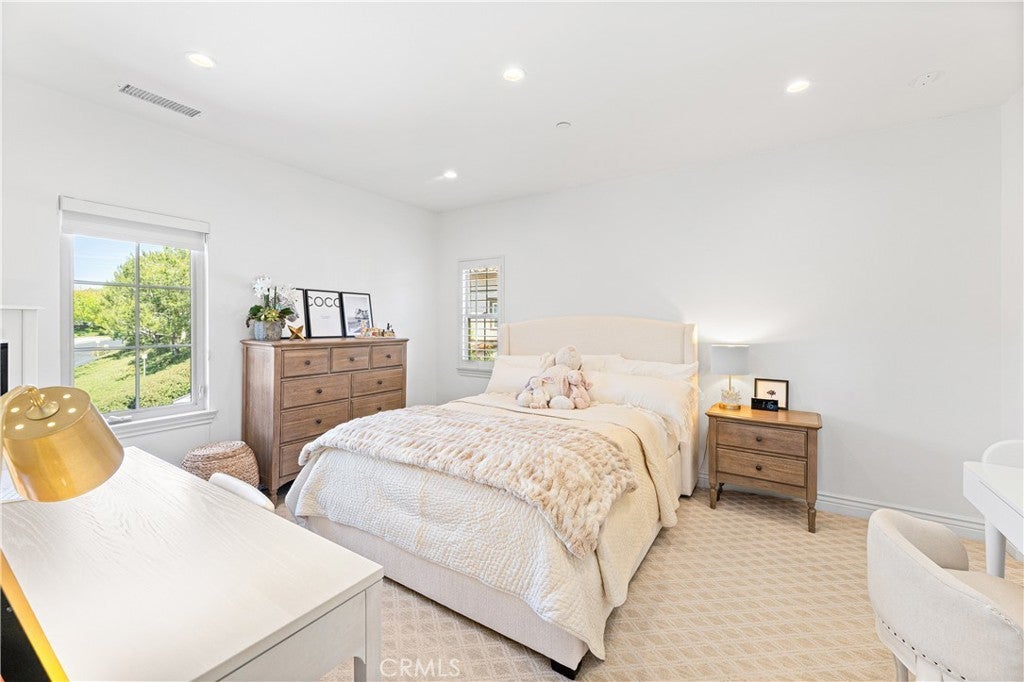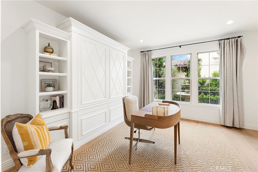 Tucked behind the exclusive gates of The Summit at Turtle Ridge, this end-of-cul-de-sac estate sits on one of the largest lots in the Citrus enclave at over 9,500 sq. ft. Meticulously expanded to 4,073 sq. ft., the home delivers a floor plan that is both grand in scale and genuinely flexible in function. The highlight of recent upgrades is the main-level Wellness Suite permitted as a junior ADU, a sleek, professionally finished gym with a full bathroom and premium finishes that converts effortlessly into a private bedroom or guest suite. Beyond it, the interior flows through a generous formal dining room into a chef's kitchen featuring modern counters and all-new wide-plank wood flooring throughout. Whole-home LED lighting and a thoughtfully reimagined layout make every square foot feel intentional. The primary suite offers a Juliet balcony, dual vanities, a spa-like bath, and a large walk-in wardrobe, plus a private retreat behind dual French doors, ideal as a sitting room or home office. Outside, a private backyard with lush lawn and room for a pool sets the stage for elevated entertaining, complemented by a three-car garage and an oversized driveway that handles any occasion. Located within the award-winning University High School boundaries, residents enjoy resort-style community pools, private hiking trails, and an exclusive clubhouse. 26 View Terrace is a rare combination of scale, privacy, and lifestyle versatility in one of Irvine's most prestigious gated communities.