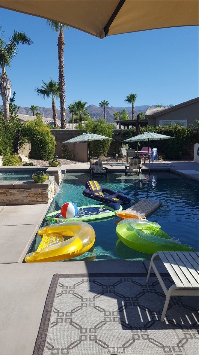 AVAILABLE FROM April 2026 thru December 2026. Already rented December 2026 to mid-May 2027. Beautifully furnished Single level Pool Home with 3 bedrooms, 2.5 bath, separate office area & a den/sitting area. Large great room that opens to an entertainer’s kitchen with 2 islands, gas stove, pantry and has views of the pool. Large Master retreat with King sized bed, TV, sitting area, ensuite with dual sinks, granite counters, walk in shower, walk-in closets and direct access to the pool. 2 additional large bedrooms with Queen sized beds and flat screen TVs for your quests. PRIVATE over-sized saltwater pool with large tanning shelf, and elevated spa with a peaceful waterfall into the pool. Beautifully landscaped backyard with several covered sitting areas, a shaded outdoor dining area and a large patio area which has a fan and retractable awning for those hot summer days. Enjoy beautiful mountain views from the pool & spa with plenty of deck space for relaxing & entertaining. A true Vacation Home! Trilogy is a premier 55+ active senior community. Enjoy all the Resort Style amenities within the clubhouse with onsite Café, Spa, Pickle ball, Tennis, 2 Pools, Fitness Center and many more activities available. April $8500, May thru Sept $5500, Oct-Nov $7000. Minimum 30 day rental.