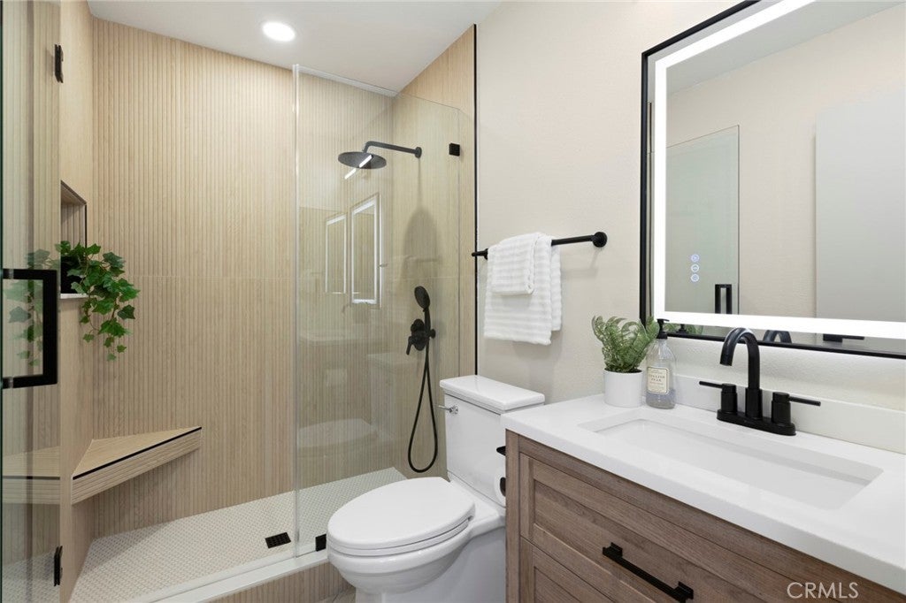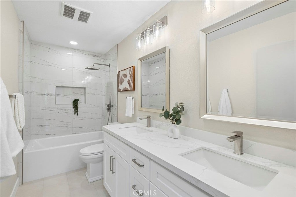 Welcome to 24422 Aphena, a beautifully reimagined, fully upgraded & re-piped home nestled in the heart of Mission Viejo. Extensive, high-quality renovations throughout, this residence offers the perfect blend of modern luxury, comfort & SoCal living. Step inside to a spacious, thoughtfully designed floor plan enhanced by abundant natural light & brand-new dual-pane, Low-E windows & sliders. Updated, 100% waterproof 12mm laminate flooring flows seamlessly through the home, complemented by fresh Dunn-Edwards interior & exterior paint, creating a clean & contemporary aesthetic. Fully remodeled kitchen is a true showstopper, featuring quartz countertops w/a dramatic waterfall edge, stunning designer backsplash, soft-close cabinetry & drawers, custom lighting including under-cabinet illumination & a full suite of brand-new appliances. Opening effortlessly to the dining & family areas, making it ideal for both everyday living & entertaining. All 3 bathrooms have been completely renovated w/upscale finishes. Downstairs bedroom & Full bathroom offer added convenience. The primary bathroom boasts a spa-like retreat w/large-format marble hexagon tile, deep freestanding designer soaking tub, custom frameless glass shower w/rainfall showerhead, oversized niche & built-in bench. Quartz countertops, elegant soft-close cabinetry & shower wands elevate all bathrooms w/both style & function. The primary suite is further enhanced by a beautifully remodeled closet showcasing tailored cabinetry by Closet Evolution, offering both organization & luxury. Additional interior upgrades include recessed lighting, modernized ceiling fans, new outlets, switches & dimmers, upstairs hallway nightlights & refinished contemporary-style fireplaces w/striking 5ft floating mantels. Major system improvements provide peace of mind, including a full home re-pipe & brand-new roof. Step outside to a private & tranquil backyard, thoughtfully upgraded w/added drainage, new front yard landscaping, updated fence & additional hillside sprinklers. Brand-new 14x8 louvered canopy system w/adjustable opening & closing features creates a perfect shaded outdoor space for relaxing or entertaining. Further enhancements include recently installed front door, side garage door, mirrored wardrobe doors & all-new locksets/doorknobs. Ideally located mins from the Civic Center, Oso Creek walking trails, Mission Viejo Library, The Shops at Mission Viejo & a variety of dining, shopping & everyday conveniences. NO HOA