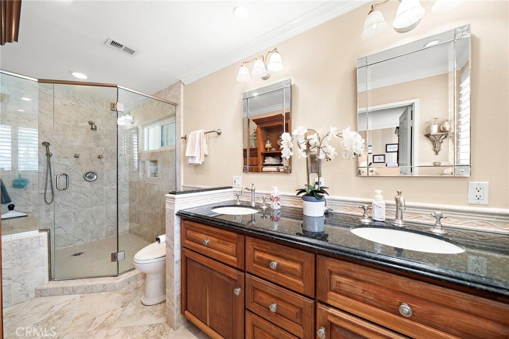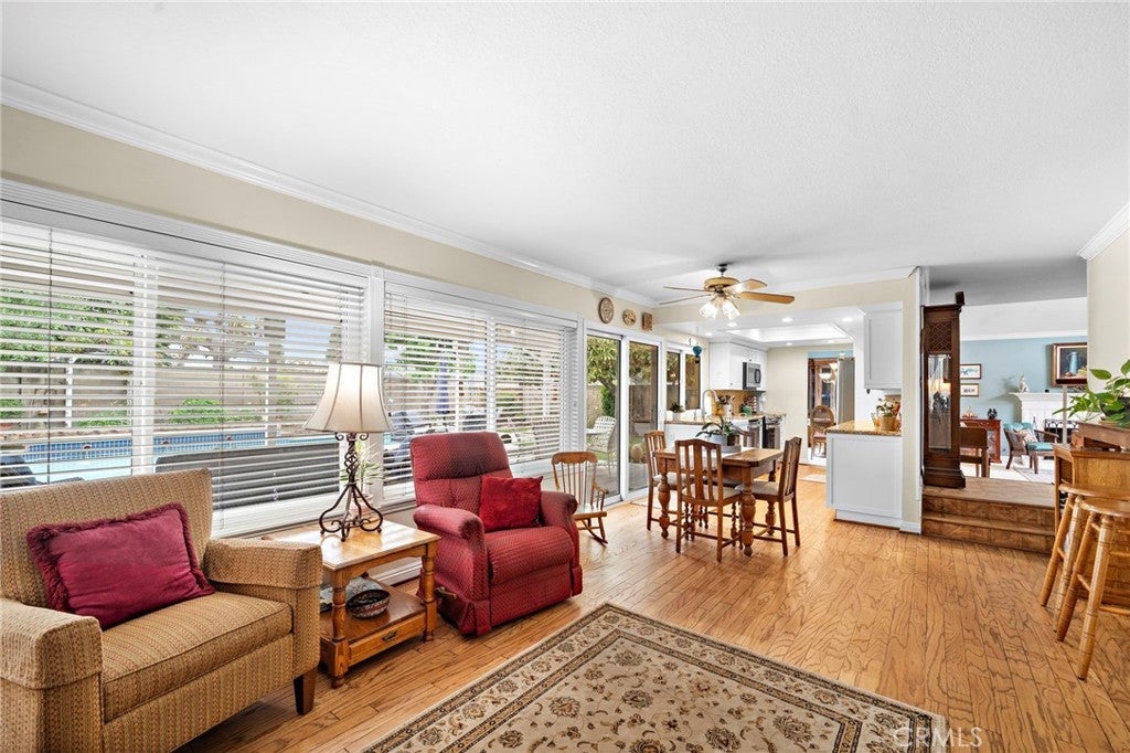 Absolutely stunning, meticulously maintained, and beautifully upgraded 4 bed, 3 bath pool home w/ a highly desirable bedroom and bath downstairs, ideally situated on an interior corner lot in an pristine neighborhood near Mile Square Park & top-ranked schools. This exceptional residence checks every box for the perfect dream home. Captivating curb appeal w/ manicured landscaping, custom paver driveway and walkway, a custom entry door. Step inside to a grand foyer, elegant living room with soaring ceilings, custom fireplace, bay window, and high transom windows that flood the space w/ natural light, while showcasing extensive upgrades including, crown molding, dual pane windows, plantation shutters, newly refinished hardwood flooring, all new PEX plumbing throughout. Beveled French doors open from the formal dining room to one of the most incredible backyards you’ll experience, a true private resort featuring a sparkling pool, spa, water features, brick walkways, lush landscaping, flowering gardens, mature fruit trees, avocado, lime, lemon, and navel orange, a custom child-safety fence, and a covered patio with 8 recessed lights and 3 skylights. The chef’s kitchen impresses w/ granite countertops, subway tile backsplash, a Whitehaus fireclay farmhouse sink, custom white shaker solid-wood soft-closing cabinetry w/ deep drawers and stainless steel appliances, an induction range w/ extra-large 3-rack oven, microwave, and dishwasher, all open to an inviting family room w/ a wet bar and walls of glass overlooking the backyard, an outdoor granite counter for seamless indoor-outdoor entertaining. Upstairs offers 3 spacious bedrooms, each w/ walk-in closets and ceiling fans, including a primary suite featuring chic hand-painted walls, a remodeled ensuite w/ Travertine flooring, wraparound granite vanity w/ dual sinks, custom cherrywood cabinetry, and a large walk-in shower w/ seating and multiple shower heads, along with an oversized walk-in closet w/ custom built-ins. The secondary bath is remodeled w/ wainscoting, quartz vanity, Solatube skylight, a tub/shower w/ designer tile, while one secondary bedroom provides access to a large attic space w/ potential for an additional bedroom, office, or bonus room. The downstairs bathroom features Travertine finishes, and throughout the home, every upgrade reflects exceptional quality and pride of ownership, this is truly a rare opportunity to own a turn-key, resort-style home in a premier location.