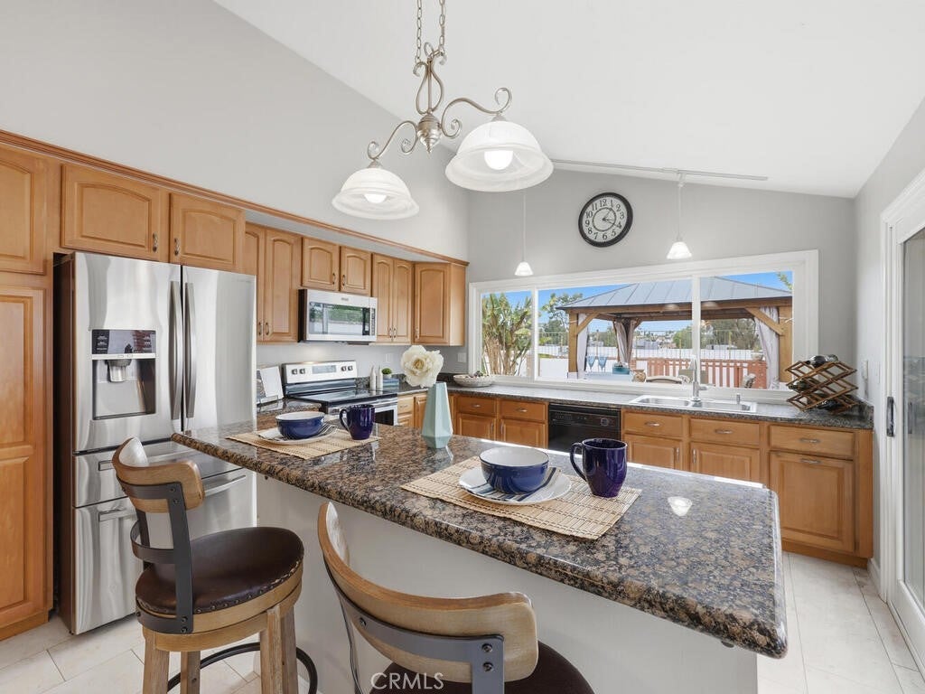 Welcome to 25071 Mawson Drive a single-story beauty in the highly desirable community of Laguna Hills, where comfort, efficiency, and stunning views come together in one exceptional home. This light-filled residence offers a bright and airy interior, featuring a formal living room with a cozy fireplace and French doors leading the the rear yard—perfect for gatherings and entertaining. The remodeled kitchen is the heart of the home, showcasing a separate dining area and an island with counter seating and extra storage, ideal for casual meals and socializing, all while maintaining a seamless flow to the main living spaces. The spacious main bedroom features vaulted ceilings, an extended closet, and French door access to rear yard. Thoughtfully designed for both everyday living and entertaining, the home effortlessly blends indoor and outdoor living. Step outside to your private backyard retreat featuring a sparkling pool and portable patio cover—perfect for relaxing, hosting, or enjoying Southern California’s year-round sunshine. Take in the panoramic views that create a breathtaking backdrop and elevate the overall sense of tranquility and space. Don’t miss the abundant producing lemon tree. Adding to the home’s appeal is fully paid solar, providing energy efficiency and long-term savings. Dual paned windows, fresh interior paint and tile flooring throughout. Ideally located near Laguna Hills Community Center, top-rated schools, shopping, dining, and convenient freeway access, this home delivers the best of the Laguna Hills lifestyle. Low taxes and no HOA. A rare opportunity to own a view property with a pool and paid solar—this one truly has it all.