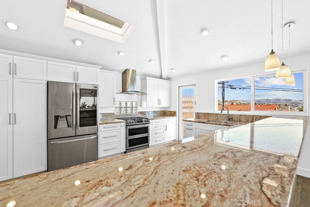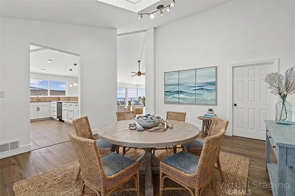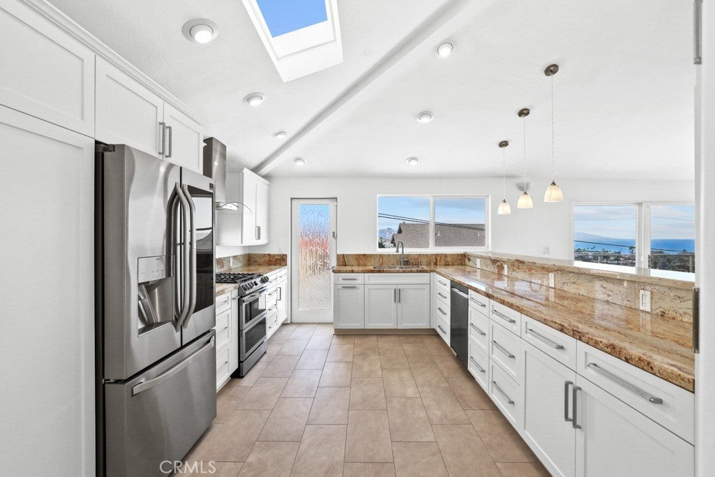 Located in the heart of Dana Point’s highly sought-after Lantern District, this exceptional property offers a rare opportunity to own a home with breathtaking panoramic ocean views and unmatched privacy. Perfectly positioned on a rare street-to-street lot, this residence captures the essence of coastal living with over 3,100 square feet of thoughtfully designed living space. This beautiful 4-bedroom, 2.5-bath home features a highly desirable main-floor primary suite along with a private pool and spa-an uncommon find in this neighborhood. From the moment you enter, you are welcomed by an abundance of natural light, soaring ceilings, and refreshing ocean breezes that flow throughout the home. The spacious dining room opens to a well-appointed kitchen, complete with ample counter space, generous storage, updated cabinetry, and a comfortable sit-down bar area-perfect for everyday living and entertaining alike. Upstairs, a stunning family room showcases dramatic ceilings, a cozy fireplace, and floor-to-ceiling windows framing incredible sit-down white-water ocean views. On clear days, enjoy sweeping coastal views stretching all the way to La Jolla. This inviting space seamlessly connects to an expansive outdoor deck, ideal for entertaining while taking in the coastal scenery. The main-floor primary suite offers a peaceful retreat with plantation shutters, a large walk-in closet, and a spa-inspired bathroom featuring a soaking tub and spacious walk-in shower. An additional main-level bedroom is generously sized and offers excellent flexibility.The lower level expands the home’s versatility with a large family room, workshop, and an additional bedroom with French doors, a beautifully updated full bath, kitchenette, and laundry area-perfect for guests, multi-generational living, or private quarters. Step outside to a lushly landscaped backyard featuring Trex decking, multiple seating areas, and a shaded patio overlooking a private in-ground pool and spa-creating a true resort-style setting rarely found in the Lantern District. Additional highlights include a tankless water heater, central heating and air conditioning, and a prime location on one of the Lantern District’s most desirable and private streets. Just moments from Dana Point Harbor, world-class beaches, shops, and dining, this home offers the very best of Southern California coastal living.