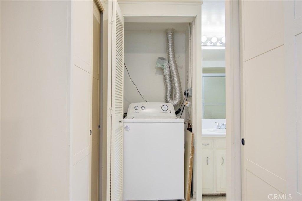 Charming and inviting 2-bedroom, 1.75-bath stock cooperative located in the desirable senior community of Laguna Woods. This light-filled home features dual-pane windows for enhanced energy efficiency and comfort along with a heat pump/AC in the living room and a skylight in the kitchen that brings in abundant natural light. Enjoy the convenience of in-unit washer and dryer hookups, a convenient and valuable feature. The spacious layout offers comfortable living and dining areas, while the large private balcony provides the perfect setting for relaxing or entertaining outdoors. Ideal for those seeking a peaceful, low-maintenance lifestyle in a well-maintained community. Enjoy all the amenities this 55 plus Laguna Woods Village has to offer including 5 swimming pools, 7 Clubhouses, 2 fitness centers, a 27-hole golf course with its own clubhouse & a 9-hole par 3 executive golf course, an equestrian center, wood workshop, a ceramic/sculpture studio with kiln, and much more. Over 250 social clubs to join. Free bus service within the Village or to the local shopping & medical centers. Only 6 -7 miles to Laguna Beach, short distance to 5 & 405 Fwy.