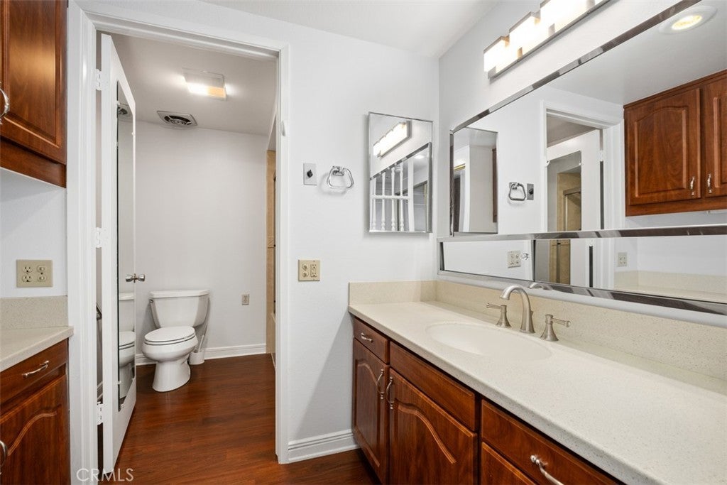 Welcome to this highly sought-after New Seville model in the prestigious guard-gated community of Laguna Woods Village. Ideally situated in the peaceful Nob Hill neighborhood, this home is surrounded by mature trees and lush greenbelts, offering a serene and private setting. An inviting, enclosed front patio creates the perfect space for entertaining or unwinding while enjoying the tranquil surroundings. Inside, a dramatic vaulted ceiling enhances the spacious living room, while expansive windows fill the home with abundant natural light and greenery. The thoughtfully designed floor plan features two primary suites on separate levels, each with its own bathroom, ideal for privacy, guests, or flexible living arrangements. The remodeled kitchen is both stylish and functional, showcasing granite countertops, custom cabinetry, stainless steel appliances, and a charming open view. Upstairs loft ideal for an office or retreat. The primary suite features a private balcony with serene views. Additional highlights include dual mini-split HVAC and fresh interior paint. 842-B is conveniently situated near laundry, carport, and guest parking. This home includes full access to Laguna Woods Village’s premier amenities, including 36 holes of golf, resort-style pools, fitness centers, clubhouses, tennis and pickleball courts, scenic trails, and over 250 social clubs. Experience the best of Orange County’s active 55+ lifestyle.