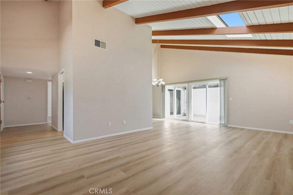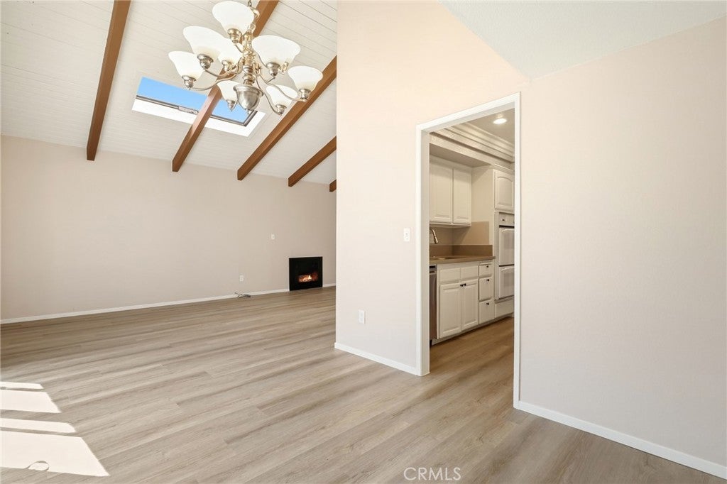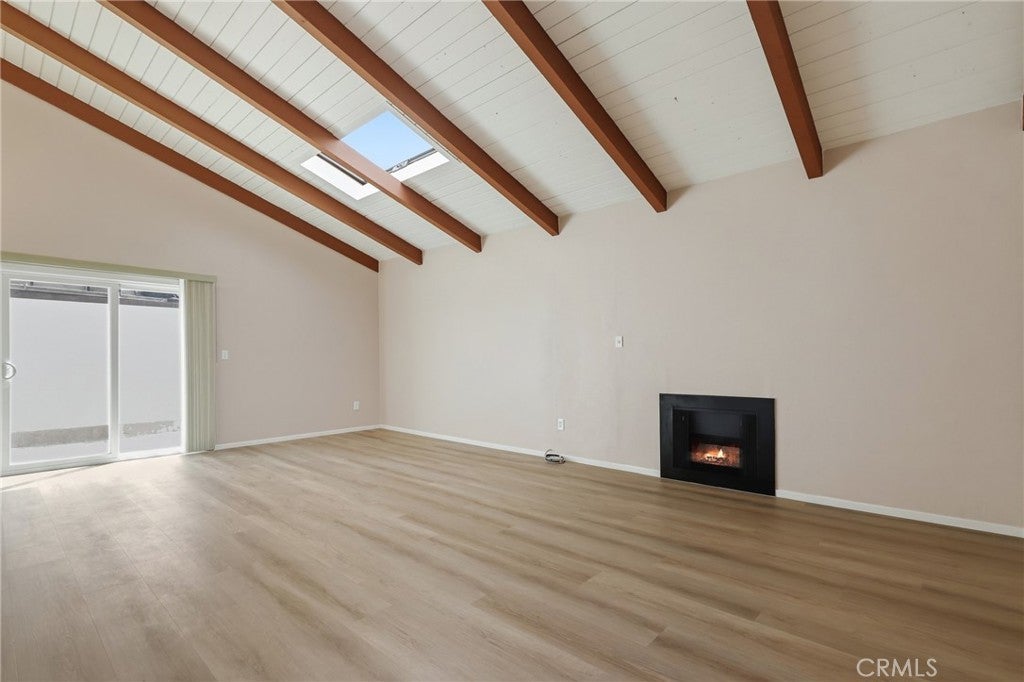 Charming single-level end-unit condo in a quiet, desirable Fullerton neighborhood! This spacious 2-bedroom, 2-bath home offers 1,181 sq. ft. of comfortable living space, thoughtfully updated with new luxury vinyl plank flooring throughout and a beautifully remodeled kitchen featuring quartz countertops and a brand-new refrigerator. The open great-room layout is perfect for both relaxing and entertaining, showcasing an inviting fireplace, soaring ceilings with exposed beams, and a dining area that overlooks a private patio. The primary suite is a true retreat, complete with direct patio access through sliding doors and a private en suite bathroom. Residents enjoy a low monthly HOA fee that includes resort-style amenities, such as a community pool and clubhouse. HOA dues also cover water, gas, and trash, adding exceptional value. Located in a top-rated school district serving Laguna Road Elementary, Parks Junior High, and Sunny Hills High School. Conveniently close to shopping, dining, parks, and freeway access. Ideal for first-time homebuyers, downsizers, or real estate investors seeking a turnkey property in Orange County. Don’t miss this rare opportunity to own a move-in ready home in one of Fullerton’s most sought-after communities!