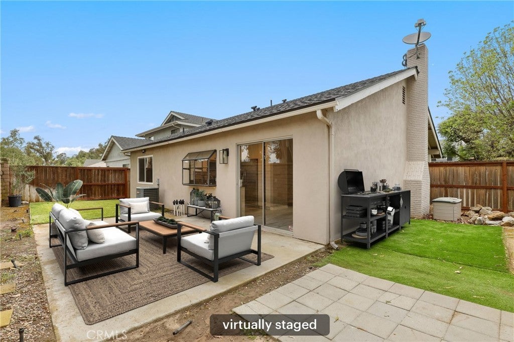 Lovely move-in ready home offering 1,164 square feet of light and bright living space, complete with a new roof and EV charging in the garage! A large grassy front yard, driveway, and 2-car attached garage welcome you in. Inside, the open-concept living area features a cozy fireplace and abundant natural light. The dining area flows seamlessly from the living room and opens to the backyard through a sliding glass door—ideal for indoor-outdoor entertaining. The updated kitchen showcases recessed lighting, white cabinetry, and stainless steel appliances. All four bedrooms are bright and comfortably sized, offering flexible living options. The private backyard provides a serene setting with low-maintenance turf and a patio, perfect for relaxing or hosting. Move-in ready and filled with natural light—schedule your showing today!