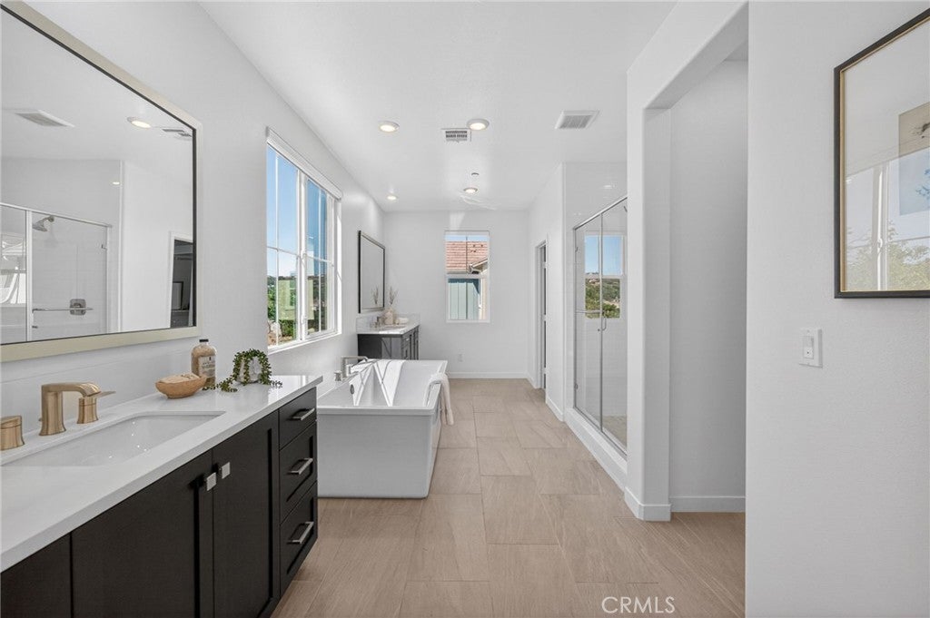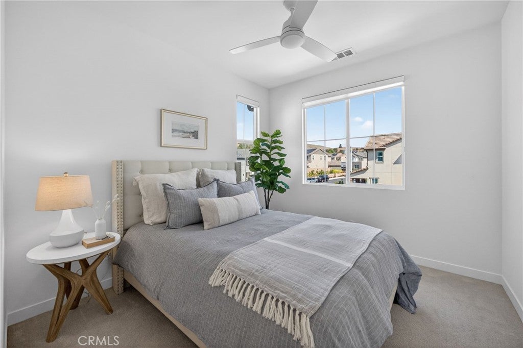 Built in 2022 and set within an exclusive gated enclave, this exceptional residence embodies refined coastal living with a seamless blend of modern elegance and effortless comfort. Ideally positioned on one of the most coveted lots in the community, with only one direct neighboring home, this rare offering provides an enhanced sense of privacy, space, and tranquility that is seldom available. The thoughtfully designed open-concept floor plan unfolds with sophistication, as the main living area flows seamlessly into a gourmet kitchen featuring a grand center island, premium Wolf and Sub-Zero appliances, and an elegant dining space—perfectly suited for both intimate gatherings and elevated entertaining. Walls of windows bathe the home in natural light, creating a bright, airy ambiance throughout. A private main-level bedroom and full bath offer an ideal space for guests or a refined home office. Upstairs, the primary suite serves as a luxurious sanctuary, complete with dual closets and a spa-inspired bath featuring a deep soaking tub designed for relaxation. Two additional bedrooms each with walk-in closets, are complemented by two well-appointed bathrooms, a spacious loft ideal for a secondary living area or workspace, and a fully equipped laundry room complete the upper level. Every detail has been thoughtfully considered, including abundant storage and built-in overhead garage racks. Step outside to a serene backyard retreat, where coastal breezes and glowing sunsets create the perfect backdrop for relaxation, further enhanced by the privacy of this premier lot location. Residents of this sought-after community, enjoy access to an array of resort-style amenities, including a recreation center with pool and spa, beautifully maintained parks, scenic walking and equestrian trails, BBQ areas, and a playground. Ideally located near stunning beaches, Dana Point Harbor, and top-rated schools, this home also offers convenient access to the charming downtown of San Juan Capistrano. Here, rich history meets modern coastal lifestyle, with the iconic Mission San Juan Capistrano, acclaimed dining, and boutique shopping just moments away create a truly unique lifestyle experience. Also, there is no Mello Roos AND fully paid solar!