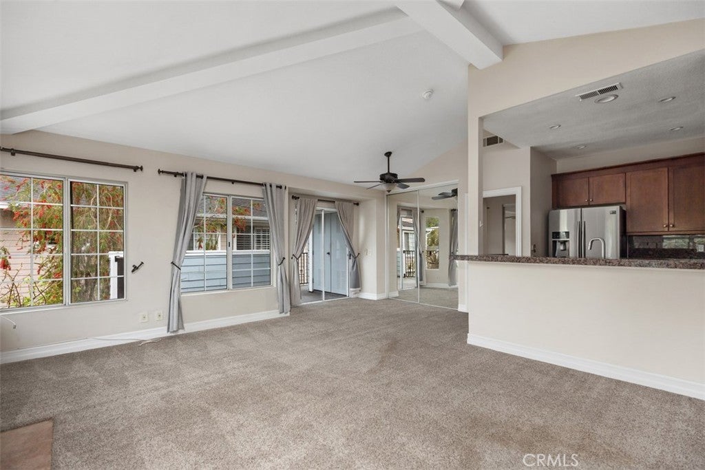 Welcome to the highly desirable Canyon Villas community in Aliso Viejo. This exceptional upper-level residence offers privacy with no one above, soaring high ceilings, and an abundance of natural light that creates a bright and airy living environment. Offering approximately 1,122 sq ft of living space, the thoughtfully designed floor plan features two spacious en-suite bedrooms, each with oversized walk-in closets and additional built-in storage, while the primary suite also includes an extra standard closet. A mirrored closet in the dining area provides even more functional storage. Enjoy comfortable, open living spaces that flow seamlessly to a private balcony, complete with laundry area. The property includes a one-car garage along with an additional assigned parking space for added convenience. Residents enjoy resort-style amenities including pool, spa, fitness center, and clubhouse. Ideally situated just minutes from Costco, Walmart, popular dining, parks, and major freeways for ultimate convenience. This home offers the perfect blend of comfort, convenience, and lifestyle. A rare opportunity to own a bright, upper-level unit with exceptional storage and layout.