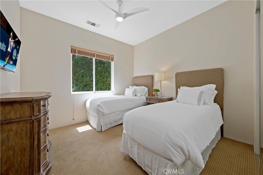 This home offered for monthly rental is an entertainer's dream. Located on the 13th fairway of the Jack Nicklaus Tournament Course at PGA West. With luxury indoor and outdoor living areas and four en-suite bedrooms, this property is great for a trip to the desert or a golf outing with family and friends. Upon entrance you will find a formal living and dining room (seats 8) with cathedral ceilings and a wet bar. The family room has a large TV with cable and a functional fireplace. The fully equipped kitchen has granite countertops, dual ovens and a large breakfast bar and table for four. The spacious outdoors of this home allows you to soak up the La Quinta sunshine in the backyard living area with a saltwater pool with a tanning shelf, hot tub, and a covered terrace with ceiling fans, outdoor table for six, a built in BBQ and a firepit. Every bedroom boasts high end luxurious items such as Frette linens, Roam toiletries and two bathrobes in each room. In addition, there is high speed internet and smart TV's in all of the bedrooms and family room. There are three bedrooms in the main house. The master bedroom boasts a Cal King bed, as well as a desk and office area. The bathroom features dual sinks, tub, shower and a very large walk-in closet accessible from two entrances. The secondary bedroom has a queen bed and an en-suite bathroom with a shower. The third bedroom has two twins with their own en-suite bathroom that has a shower. The detached casita is located to the left off the private courtyard and has it's own private entry. The casita has a Cal king bed, en-suite bathroom with a shower, and a walk-in closet and cable TV. Every January, the PGA Tour hosts the American Express Golf Tournament at PGA West and they use this course. Imagine watching professional golfers from the backyard with your own private viewing area. Monthly Rent Schedule is as follows: January - March: $20,000; April: $15,000; May: $12,000; June - August: $8,000; September: N/A; October: $12,000; November-December: $15,000.