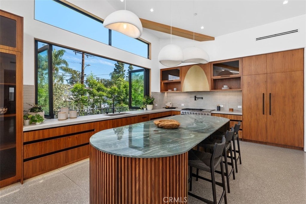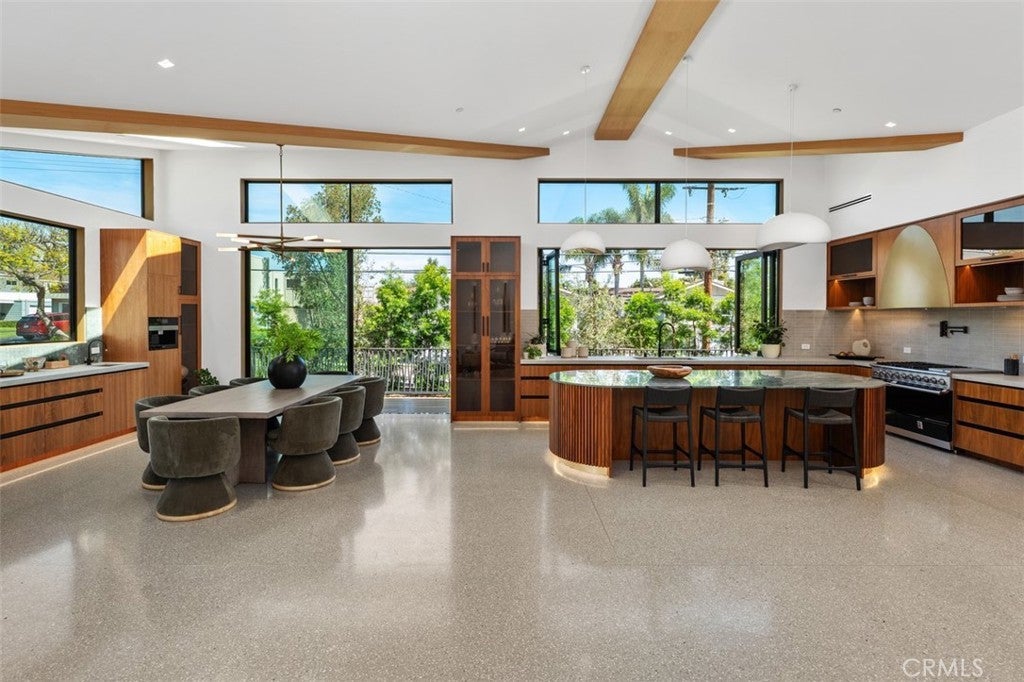 - Interior FeaturesBeamed Ceilings, Breakfast Bar, Separate/Formal Dining Room, Eat-in Kitchen, High Ceilings, Open Floorplan, Stone Counters, Bedroom on Main Level, Primary Suite, Walk-In Closet(s), Built-in Features, Multiple Primary Suites