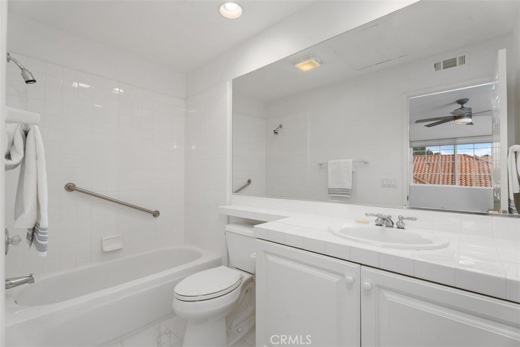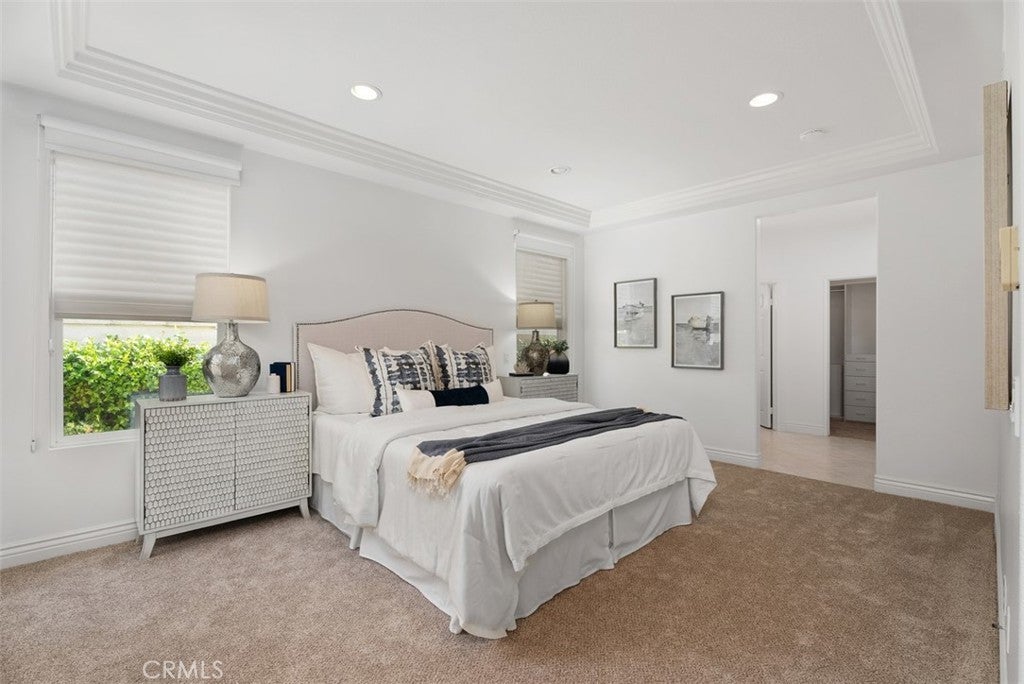 Welcome to this beautiful, well-maintained home in Palmia, Mission Viejo’s premier gated 55+ community. With soaring ceilings, abundant natural light, and a highly desirable floorplan, this residence offers both comfort and style. The home features two spacious en suite bedrooms, plus a downstairs den/office that could easily be converted into a third bedroom. The elegant living room with fireplace flows into the adjoining dining area and offers direct access to a lovely stone patio surrounded by lush landscaping, creating an ideal setting for relaxing or entertaining. The open-concept kitchen opens to the living and dining areas and is equipped with granite countertops, double ovens, a gas cooktop, a large pantry, an inside laundry closet, and direct access to the garage. The spacious primary suite is located on the main level and features new carpeting, direct access to the back patio, and a beautifully appointed bath with dual-sink vanity, Carrara marble countertops, large walk-in shower, private water closet, and customized walk-in closet. A guest bath includes a granite countertop and abundant storage cabinetry. Upstairs offers a large loft, a generously sized guest bedroom with walk-in closet, and a private en suite bath. Additional highlights include hardwood floors throughout most of the downstairs, fresh interior paint, new A/C unit, and full re-piping. Ideally located on a corner lot on a quiet cul-de-sac and within walking distance to the clubhouse. Palmia is second to none, offering resort-style amenities including an 18-hole putting green, pickleball, tennis, paddle tennis, pool and spa, bocce ball, fitness center, billiards, a beautiful clubhouse, social clubs, parties, and more. Residents also enjoy access to Lake Mission Viejo with boating, fishing, sandy beaches, and summer concerts