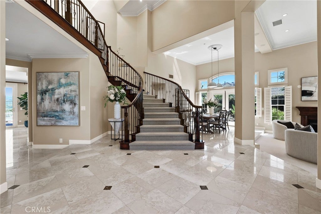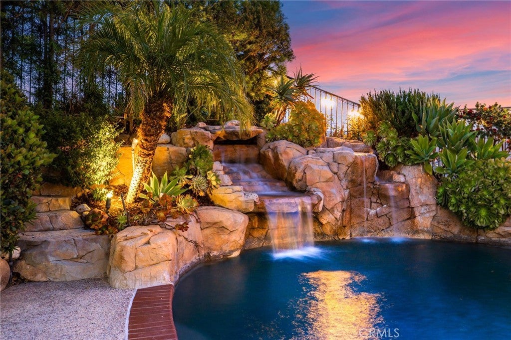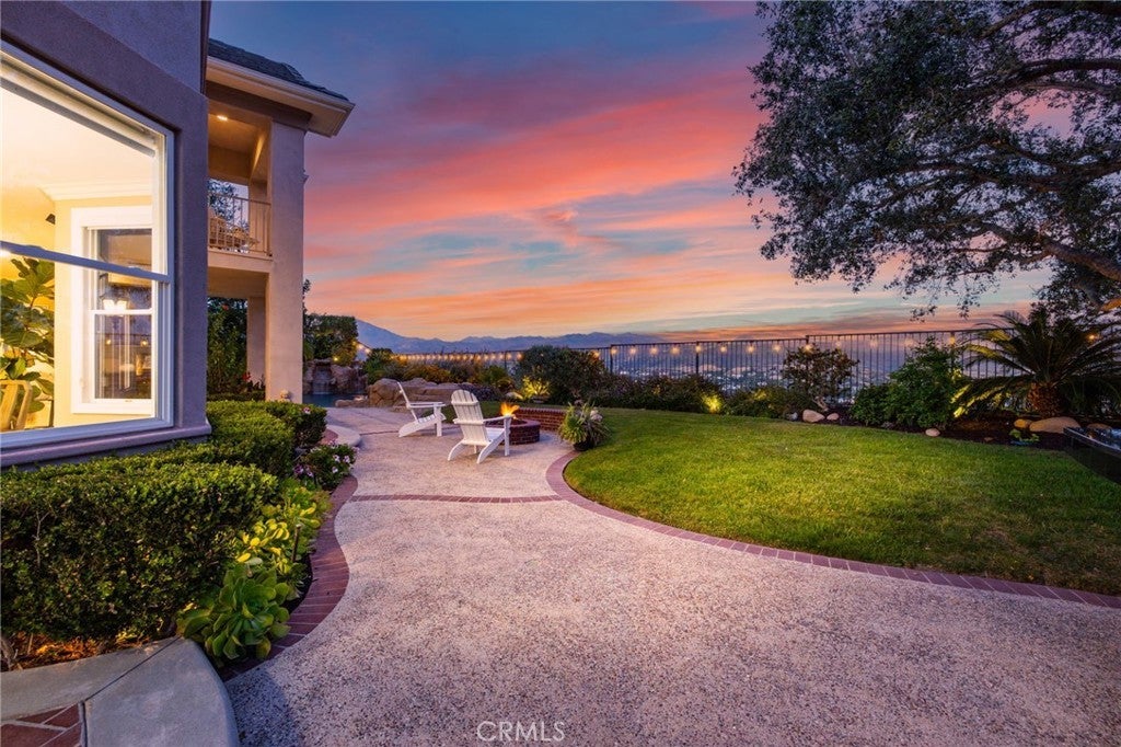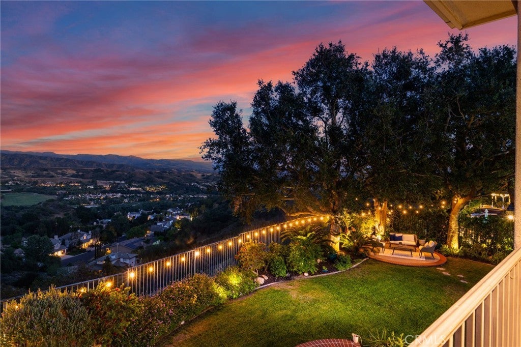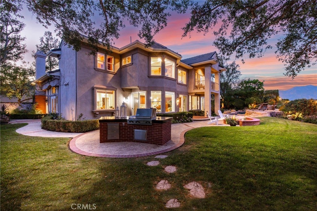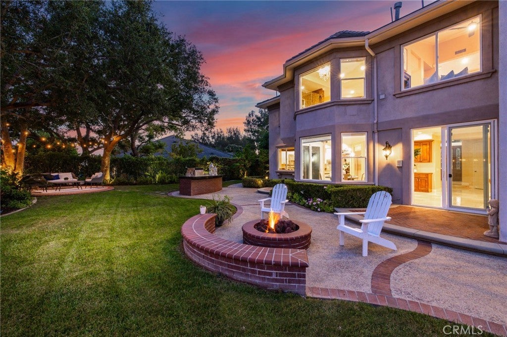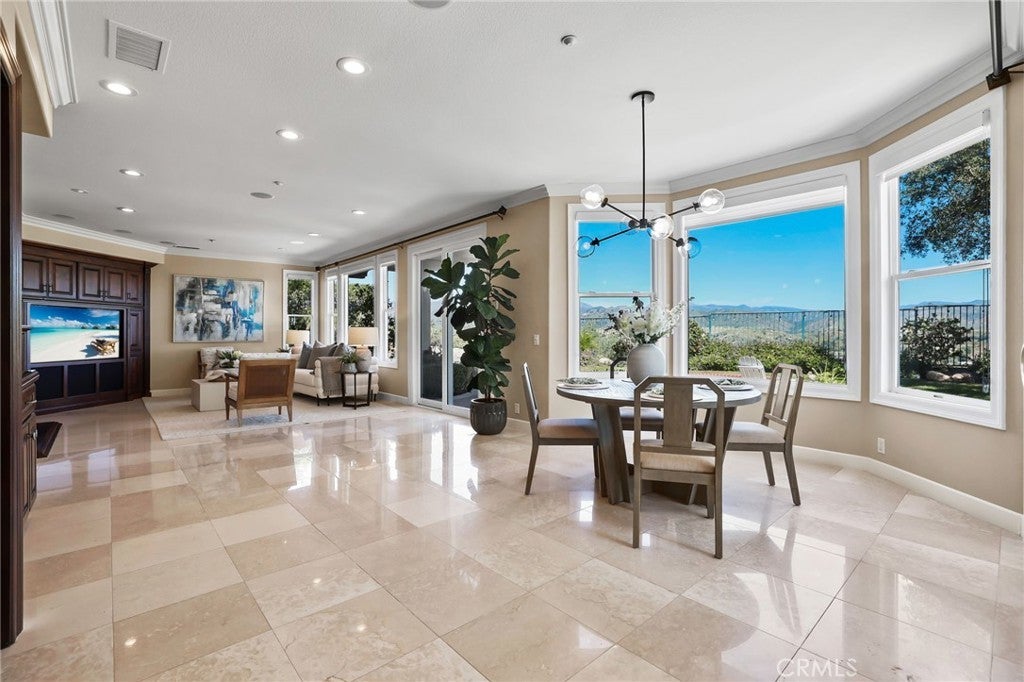 A panoramic masterpiece positioned near the highest elevations of the prestigious guard-gated community of Coto de Caza. Located toward the end of a quiet single-loaded street, this home offers exceptional privacy along with sweeping views of the golf course, rolling hills, and surrounding mountains. Recent improvements include a brand new roof, oakwood-color engineered flooring throughout both levels, a new pool pump, and fresh interior paint, creating a bright, cohesive, and updated interior. Interior features include rich wood detailing, plantation shutters, and stone flooring. The home is also equipped with a whole house water filtration system and soft water system. Spanning approximately 5,000 square feet on an expansive 0.45-acre lot, this home offers 6 bedrooms, 5 bathrooms, plus a dedicated office, thoughtfully designed for both functionality and comfort. Enter through double doors into a grand foyer with soaring ceilings and a skylight that fills the space with natural light. The living and dining areas are seamlessly connected, while expansive windows frame lush greenery and scenic views. The main level includes a private executive office with built-ins and a guest suite with ensuite bath, ideally positioned with views of the backyard garden, pool, and mountains, along with convenient access to the outdoor space. The chef’s gourmet kitchen is equipped with stainless steel appliances, a 6-burner Viking Professional gas range, microwave, warming oven, center island, beverage refrigerator, and abundant cabinetry. A walk-in pantry has been converted into a wine storage area with custom wooden racks and a wrought iron door. Upstairs, the expansive primary suite offers panoramic views of the Coto de Caza Valley, a double-sided fireplace, and a spa-inspired bathroom with dual vanities, vanity area, and a large walk-in closet. Four additional bedrooms provide flexibility for guest rooms, bonus room, gym, or office. Step outside into an entertainer’s dream backyard featuring a pool and spa, BBQ island with counter seating, fire pit, lawn area, and multiple patio spaces. Surrounded by blooming flowers and mature landscaping, the garden creates a peaceful setting with unobstructed mountain and valley views. Offering a rare blend of space, privacy, and breathtaking views, this home presents an exceptional opportunity to experience the finest of Coto de Caza living.