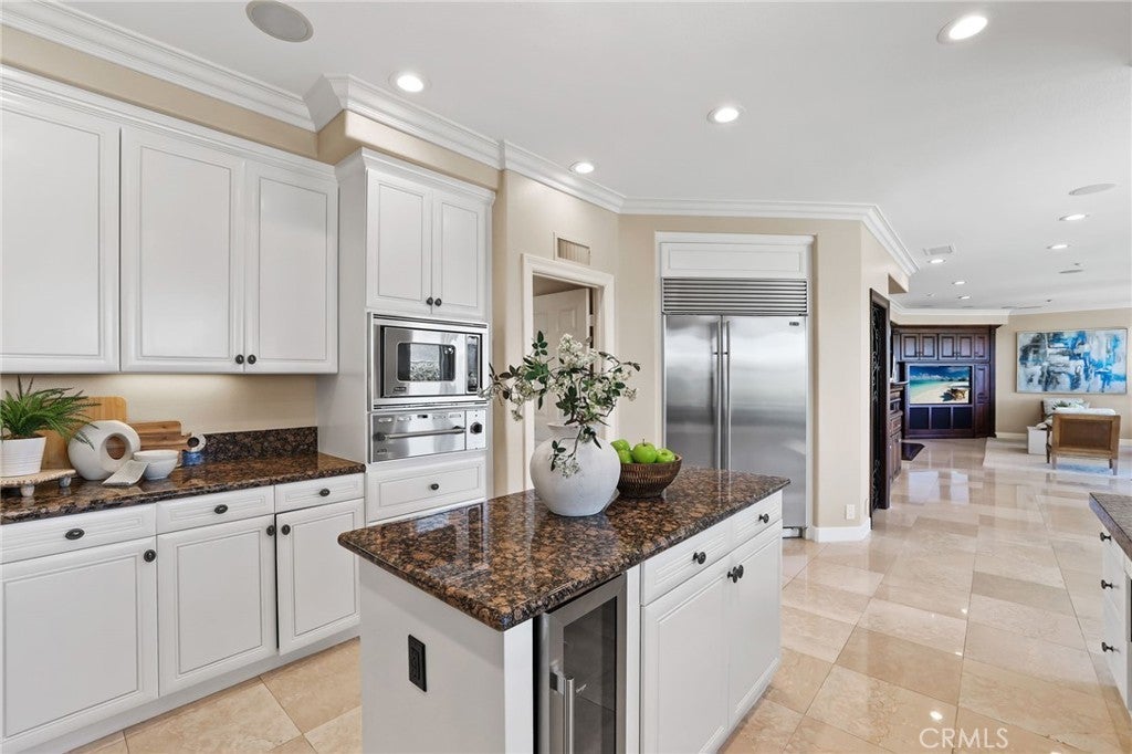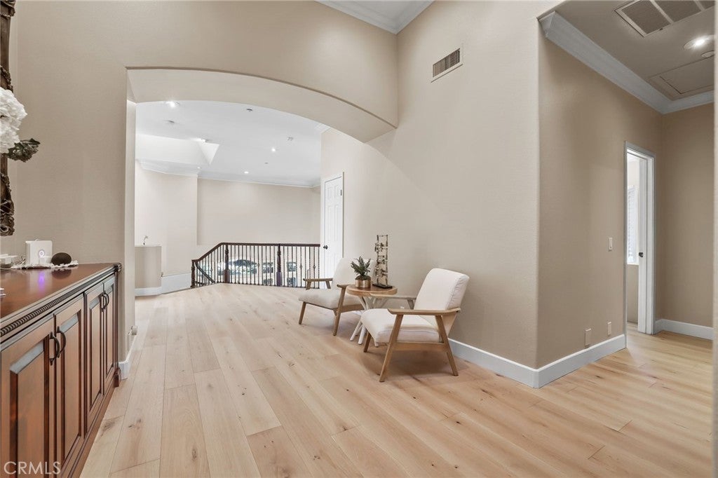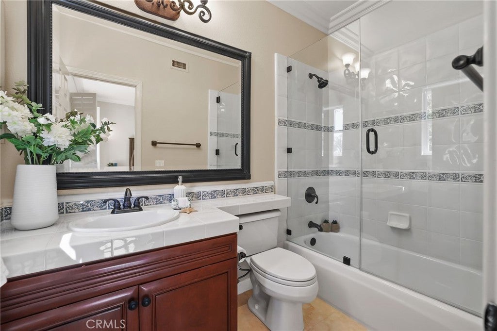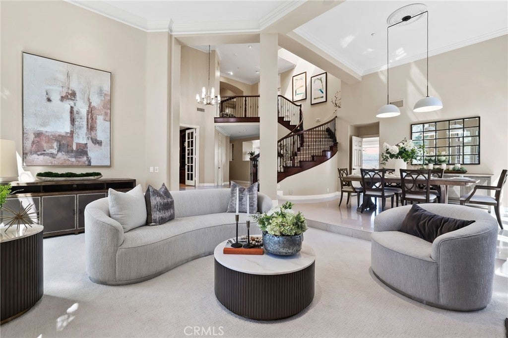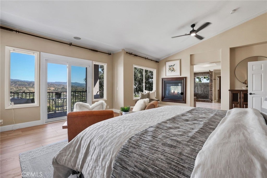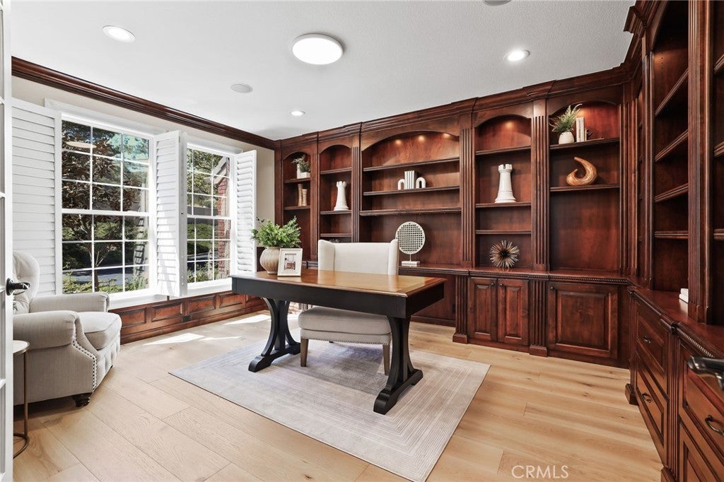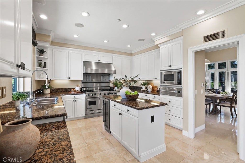 A panoramic masterpiece positioned near the highest elevations of the prestigious guard-gated community of Coto de Caza. Located toward the end of a quiet single-loaded street, this home offers exceptional privacy along with sweeping views of the golf course, rolling hills, and surrounding mountains. Recent improvements include a brand new roof, oakwood-color engineered flooring throughout both levels, a new pool pump, and fresh interior paint, creating a bright, cohesive, and updated interior. Interior features include rich wood detailing, plantation shutters, and stone flooring. The home is also equipped with a whole house water filtration system and soft water system. Spanning approximately 5,000 square feet on an expansive 0.45-acre lot, this home offers 6 bedrooms, 5 bathrooms, plus a dedicated office, thoughtfully designed for both functionality and comfort. Enter through double doors into a grand foyer with soaring ceilings and a skylight that fills the space with natural light. The living and dining areas are seamlessly connected, while expansive windows frame lush greenery and scenic views. The main level includes a private executive office with built-ins and a guest suite with ensuite bath, ideally positioned with views of the backyard garden, pool, and mountains, along with convenient access to the outdoor space. The chef’s gourmet kitchen is equipped with stainless steel appliances, a 6-burner Viking Professional gas range, microwave, warming oven, center island, beverage refrigerator, and abundant cabinetry. A walk-in pantry has been converted into a wine storage area with custom wooden racks and a wrought iron door. Upstairs, the expansive primary suite offers panoramic views of the Coto de Caza Valley, a double-sided fireplace, and a spa-inspired bathroom with dual vanities, vanity area, and a large walk-in closet. Four additional bedrooms provide flexibility for guest rooms, bonus room, gym, or office. Step outside into an entertainer’s dream backyard featuring a pool and spa, BBQ island with counter seating, fire pit, lawn area, and multiple patio spaces. Surrounded by blooming flowers and mature landscaping, the garden creates a peaceful setting with unobstructed mountain and valley views. Offering a rare blend of space, privacy, and breathtaking views, this home presents an exceptional opportunity to experience the finest of Coto de Caza living.