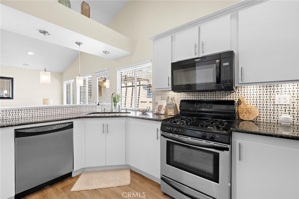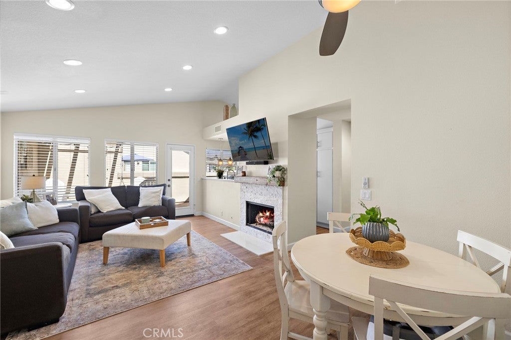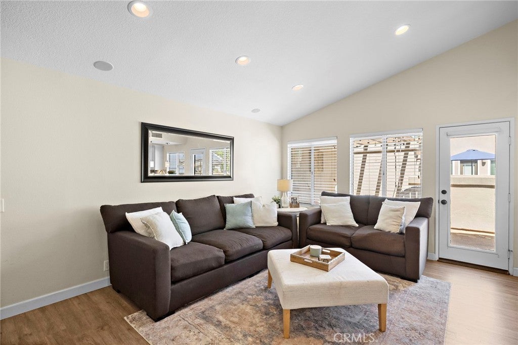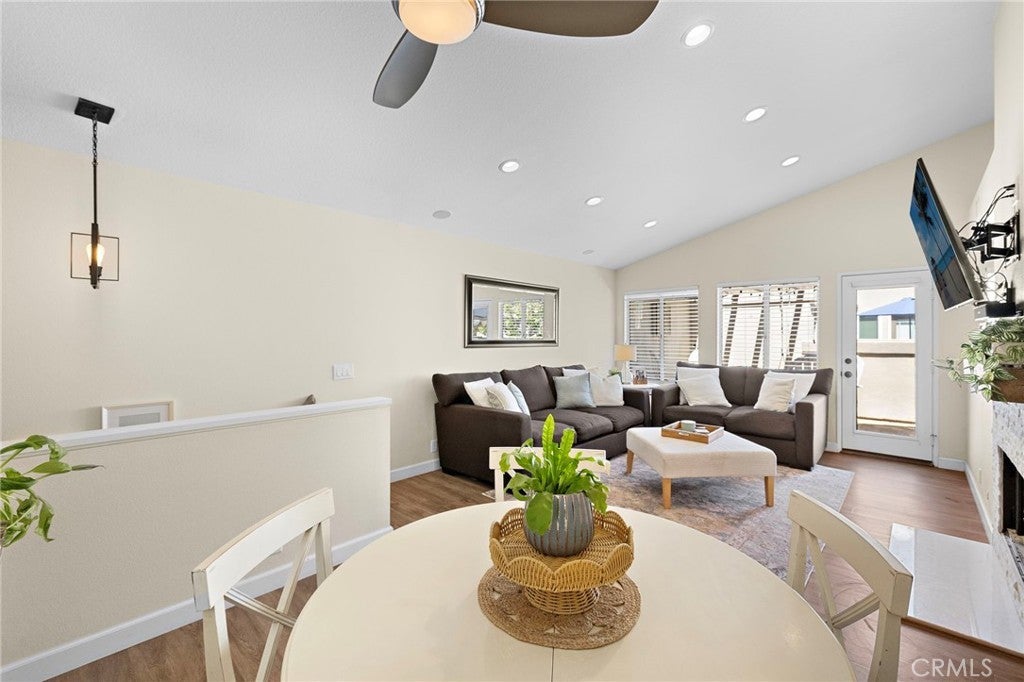 Beautiful 2-bedroom, 2-bath condo in the desirable Ashton community of Mission Viejo! This end-unit home features vaulted ceilings, an open layout, and the rare benefit of no one above or below. The light-filled living room opens to a large private patio with a beautiful view—perfect for relaxing or entertaining. The kitchen offers granite countertops, tile backsplash, and stainless steel appliances, seamlessly connecting to the dining area. The spacious primary bedroom includes ample closet space, while the second bedroom is also generously sized. A convenient upstairs laundry area adds everyday ease. Recent upgrades include newer A/C, furnace, and ducting, luxury vinyl flooring throughout, a renovated fireplace and primary bath, recessed lighting, and a new garage door motor. The attached 1-car garage features direct access, an epoxied floor, and added storage. Enjoy a community pool just steps away, plus walking distance to parks, trails, and an elementary school. As a Mission Viejo resident, you’ll also have Lake Mission Viejo membership with boating, concerts, and beach access. Ideally located near top-rated schools, shopping and dining, and major freeways and toll roads—with Irvine Spectrum, Dana Point Harbor, and Laguna Beach just a short drive away. This home offers exceptional value in a prime location!