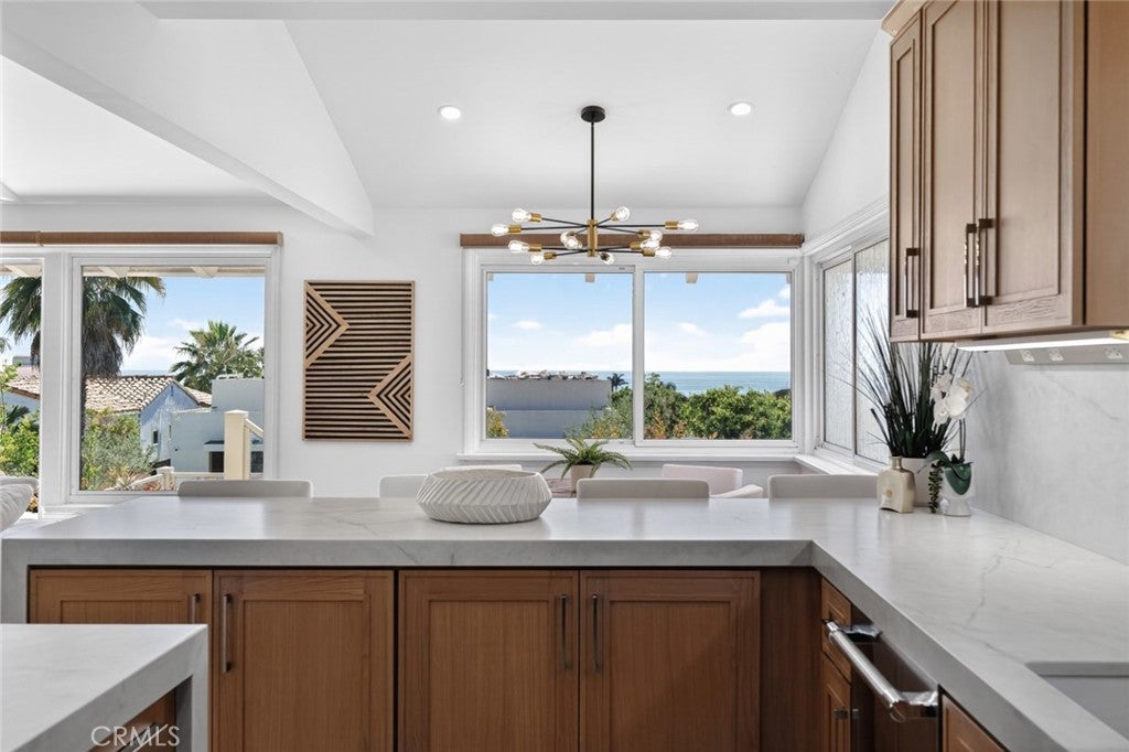 Do not miss the second opportunity in over 50 years to make this residence yours. Perched in one of the most coveted neighborhoods in Corona Del Mar sits 428 Cabrillo Terrace with unobstructed panoramic ocean and Catalina island views. Enjoy a quick walk to the stunning private beach or walk to the charming Corona Del Mar village in minutes. Evening ocean and Catalina sunsets are shared with nature sounds, at times you hear the waves crashing with barking seals, frogs, birds etc. This single story home is turn key and recently renovated throughout. Open concept with family room fireplace, wood floors, all new white oak cabinetry, Solitaj countertops throughout and new Thermador stainless steel appliances. Ample outdoor space with tons of luscious greenery giving a true sense of serenity upon arrival.