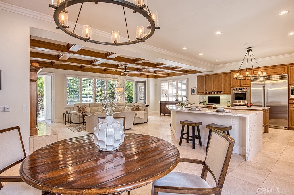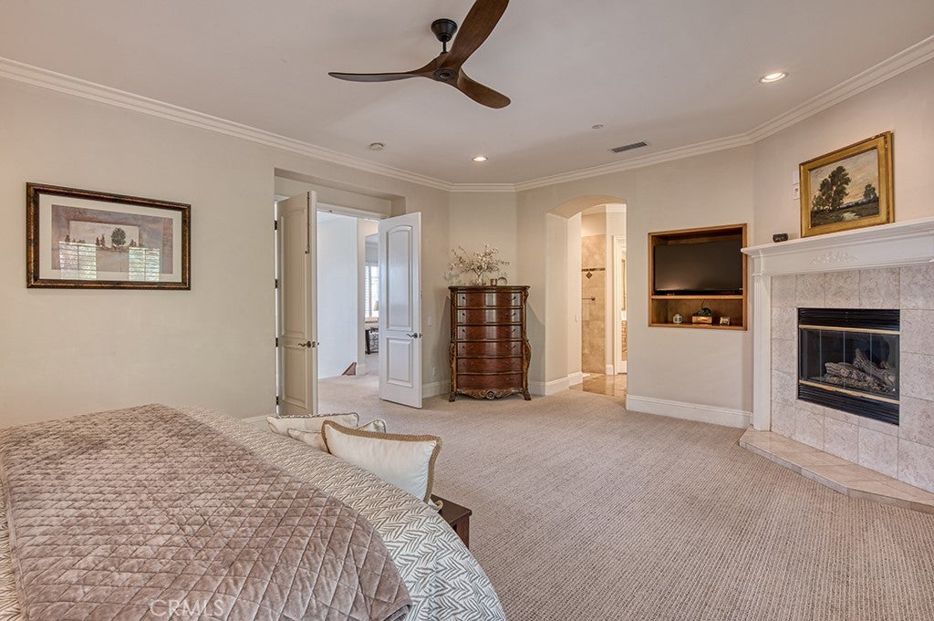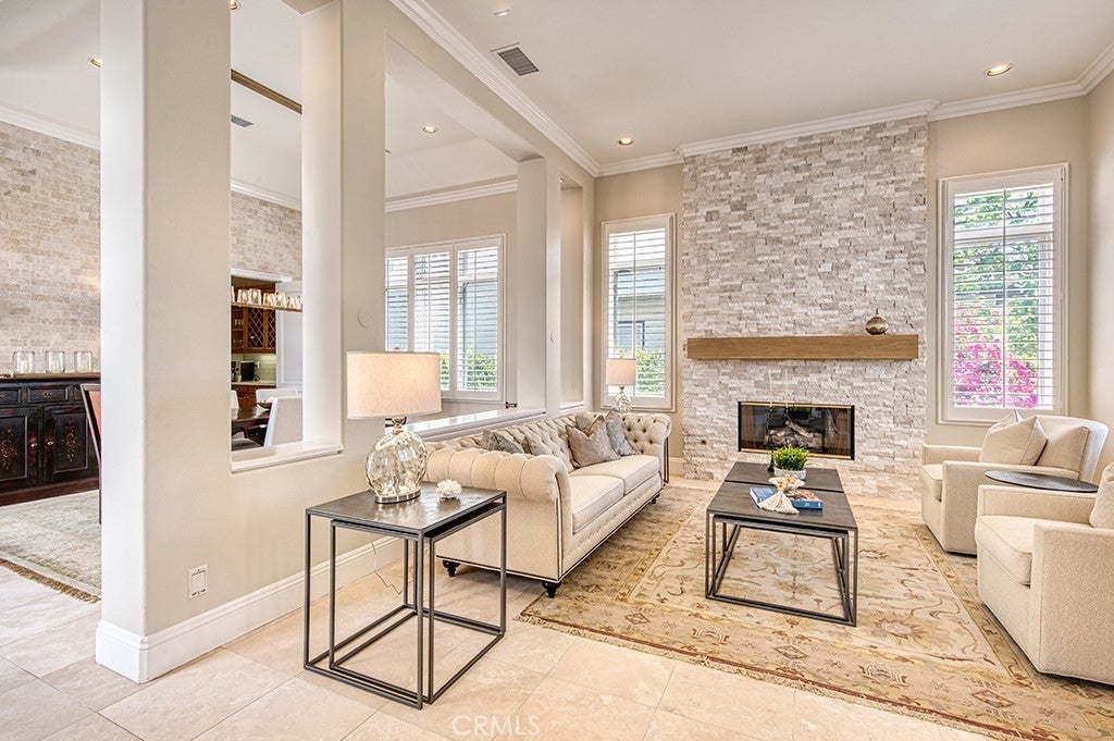 Beautifully upgraded and thoughtfully designed, this semi-custom Private Collection Coto de Caza residence is ideally situated on an expansive, private cul-de-sac 13,000 sq. ft. lot. This property features a spacious open-concept floor plan filled with natural light, complemented by soaring 10-foot ceilings, crown molding, plantation shutters, and 8-foot solid core doors throughout. Upon entering the home, you'll be amazed by the soaring ceilings that showcase a stunning entryway that leads you to the formal living and dining room. At the heart of the home, double glass French doors open to an inviting central courtyard with a fireplace, seamlessly connecting to the main living spaces, including the main level office/bedroom. The beautiful gourmet kitchen showcases quartz countertops, tile backsplash, high-end stainless steel appliances including double ovens and dual dishwashers, a walk-in pantry, and a butler’s pantry—perfectly suited for everyday living and entertaining alike. The adjacent family room sits just off the kitchen and serves as a welcoming gathering space, highlighted by rich coffered ceilings and a beautifully appointed fireplace that adds warmth and architectural character—perfect for both everyday living and entertaining. An additional main level bedroom and bathroom offers a great space for guests or in-laws to retreat to. Upstairs, the expansive primary suite with a spa-like bath features a fireplace and private balcony, and two additional secondary bedrooms feature their own en-suite and mirrored closets. A generous bonus room provides the option for a sixth bedroom, media room, or home theater. Furthermore, a loft provides a great space for an office nook or place for children to do school work. The backyard is an entertainer’s haven, complete with a PebbleTec pool and spa, BBQ center, and abundant seating areas designed for gatherings and relaxation. Additional highlights include owned solar, a fully repiped plumbing system, a four-car garage, and a gated driveway with ample space for additional parking or recreation. Experience the best of Coto de Caza, where premier living meets award-winning schools, a world-class Golf & Racquet Club, scenic sports parks, and easy access to hiking, biking, and equestrian trails. No mello roos and low tax-rate.