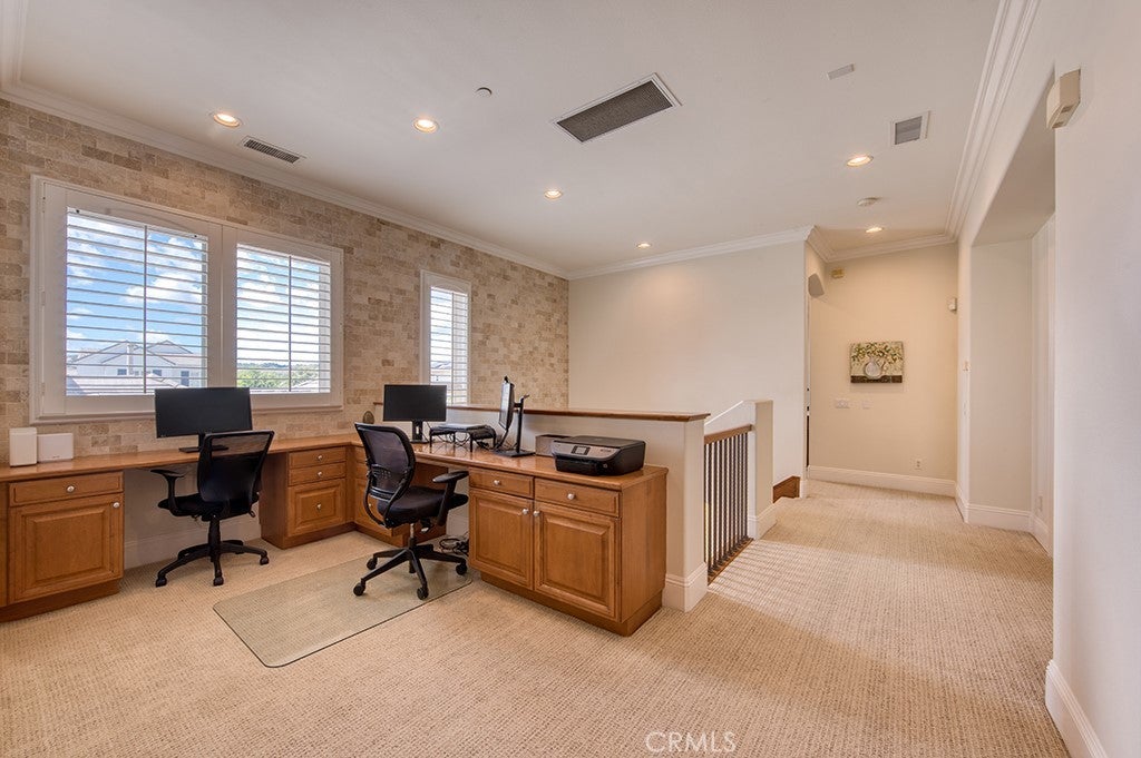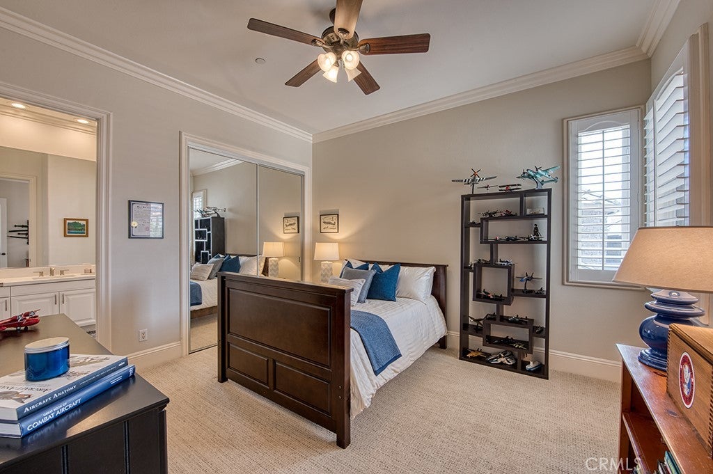 - Interior FeaturesBreakfast Bar, Ceiling Fan(s), Crown Molding, Separate/Formal Dining Room, High Ceilings, Open Floorplan, Pantry, Quartz Counters, Recessed Lighting, Bedroom on Main Level, Loft, Primary Suite, Walk-In Closet(s), Breakfast Area, Coffered Ceiling(s), Tray Ceiling(s)