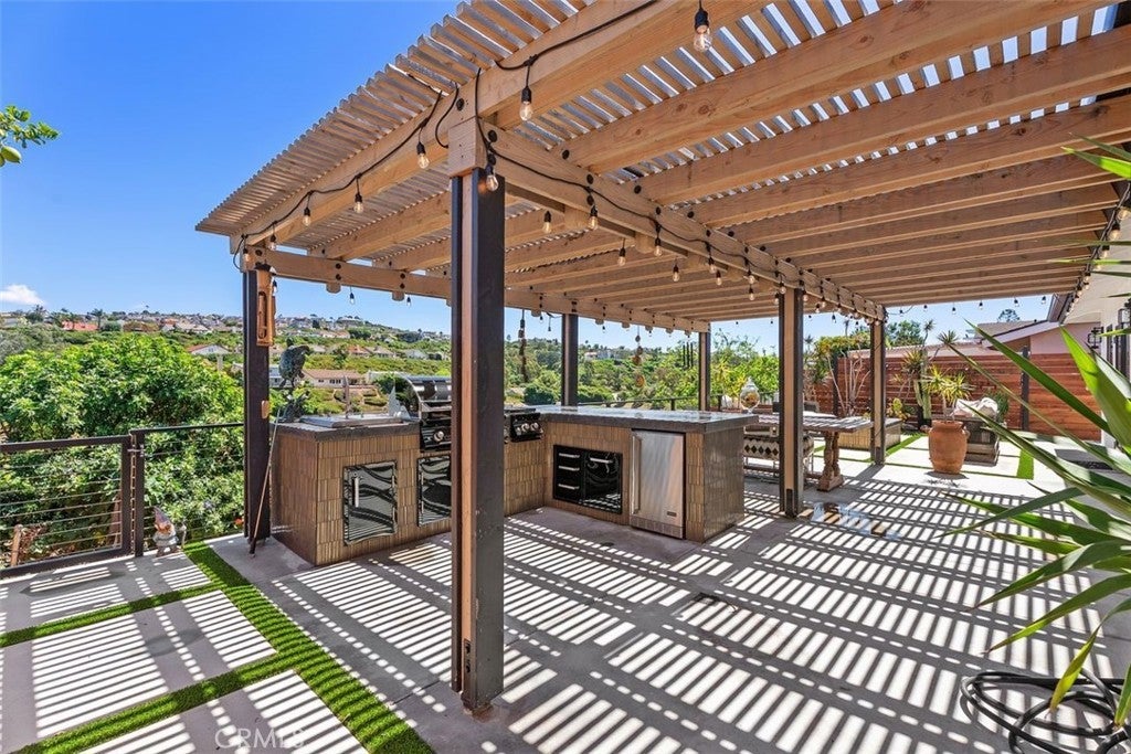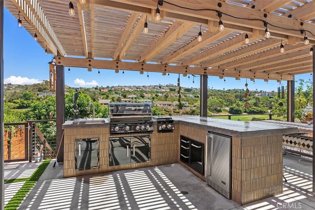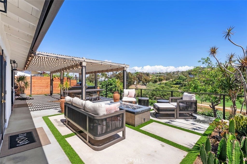 Welcome to your private coastal retreat —where thoughtful design meets effortless indoor-outdoor living, all set against the serene backdrop of the Shorecliffs Golf Course. Completely reimagined with a modern, airy aesthetic, this beautifully remodeled home invites you in through a gated front entry, opening to a charming private courtyard. Here, a built-in firepit and seating create the perfect setting for casual gatherings, with additional space ready to accommodate whatever outdoor vision you bring to life. Inside, every detail has been carefully considered. The home features a smart reconfiguration of hallways, rooms & closets—maximizing space, flow, and functionality in a way that feels both elevated and effortless. Warm luxury vinyl flooring, abundant natural light and a seamless open-concept layout set the tone throughout. At the heart of the home, the stunning chef’s kitchen showcases a dramatic waterfall-edge island, custom cabinetry, designer lighting and picturesque views that make even everyday moments feel extraordinary. The inviting family room sits just off the kitchen anchored by a cozy fireplace and framed by an abundance of windows. The dining area flows effortlessly outdoors through expansive sliding doors, revealing a backyard designed to impress. Enjoy a beautifully curated entertaining space complete with a pergola-covered lounge, fire pit and multiple seating areas—all perfectly positioned to capture sweeping golf course and hillside views. A built-in BBQ and outdoor fridge make hosting effortless, while just beyond, a separate gated garden area offers a peaceful escape with a Meyer lemon tree and lush plantings—your own private slice of California living. Two beautifully appointed bedrooms offer both comfort and functionality, each featuring walk-in closets with custom translucent doors —along with their own private, fully remodeled en suite bathrooms for ultimate privacy. The residence also includes a thoughtfully added guest powder room. The attached two-car garage hosts the washer/dryer and loads of additional storage. From the striking curb appeal to the thoughtfully designed interior and inviting outdoor spaces, every inch of this home has been crafted to inspire. This is more than a lease—it’s a lifestyle. A place where mornings begin with sunlight and citrus and evenings end with golden views over the fairway. Private showings by appointment available now.