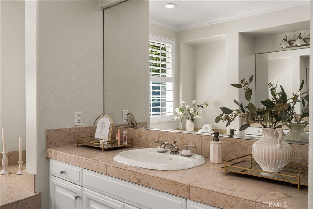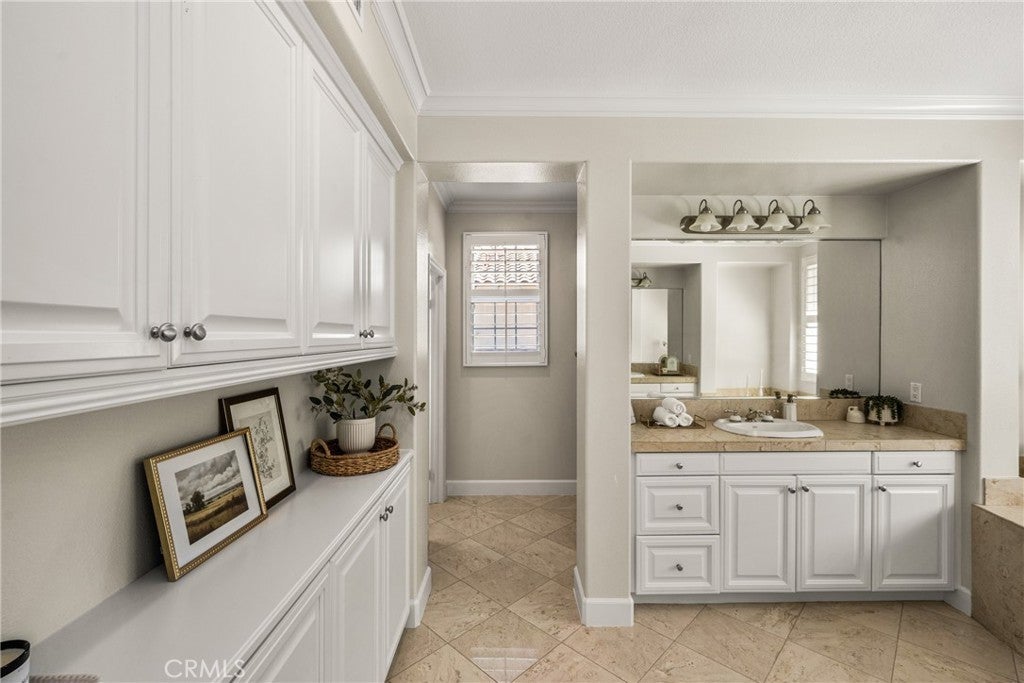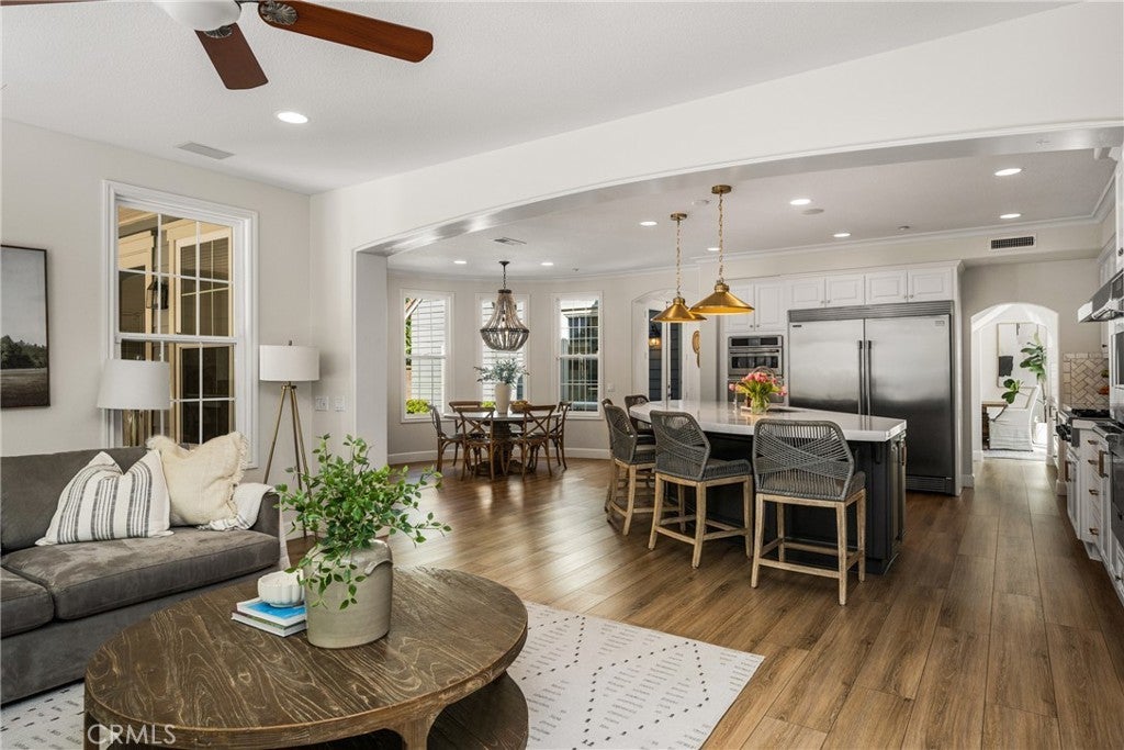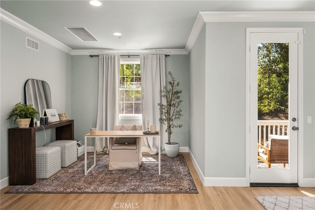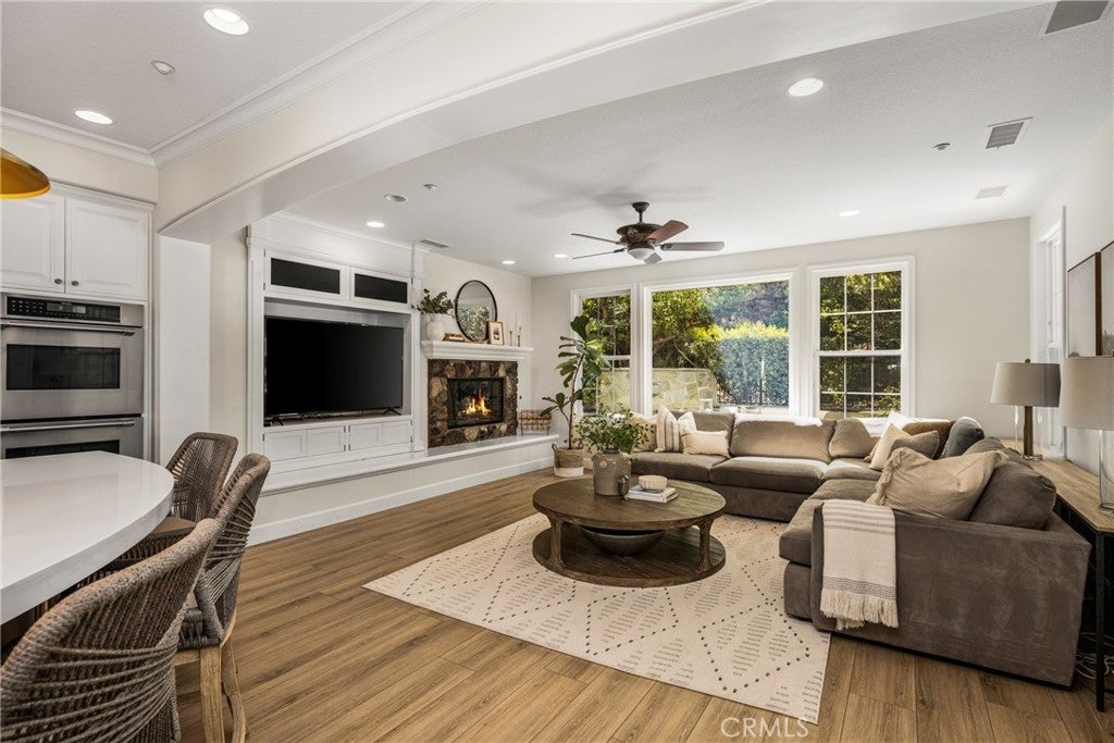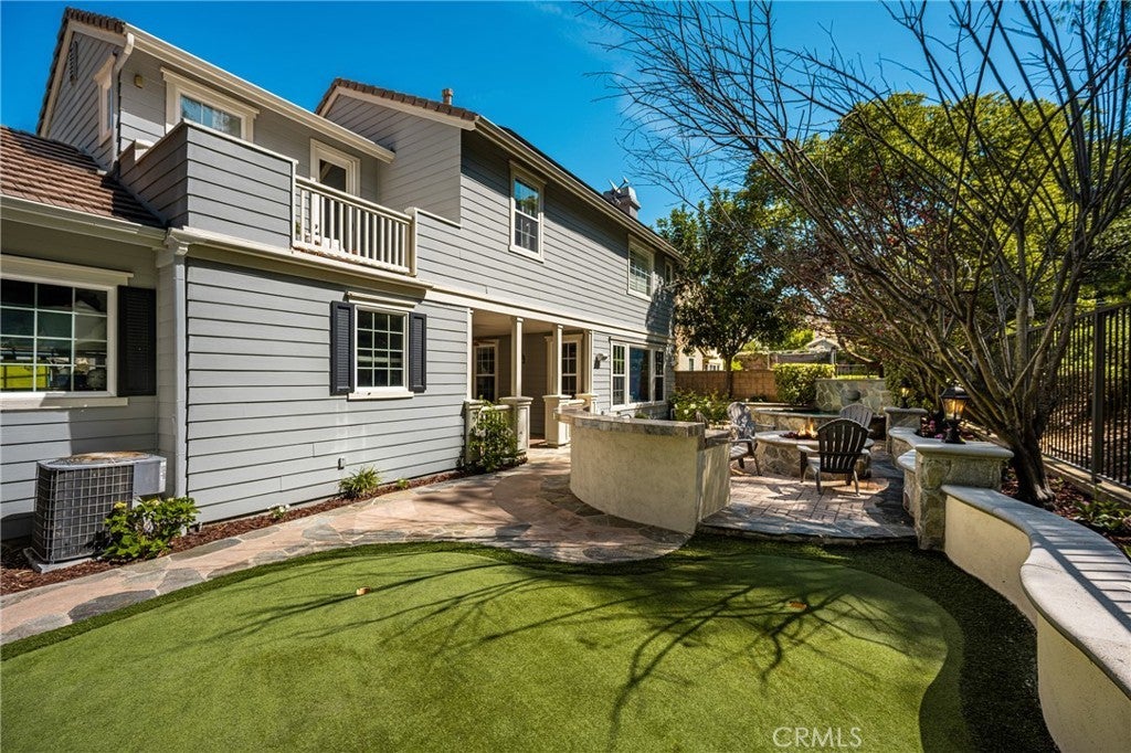 Welcome to 4 Lewiston Ct, a rare offering at the end of one of Clifton Heights’ most coveted cul-de-sacs. With only one neighboring home and adjacent to a peaceful pocket park, this residence is also just a short walk to top-rated schools, parks, restaurants, and local amenities—offering the perfect blend of privacy, convenience, and lifestyle. This beautifully upgraded 5-bedroom, 6-bath home features en-suite bathrooms in every bedroom, including a convenient main-floor suite ideal for guests or multigenerational living. A detached studio with a private entrance offers flexible space for a home office, gym, guest quarters, or creative retreat, enclosed in a gated motor court. The expansive primary suite is a true sanctuary, complete with a private balcony, dual vanities, separate his-and-hers walk-in closets, a soaking tub, and a spacious walk-in double shower for a spa-like experience. Designed for both everyday living and entertaining, the chef’s kitchen showcases a Thermador double oven, 4-burner cooktop with griddle, Bosch dishwasher, and Café microwave and oven, along with a built-in 64-inch Frigidaire professional refrigerator and freezer offering generous side-by-side capacity. Quartz countertops, a walk-in pantry, and a butler’s pantry with wine fridge complete the space. Indoor-outdoor living is seamless with an enclosed sunroom that opens to a private backyard featuring a relaxing oversized spa, custom putting green, built-in fire pit, and multiple entertaining areas. Formal living and dining rooms add elegance, while thoughtful upgrades throughout include repiped PEX plumbing, LVP flooring, and a solar system for enhanced energy efficiency and reduced energy costs. This exceptional home combines luxury, versatility, walkability, and an unbeatable location in one of Ladera Ranch’s most desirable communities.